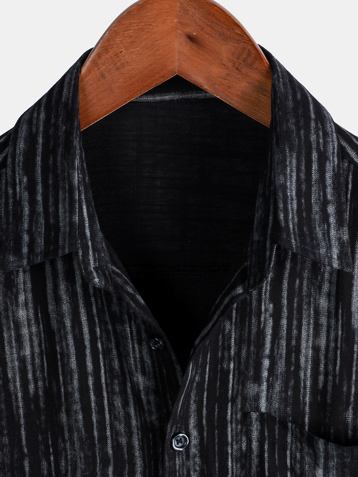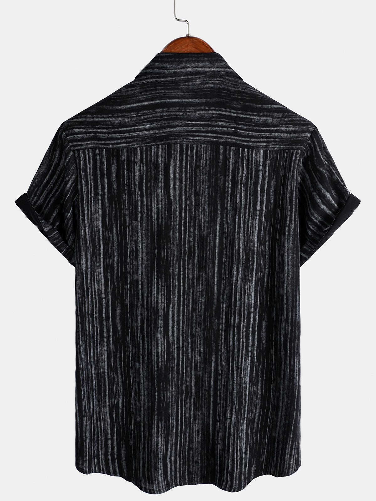 Men's Breathable Short Sleeve Pocket Black Striped Shirt