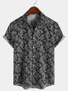 Men's Tropical Black Short Sleeve Summer Button Up Shirt