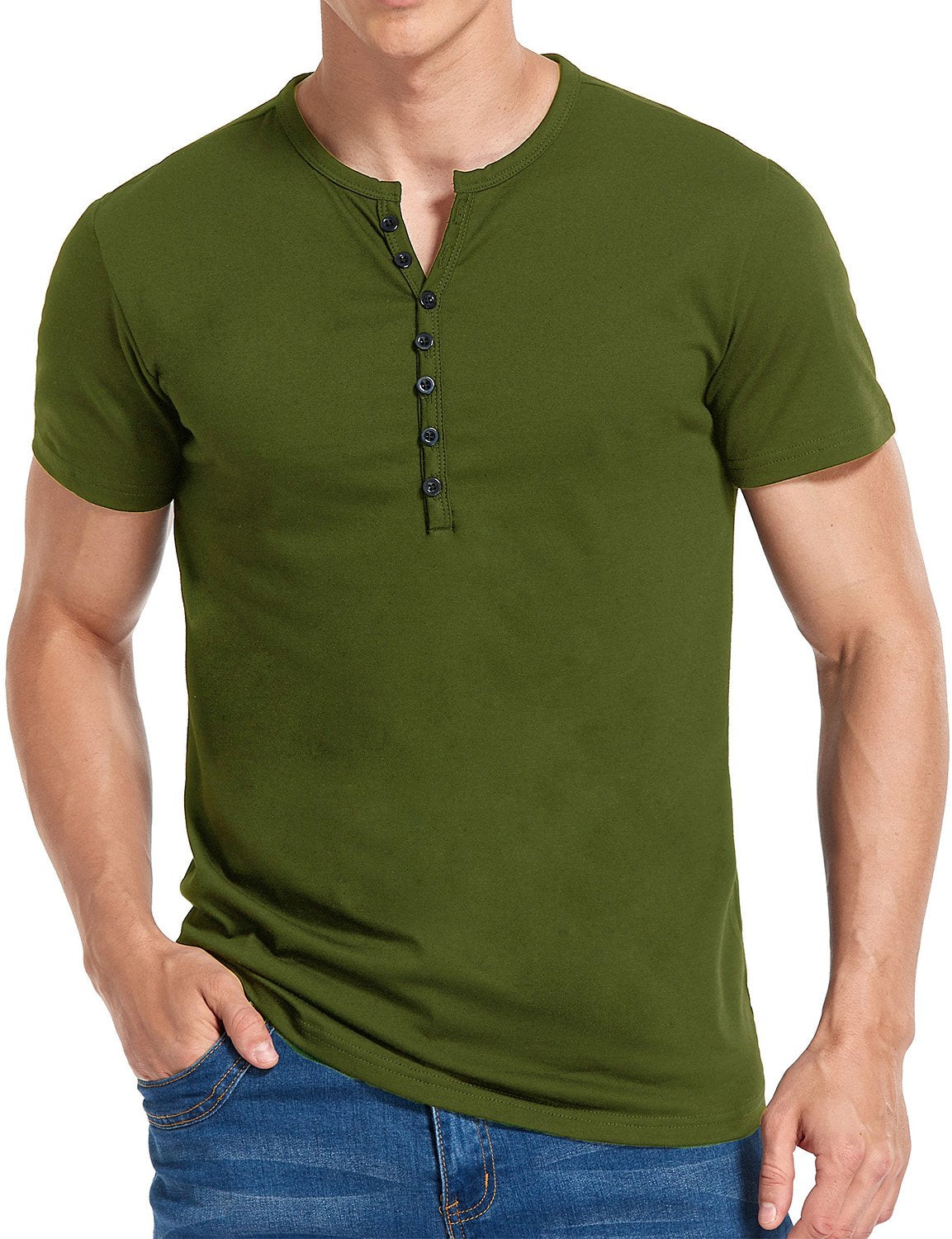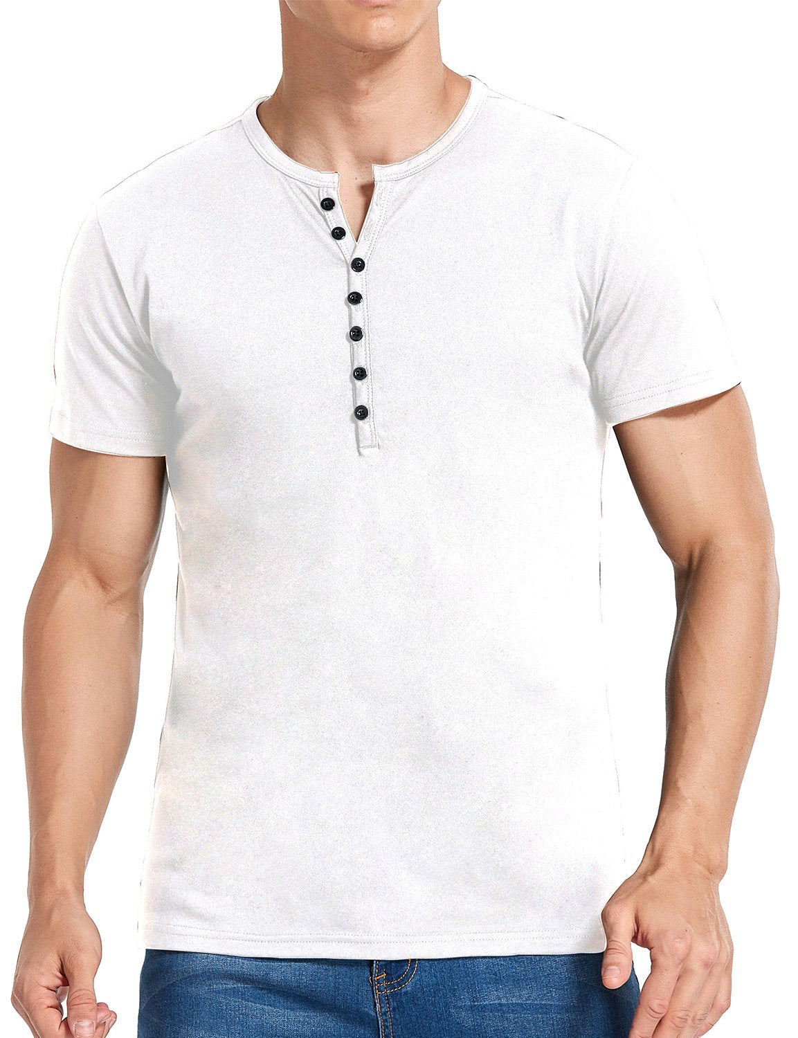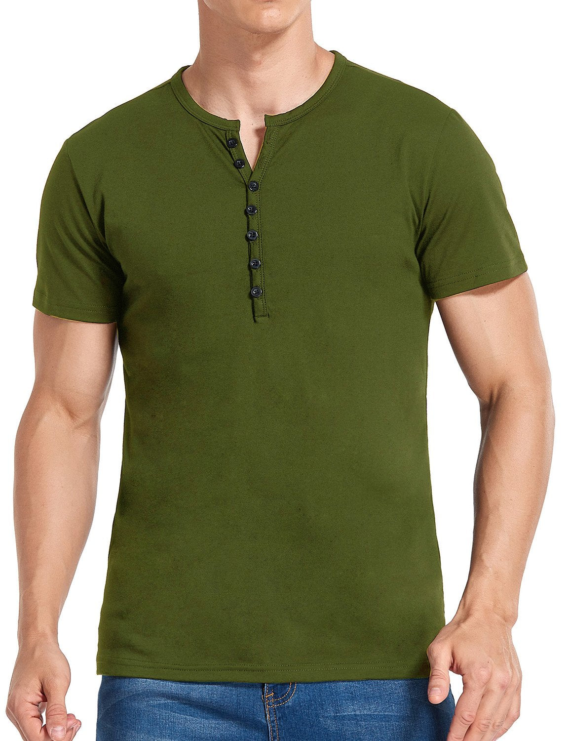Men's Casual Solid Color Short Sleeve Henley T-shirt