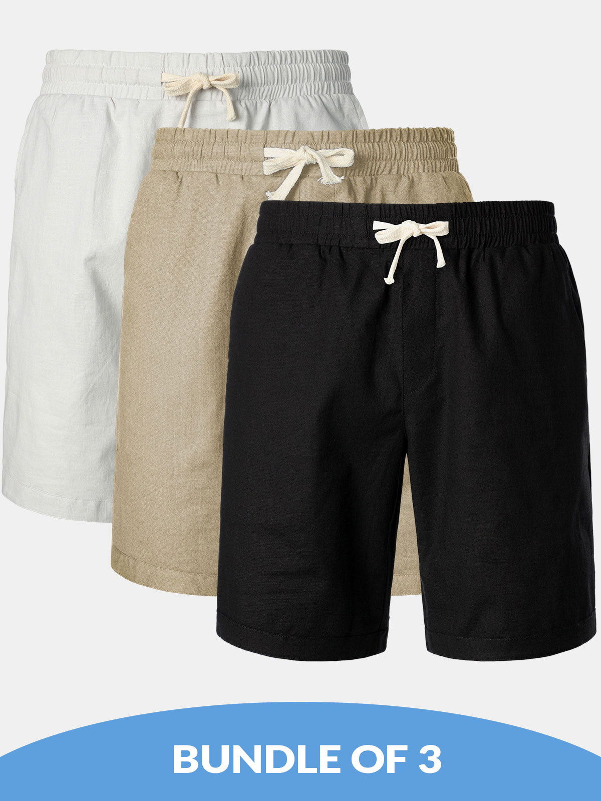 Bundle Of 3 | Men's Solid Color Breathable Linen Cotton Casual Shorts