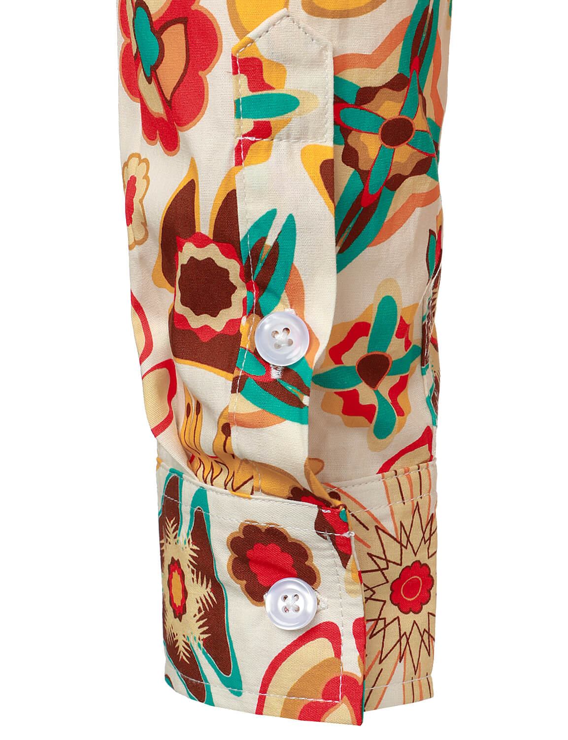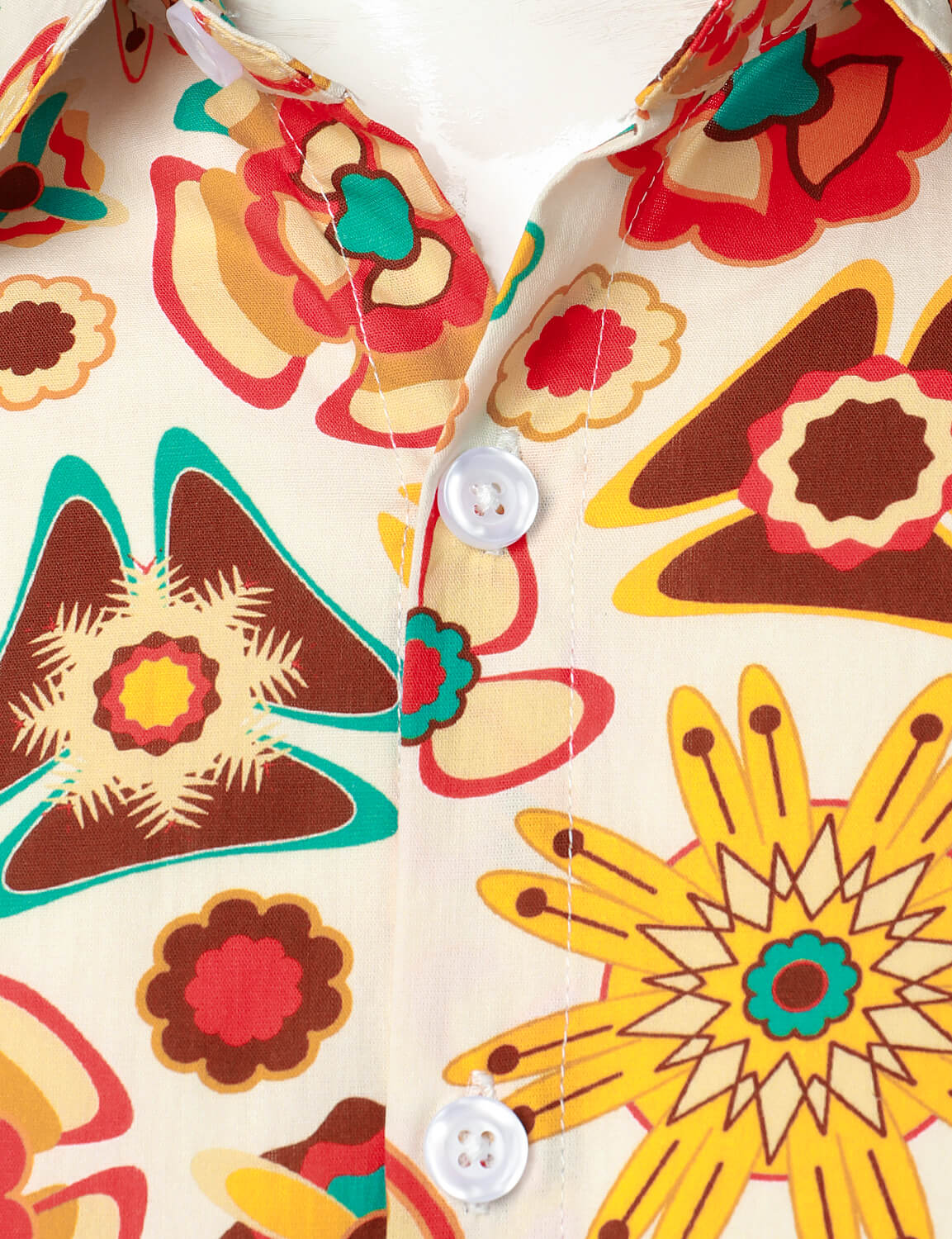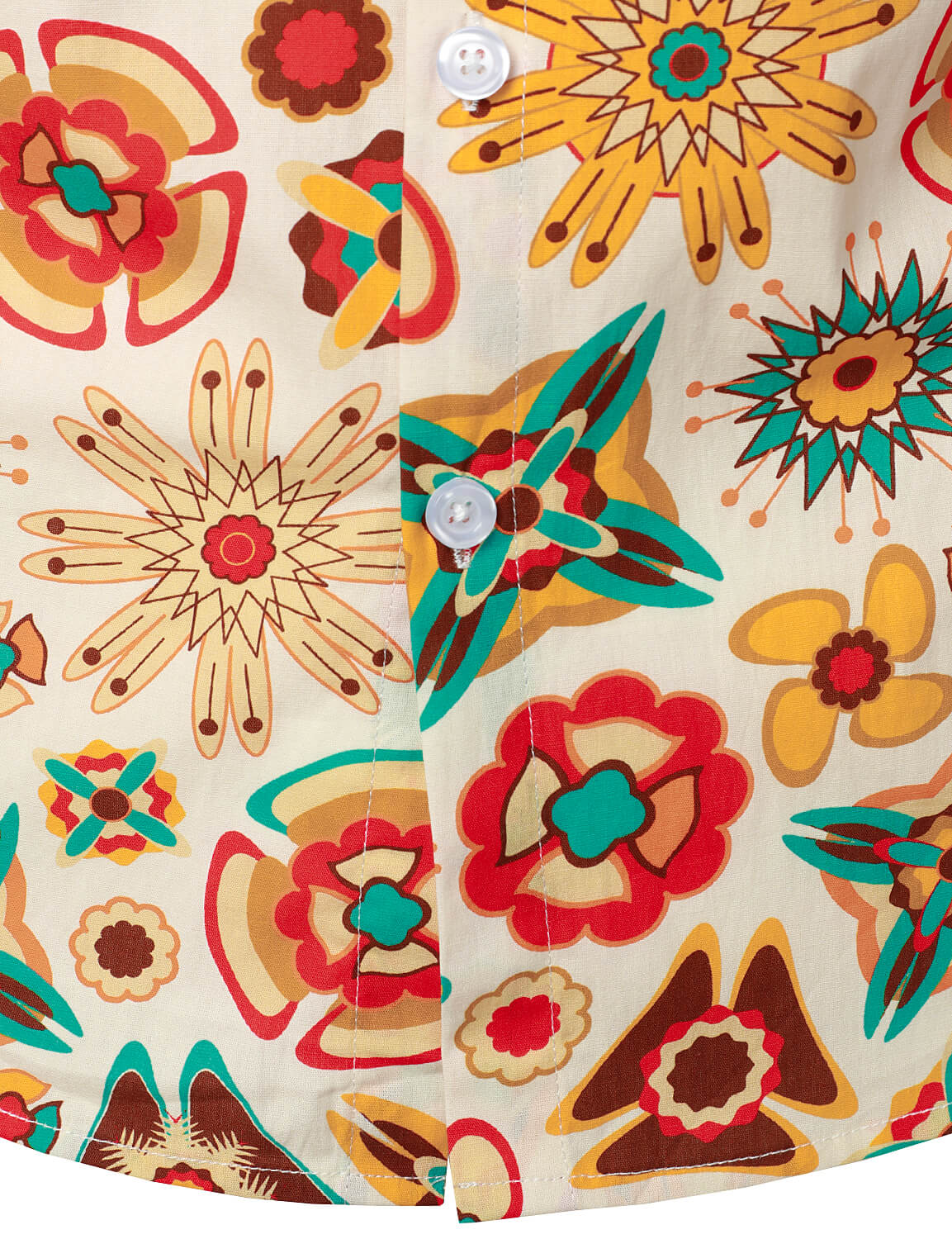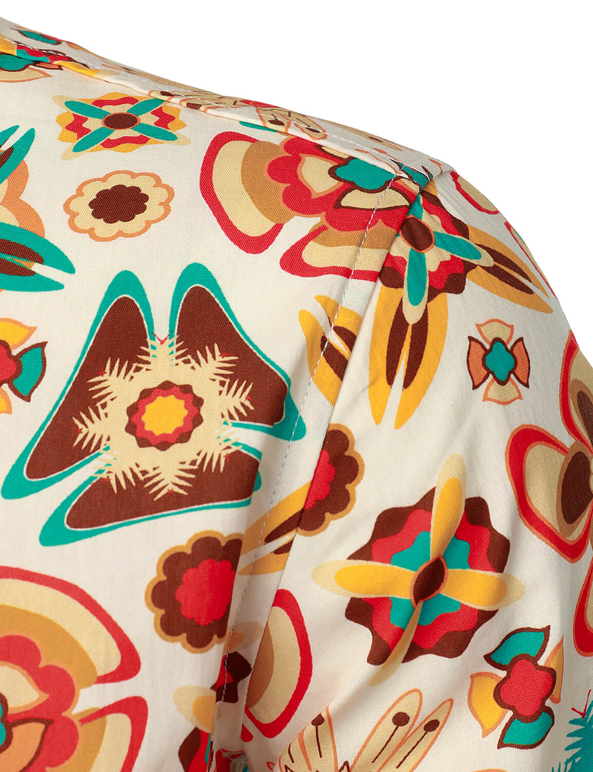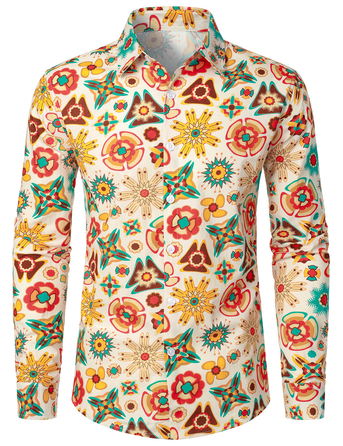 Men's Bright Floral Print Cotton Long Sleeve Button Up Dress Shirt