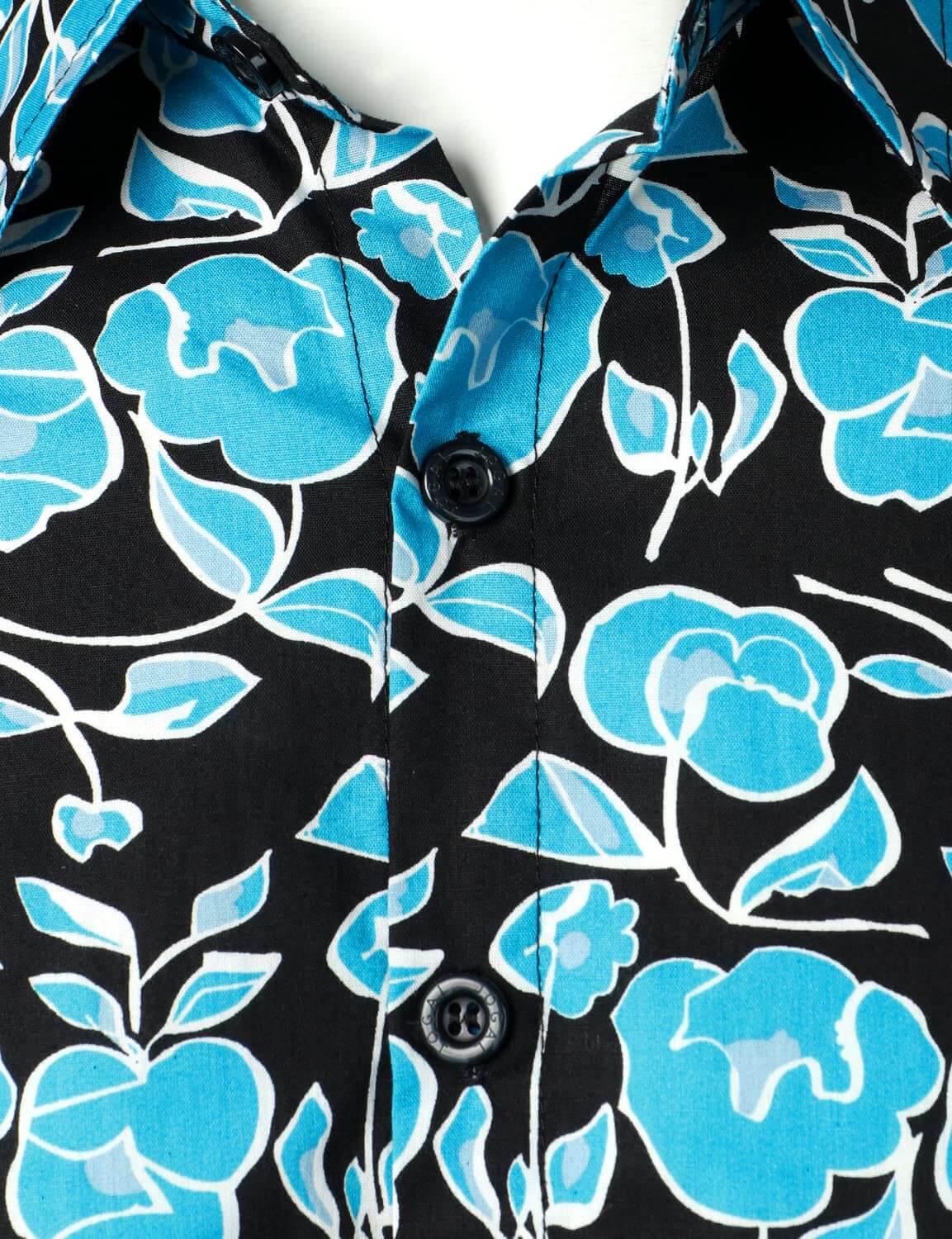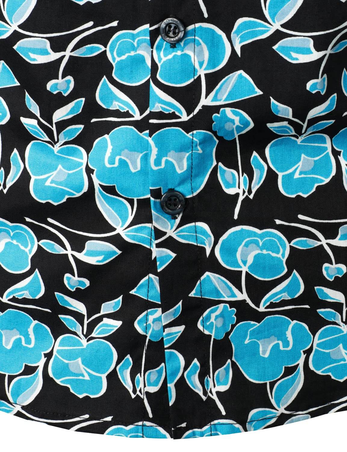 Men's Floral Print Breathable Cotton Cool Short Sleeve Blue Flower Button Up Shirt