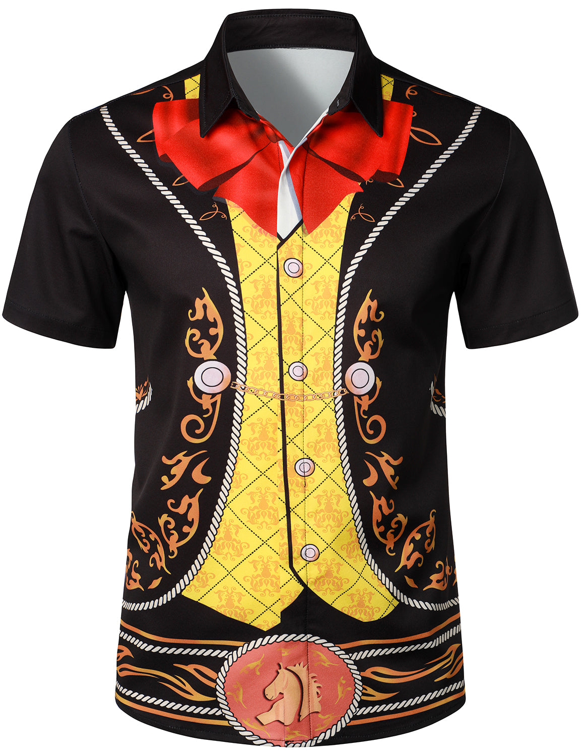 Men's Noble Retro Suit Costume Cool Black Halloween Costume Party Short Sleeve Shirt