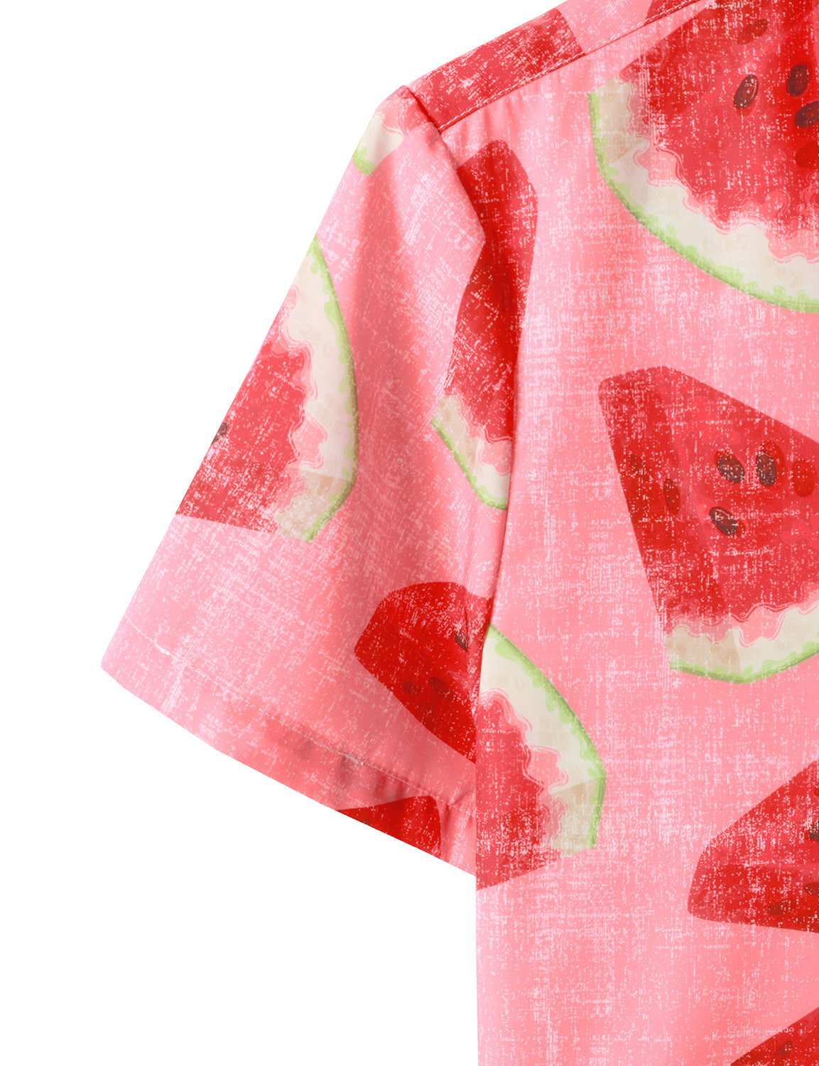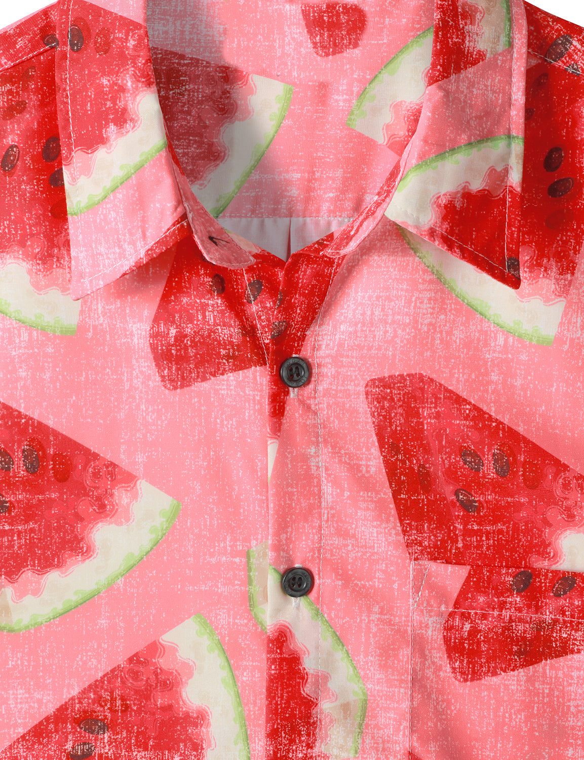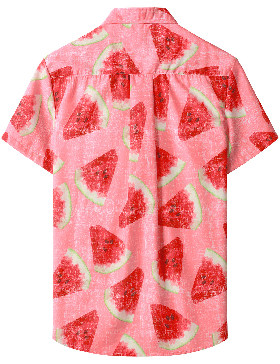 Men's Watermenlon Tropical Fruit Beach Pink Pocket Button Up Aloha Short Sleeve Hawaiian Shirt
