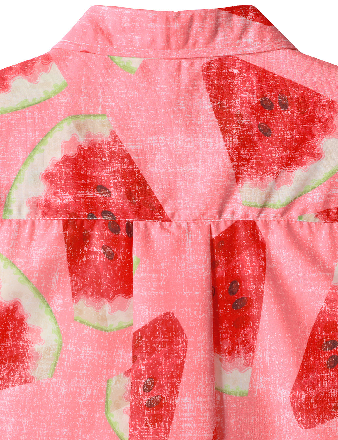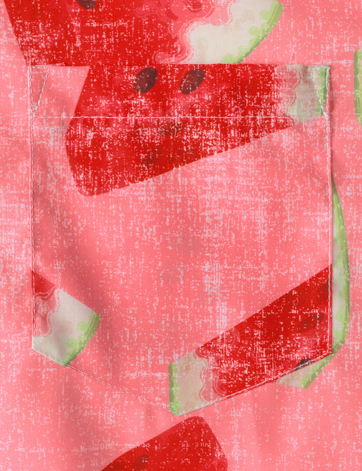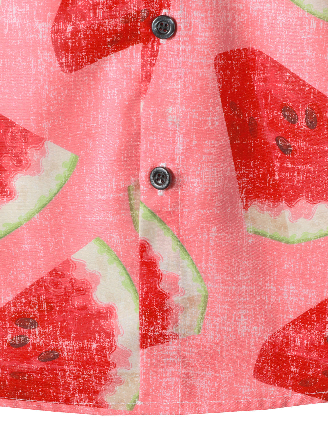 Men's Watermenlon Tropical Fruit Beach Pink Pocket Button Up Aloha Short Sleeve Hawaiian Shirt