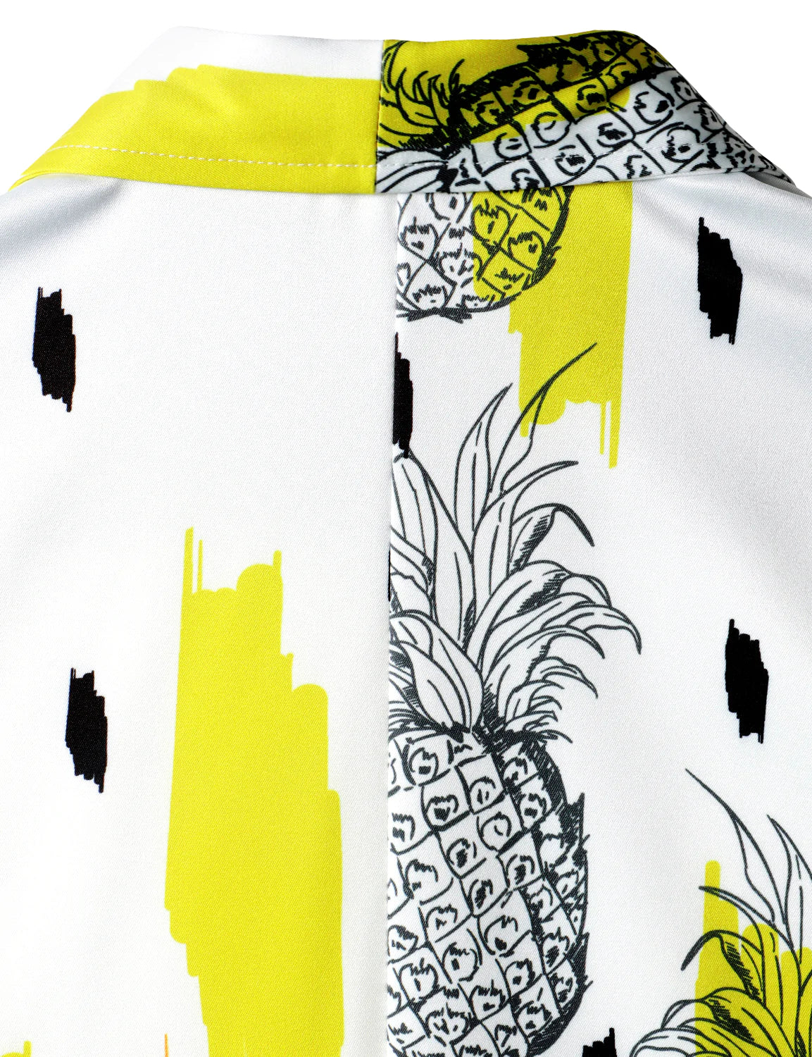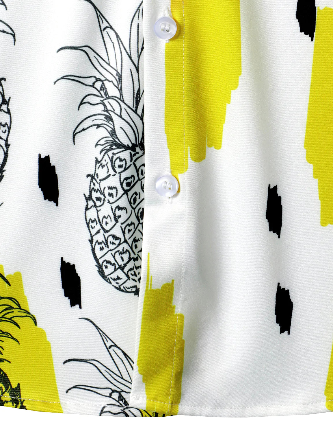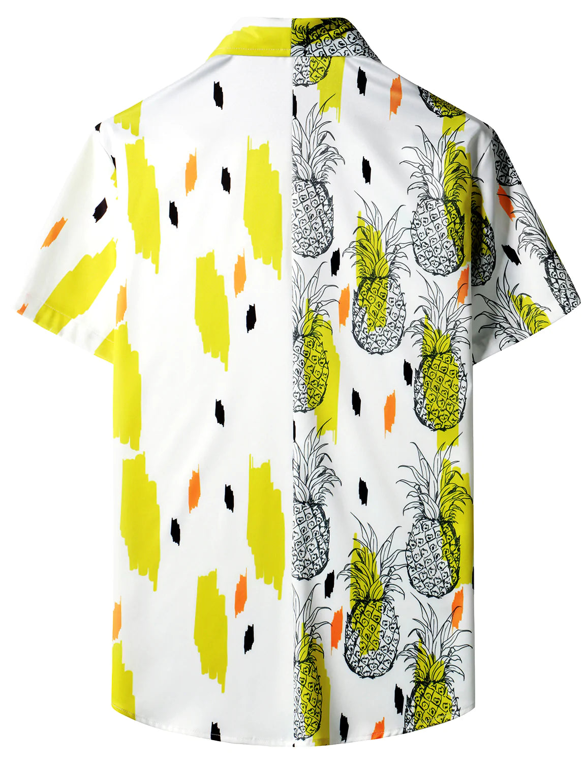 Men's Tropical Pineapple Coconut Tree Print Holiday Short Sleeve Shirt