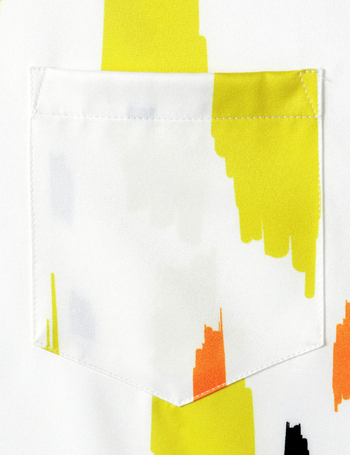 Men's Cotton Alphabet Letter Print Yellow Button Long Sleeve Shirt
