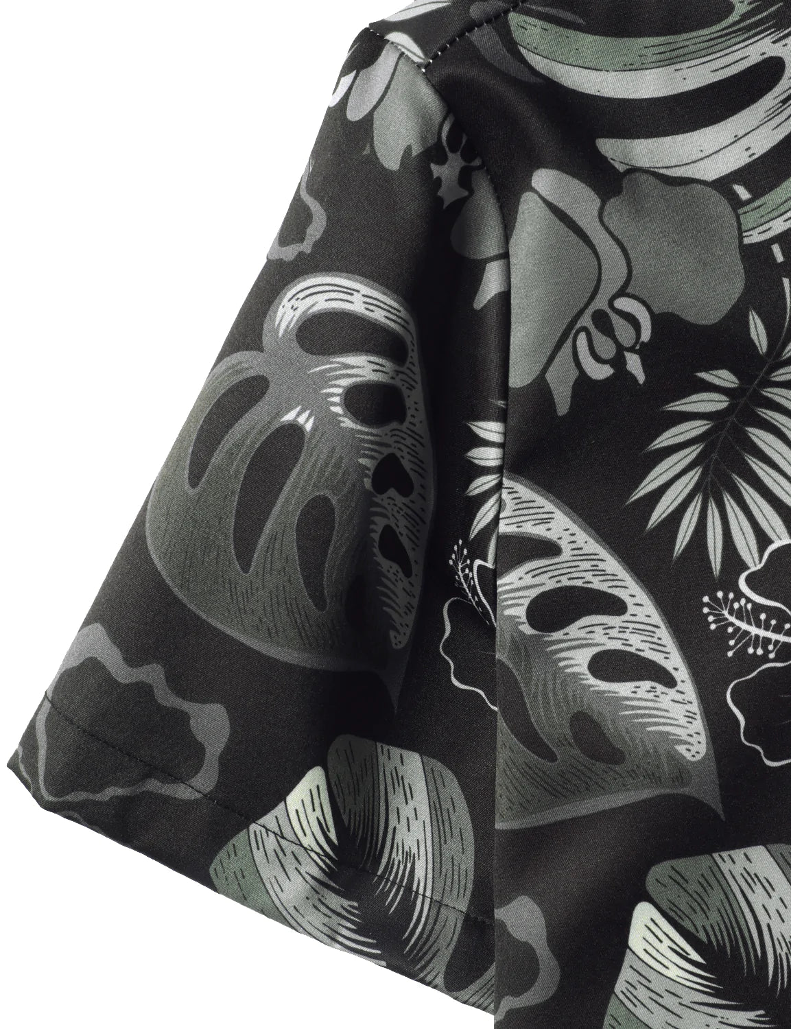Men's Vintage Aloha Print Summer Short Sleeve Pocket Black Hawaiian Shirt