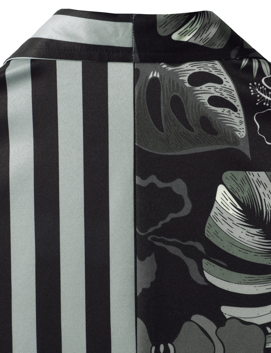 Men's Tropical Leaves And Striped Print Hawaiian Short Sleeve Aloha Shirt