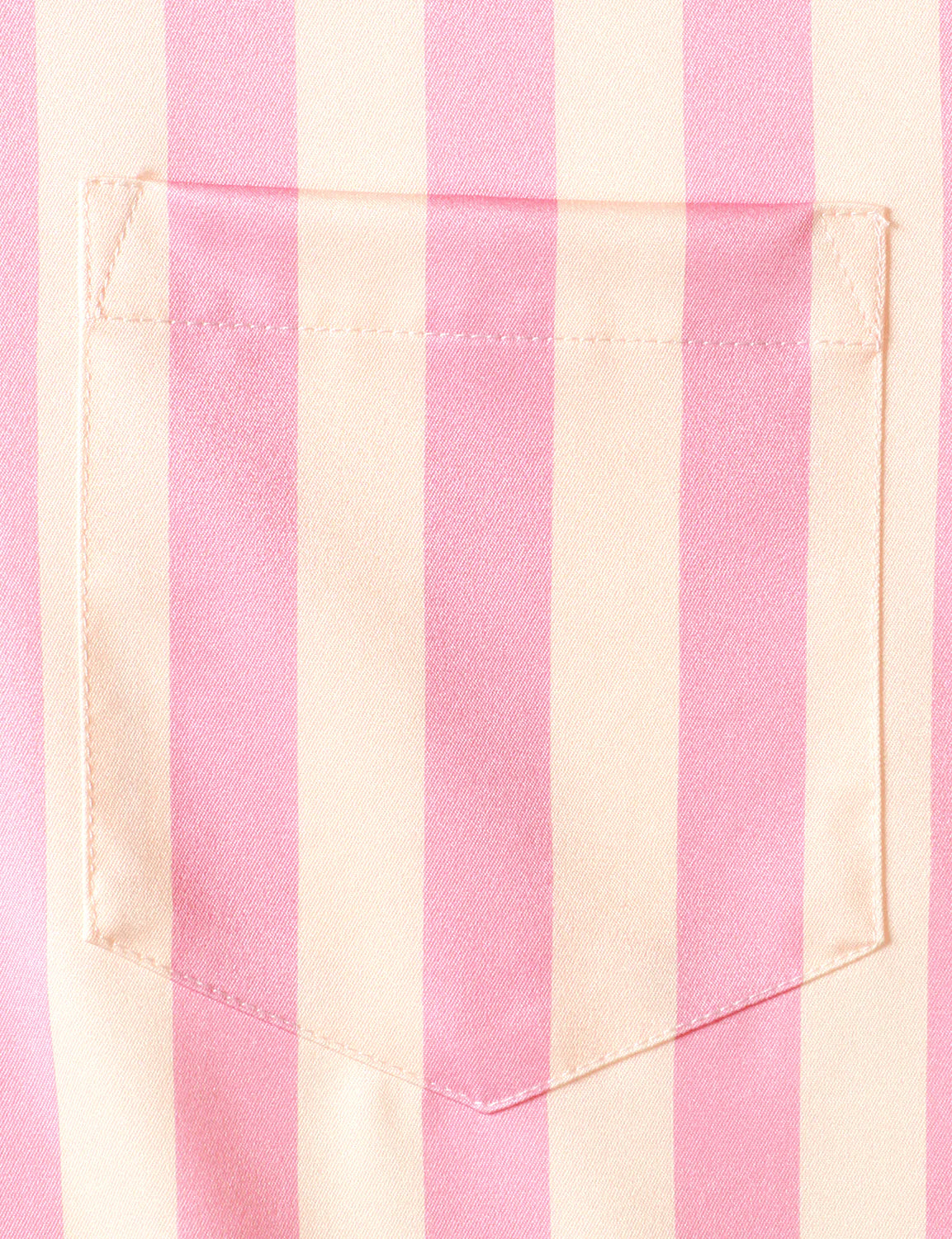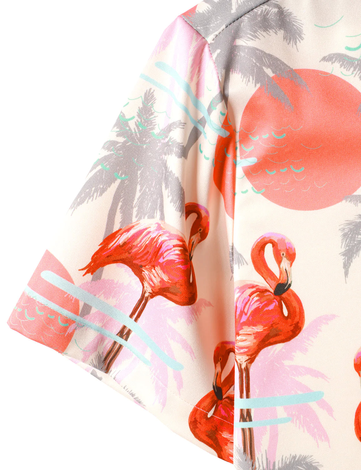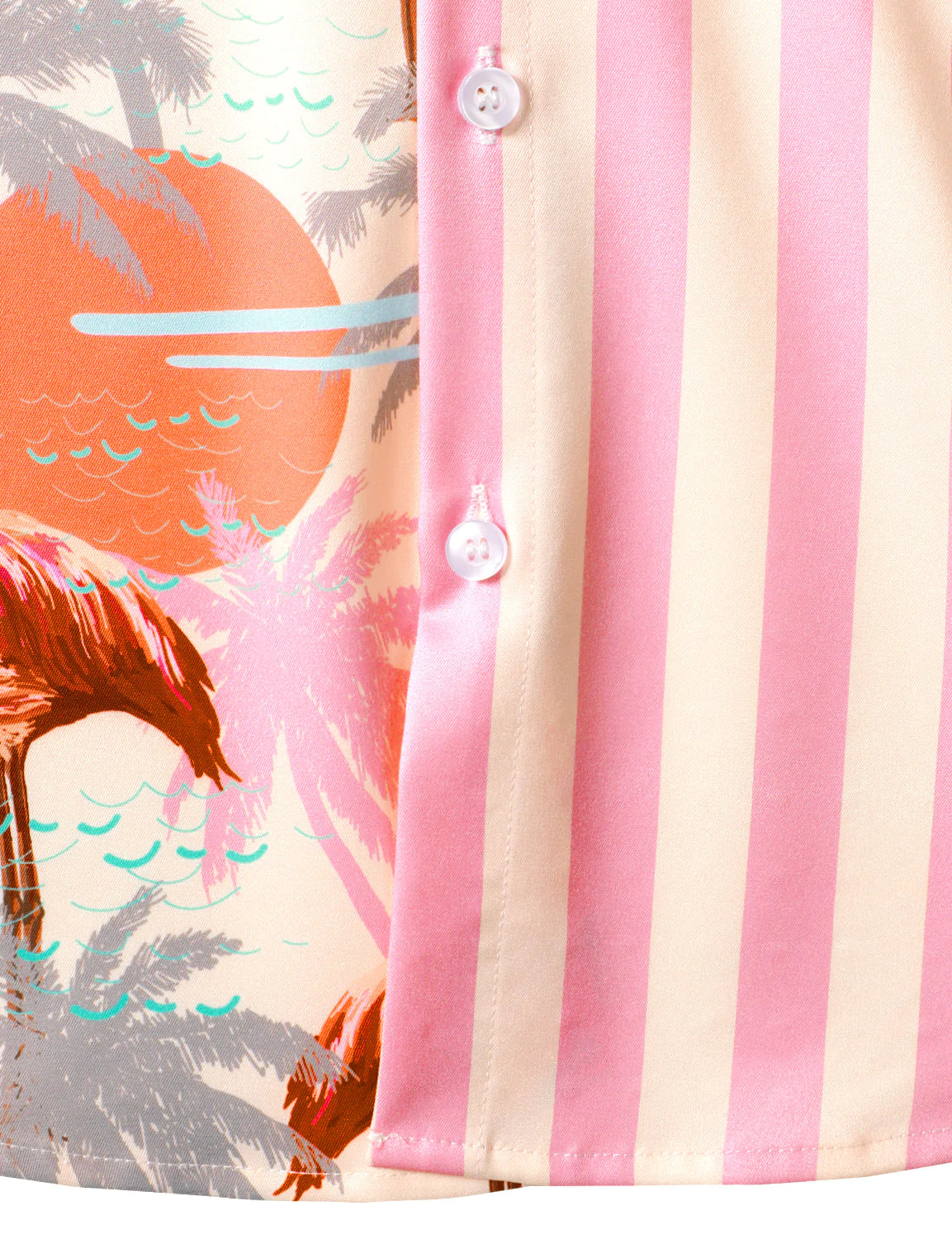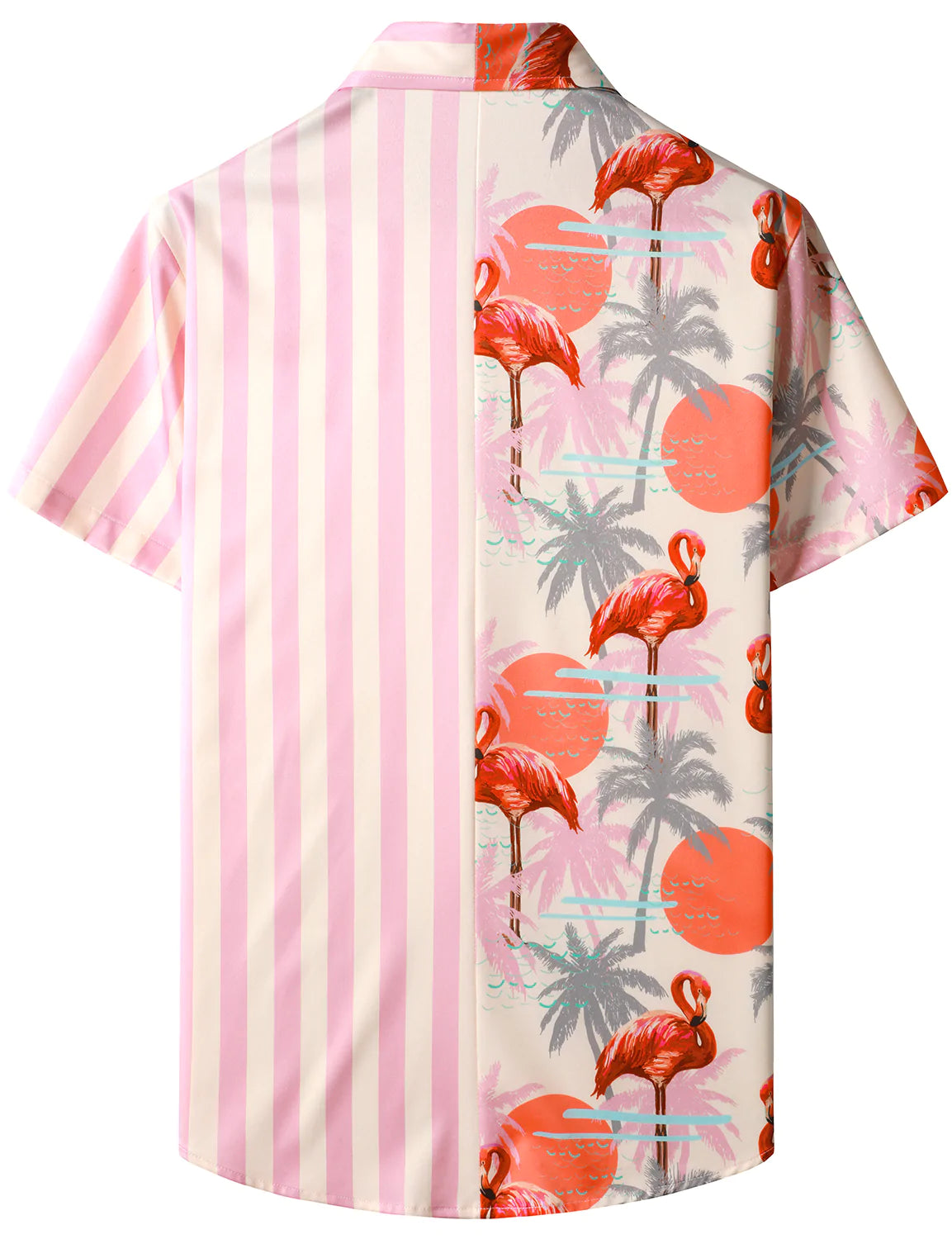 Men's Tropical Palm Tree Flamingo Print Striped Pink Animal Print Top Short Sleeve Shirt