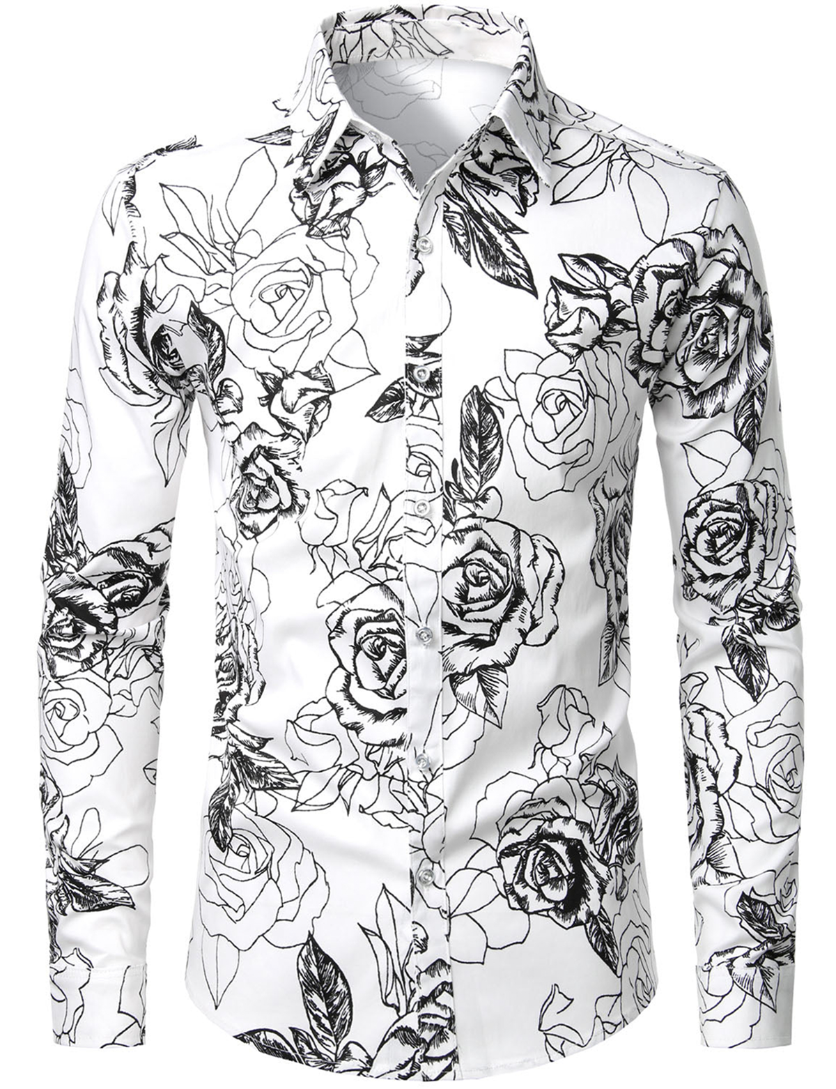Men's Floral Rose Cotton Casual Button Up Flower Long Sleeve Regular fit Dress Shirt
