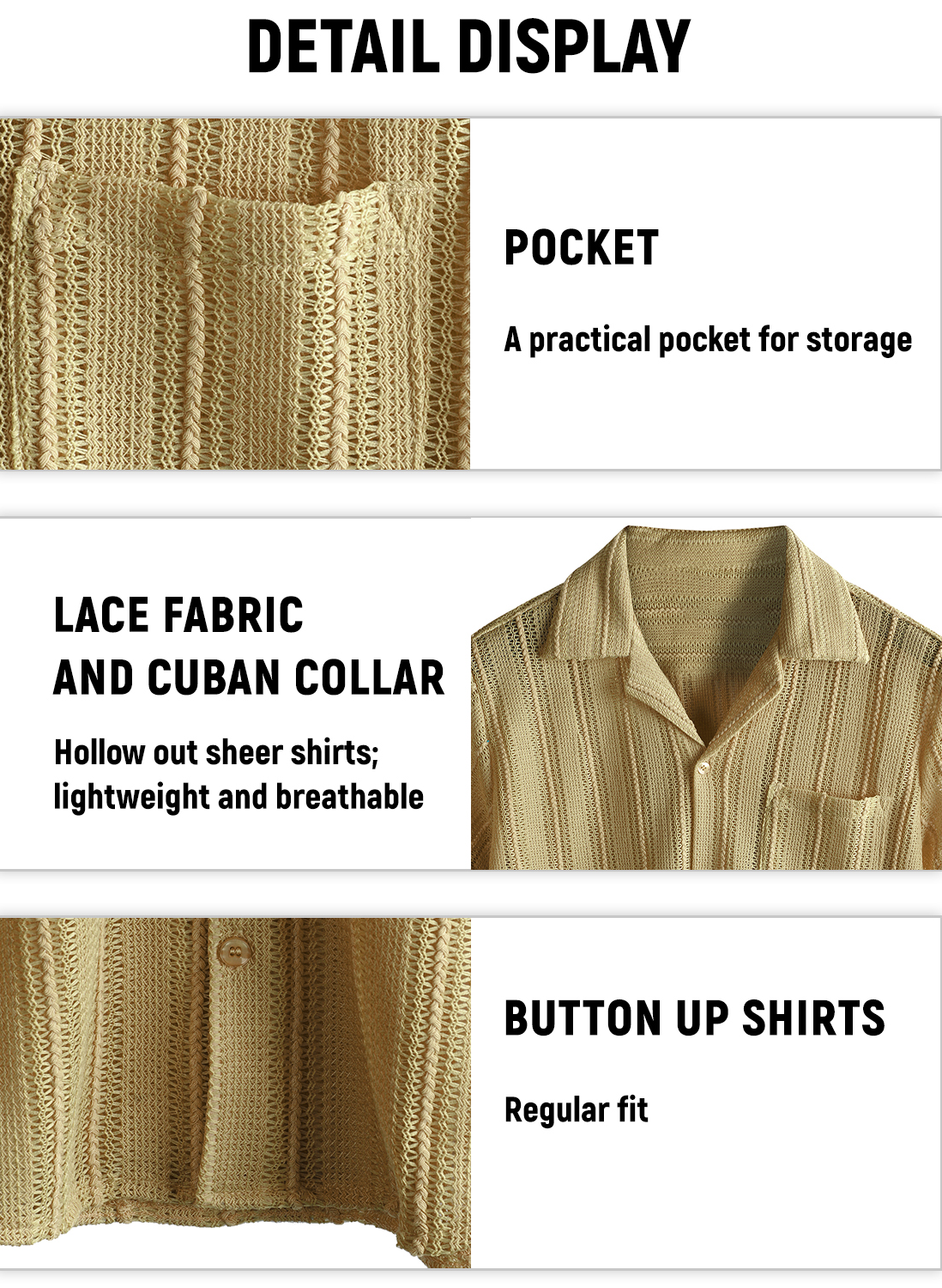 Men's Summer Lace Short Sleeve Casual Button Up Beach Shirt