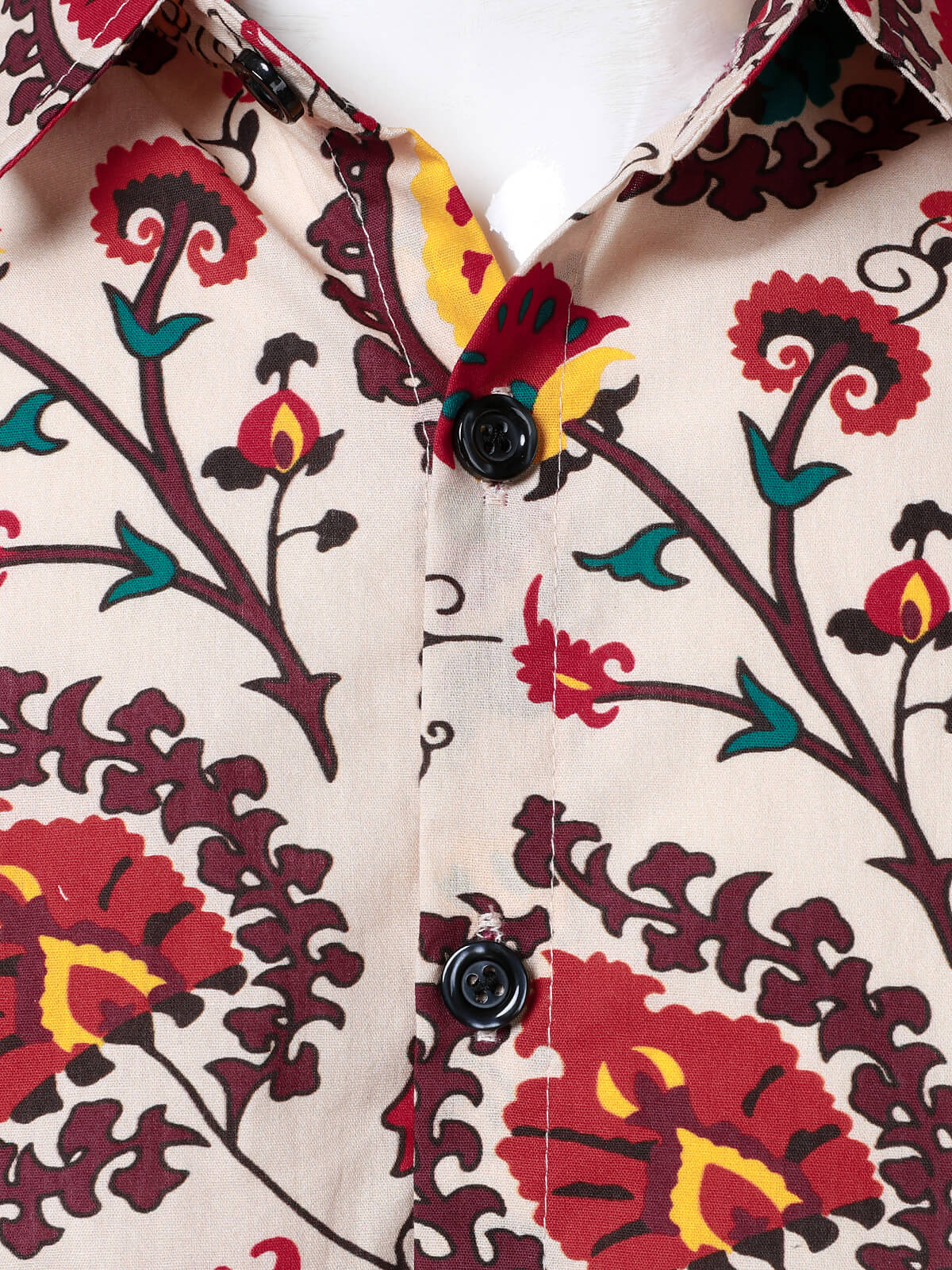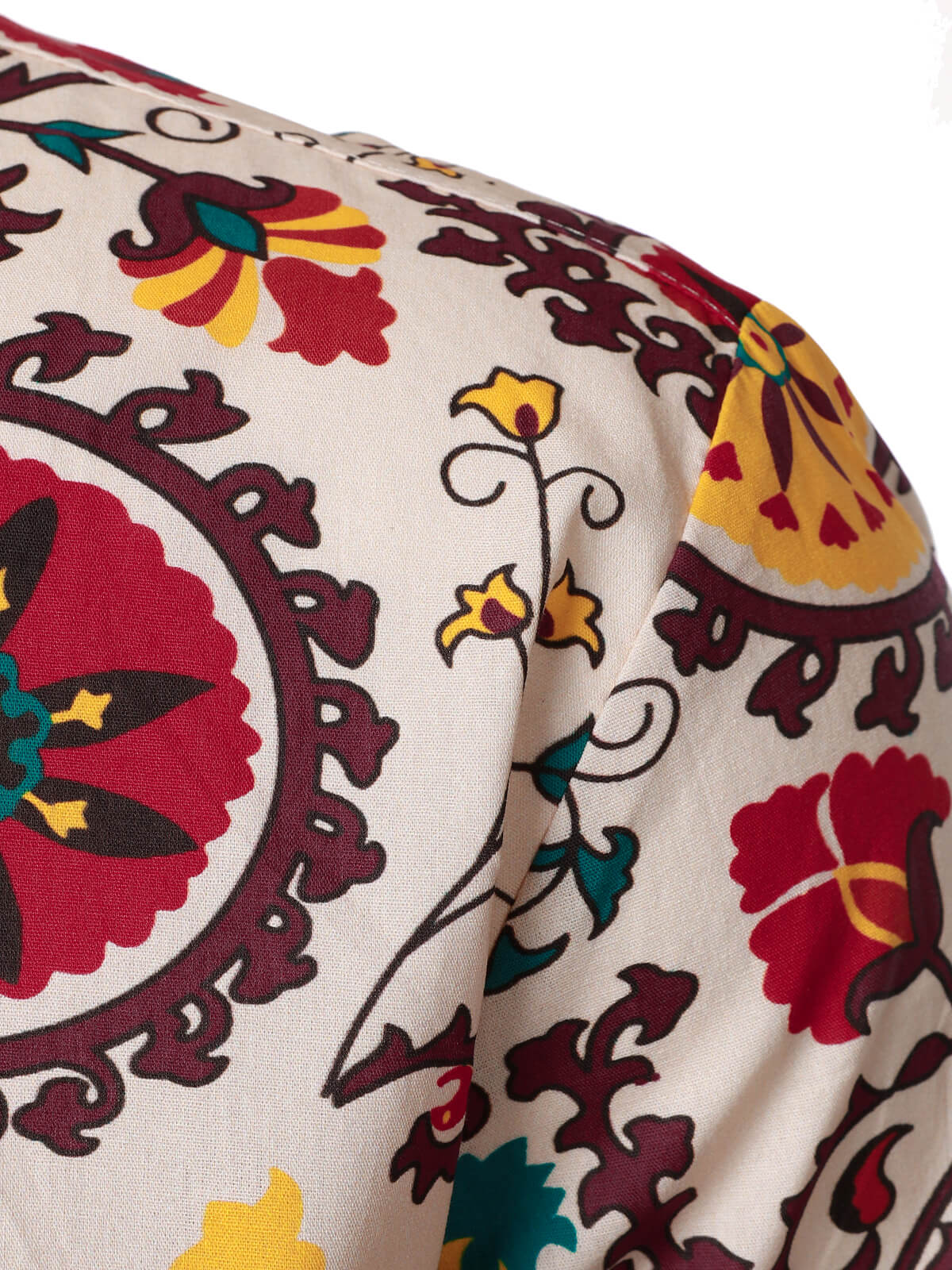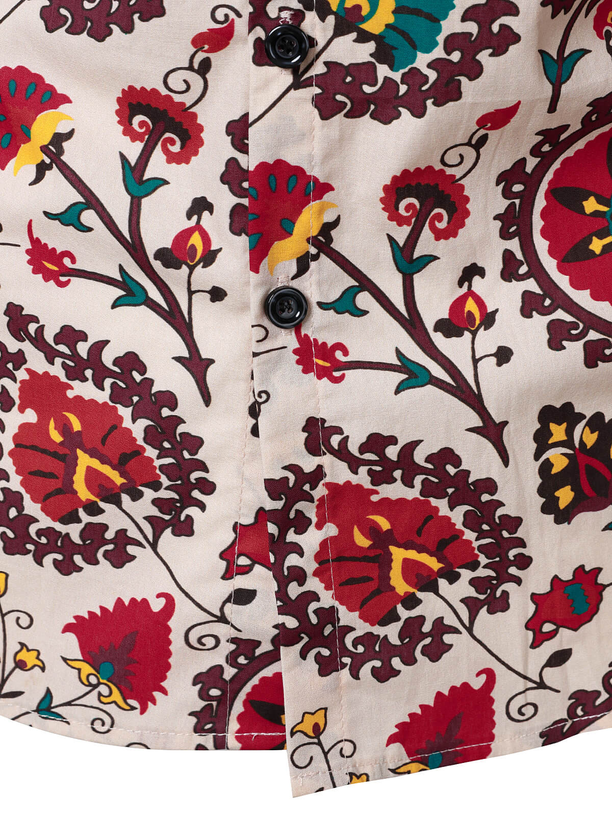 Men's Vintage Print Cotton Long Sleeve Shirt