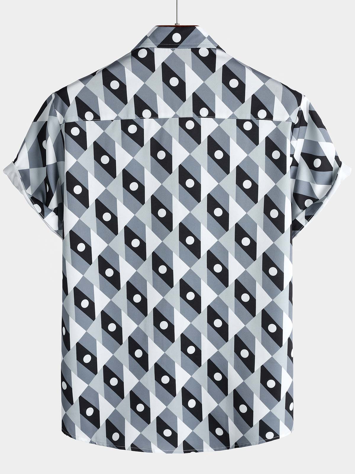 Men's Retro Button Up Vintage Geometric Circle Cool Summer Beach Short Sleeve Shirt