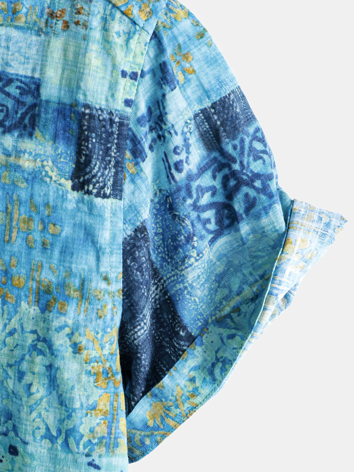 Men's Patchwork Print Breathable Cotton Short Sleeve Button Down Shirt