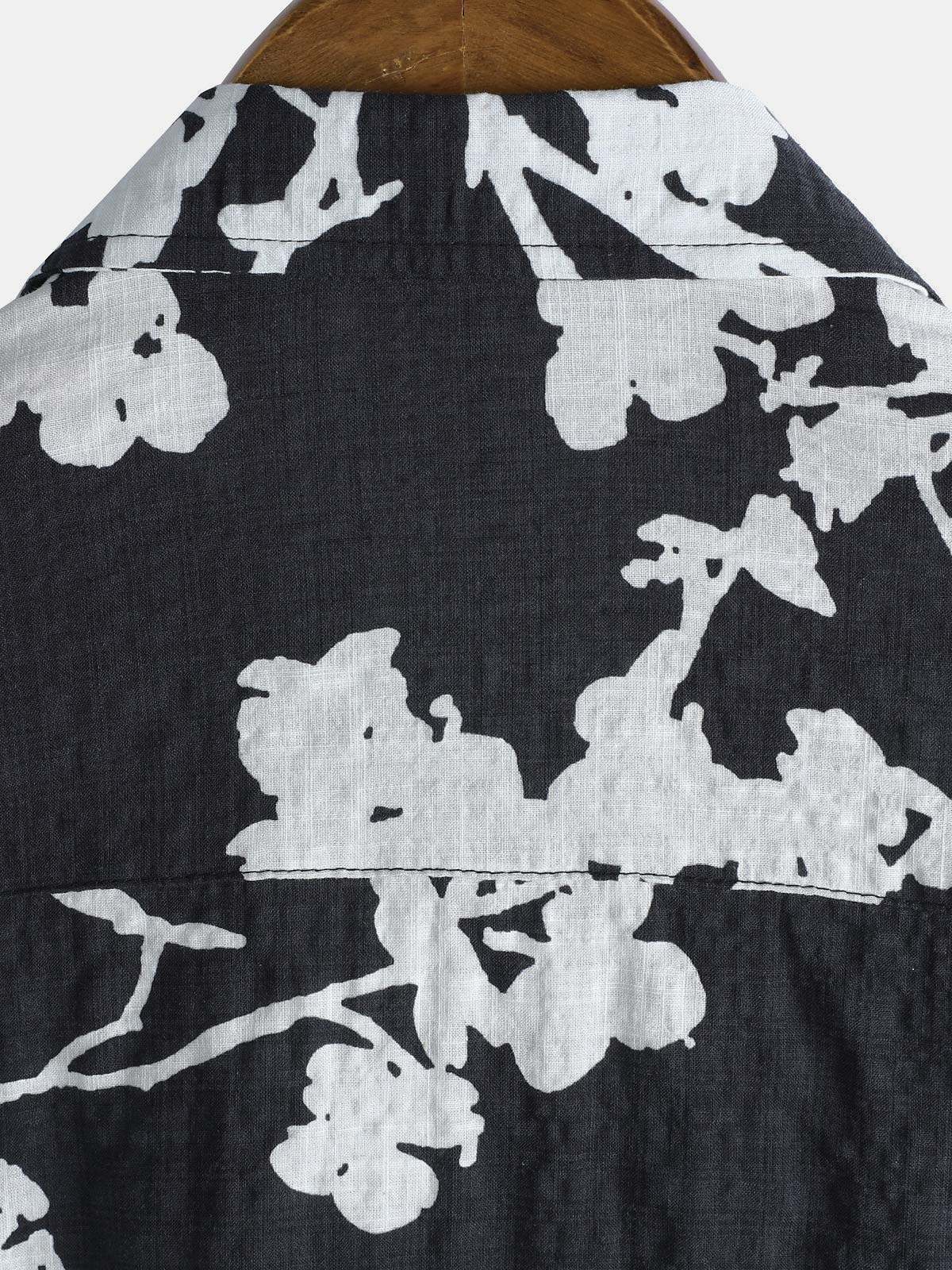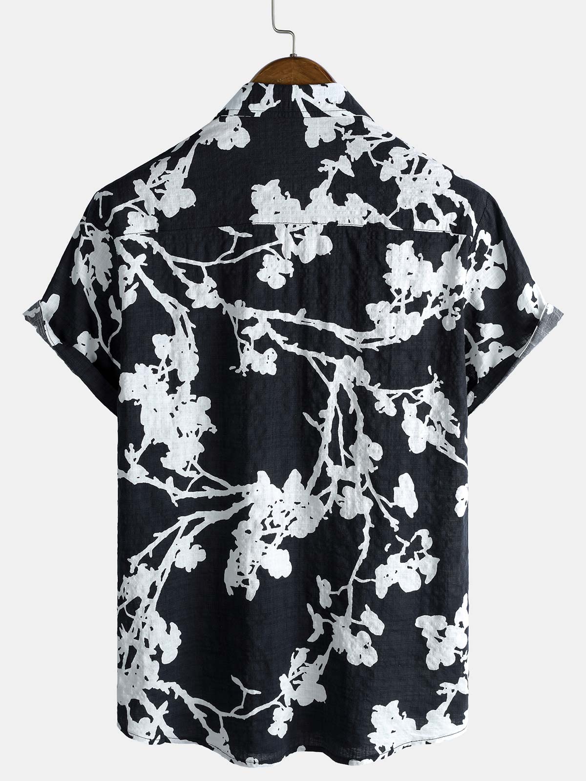 Men's Black and White Hawaiian Floral Breathable Cotton Casual Button Down Shirt