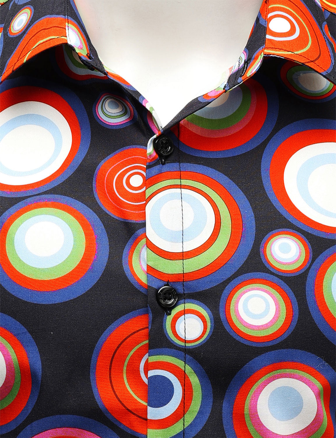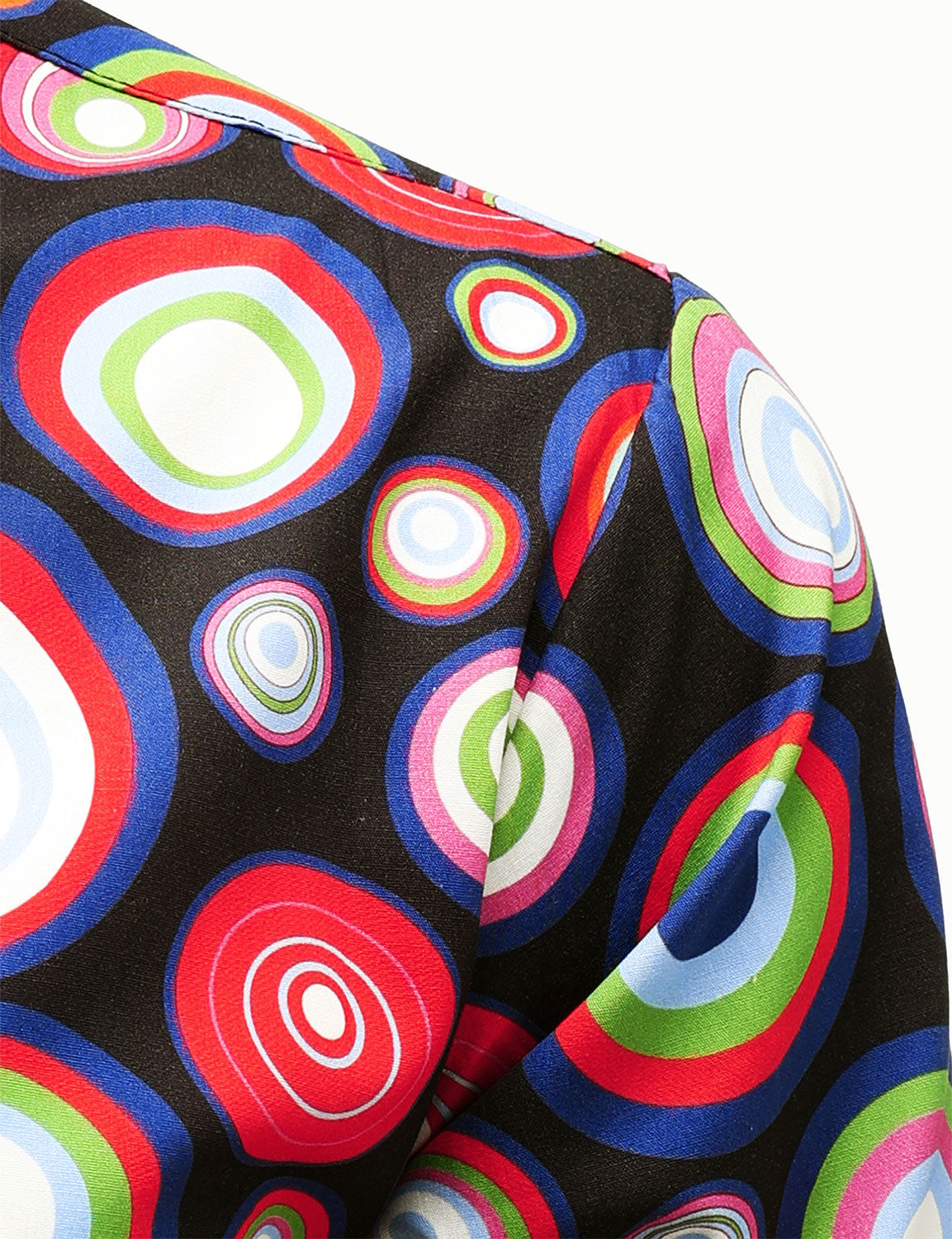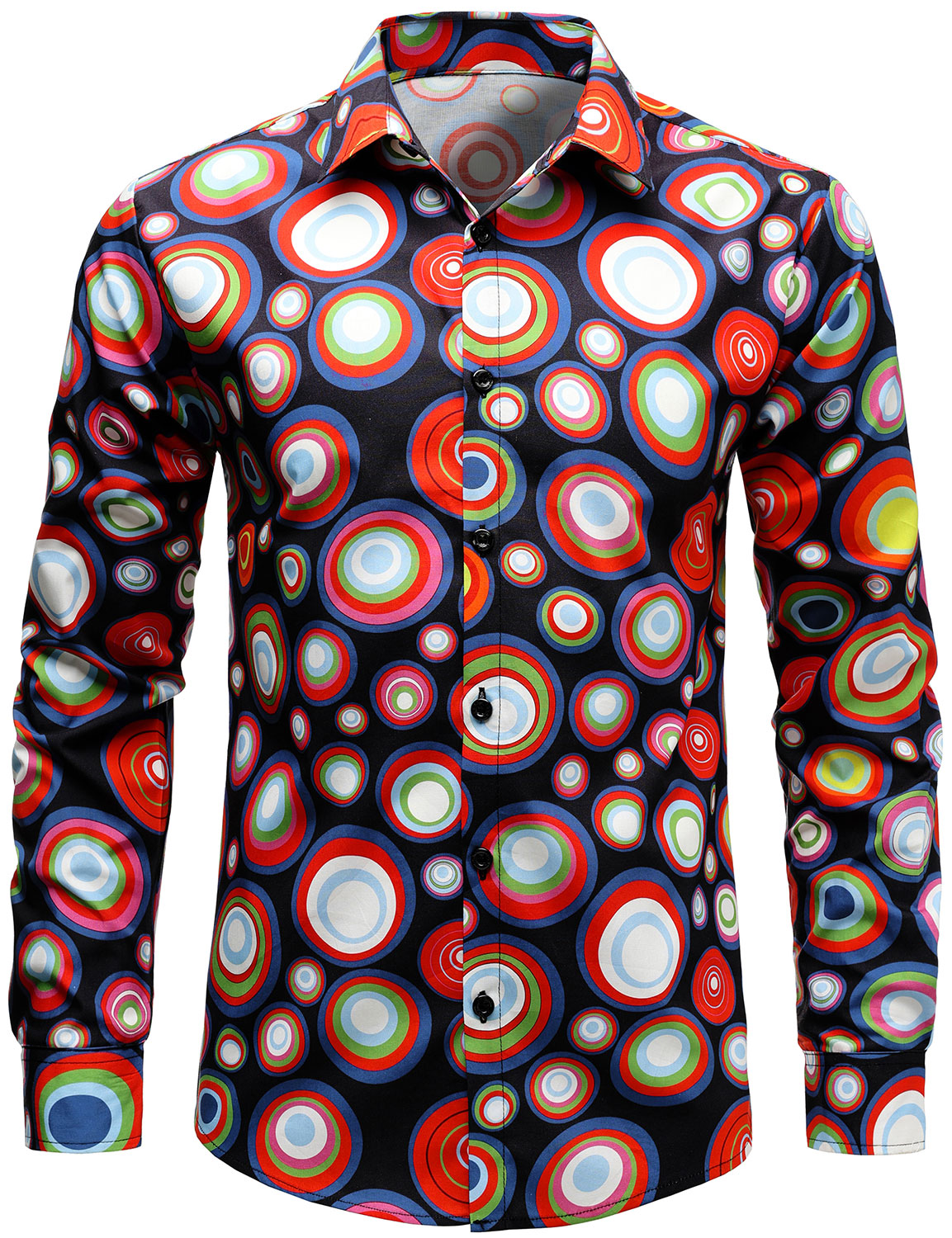 Men's Cotton Vintage Circle Print Long Sleeve Button Up Shirt