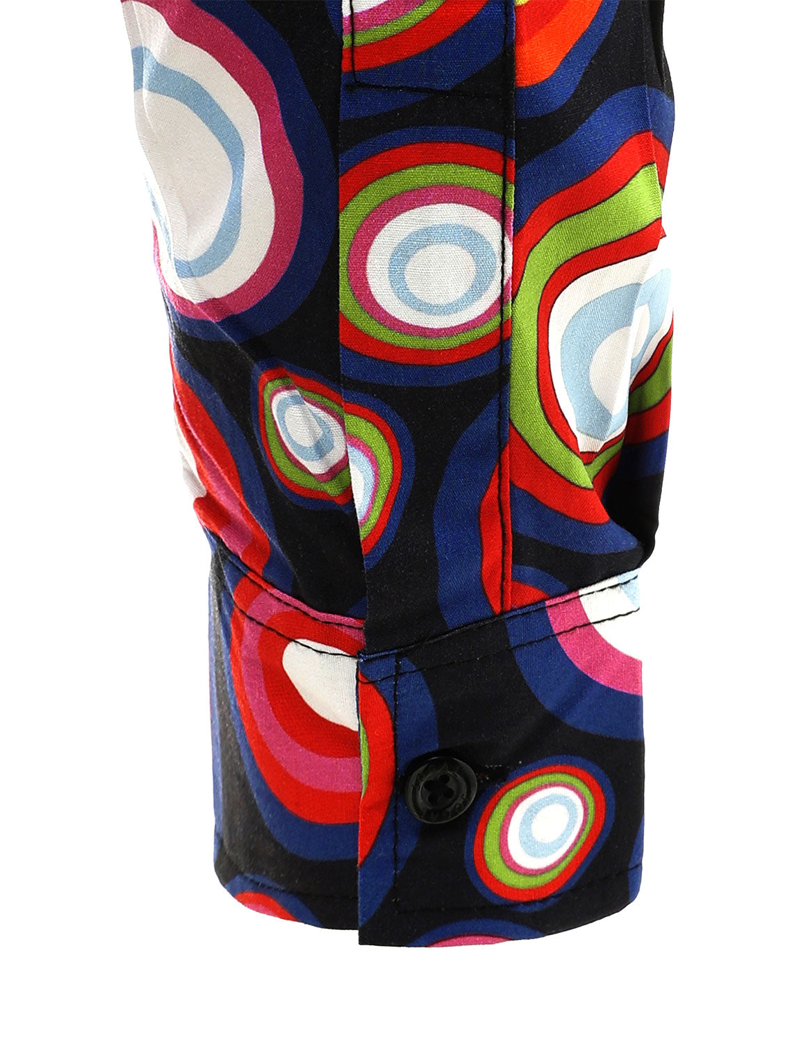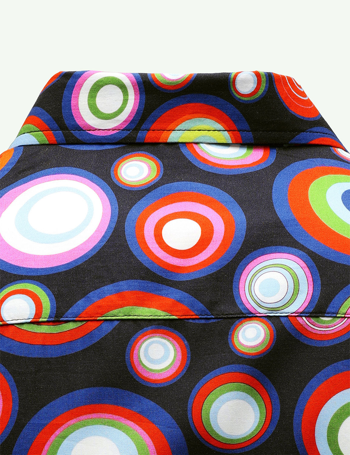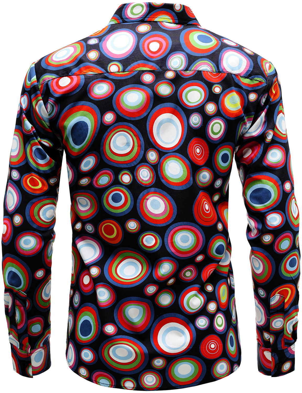 Men's Cotton Vintage Circle Print Long Sleeve Button Up Shirt
