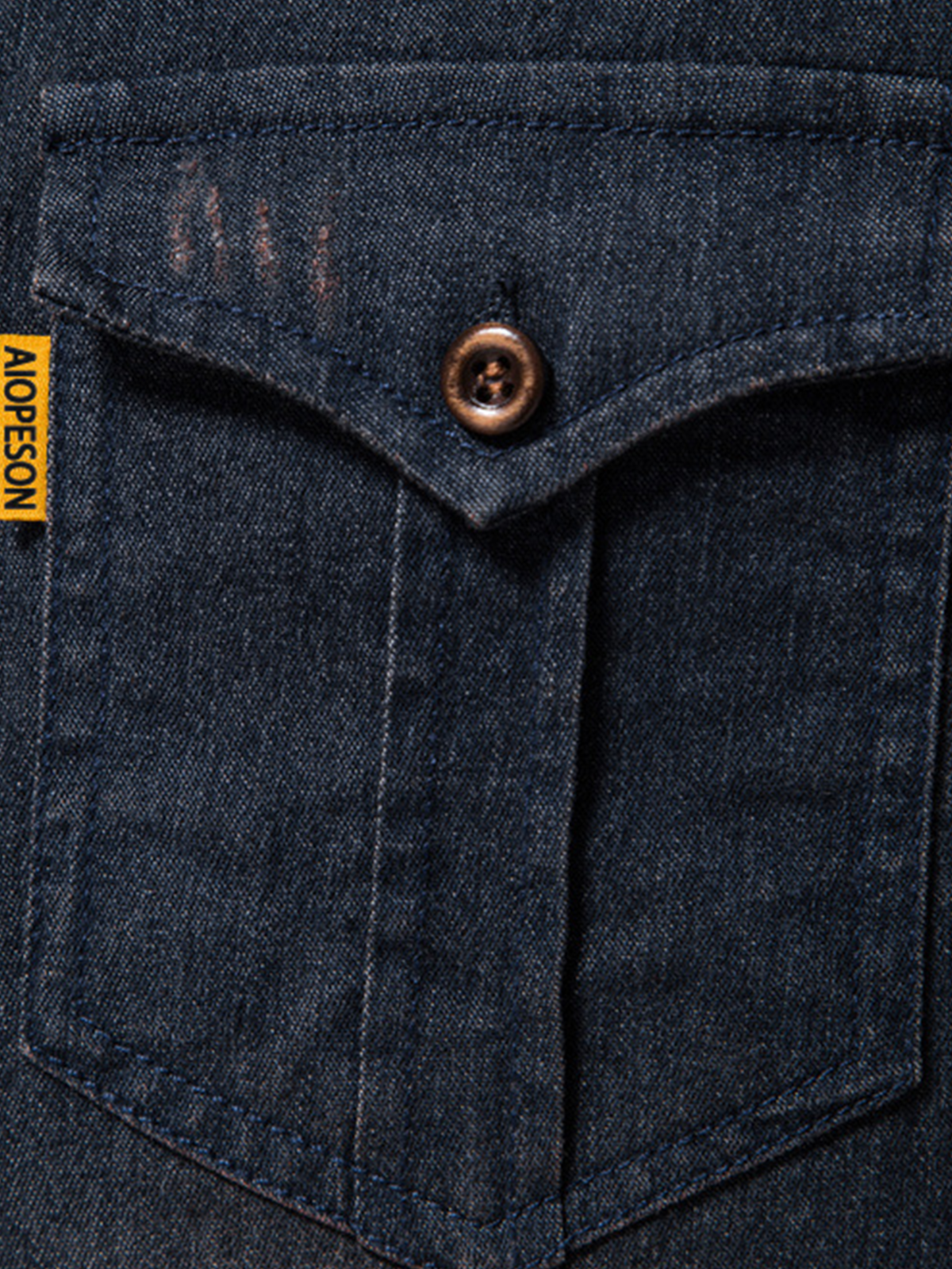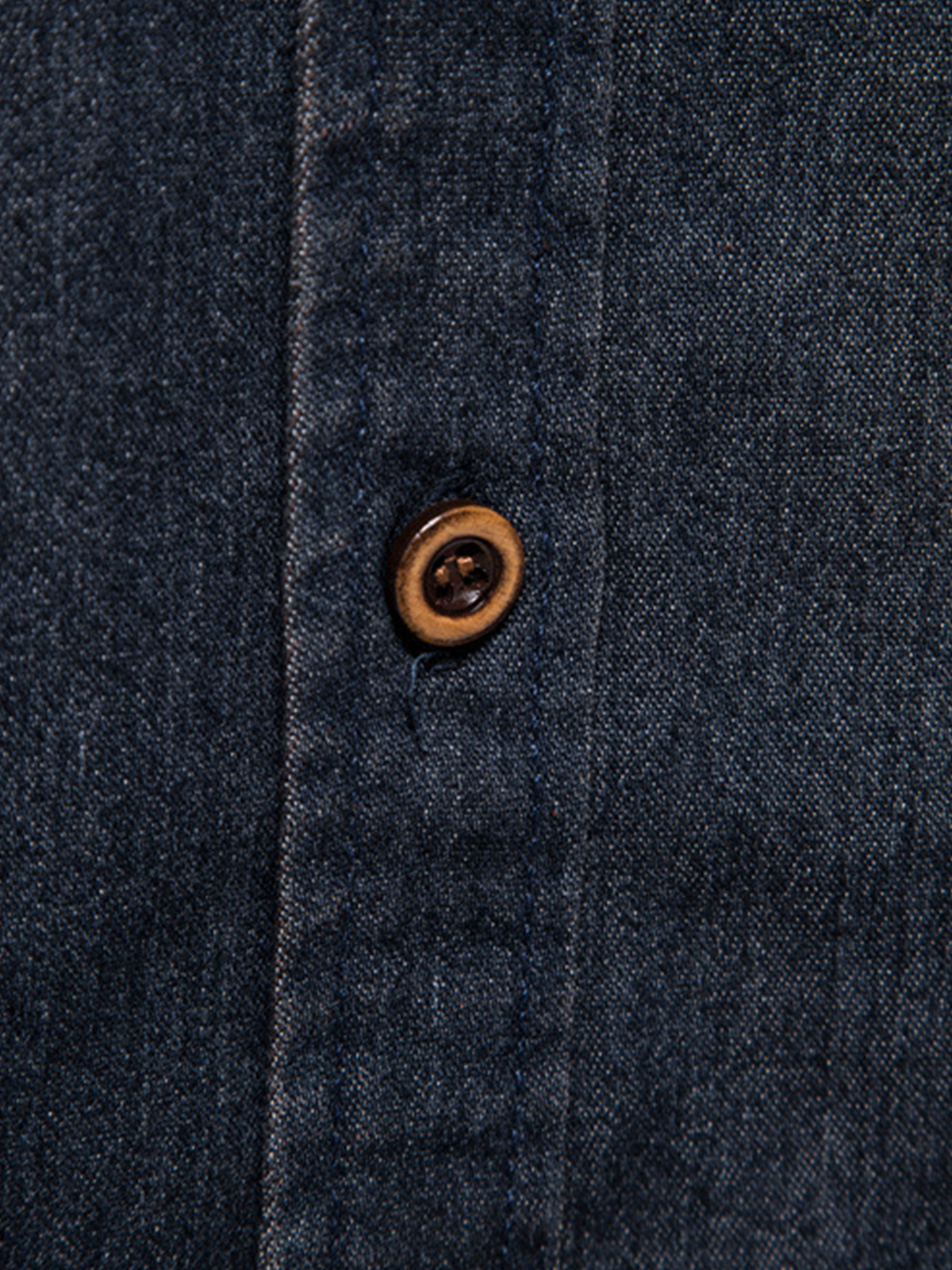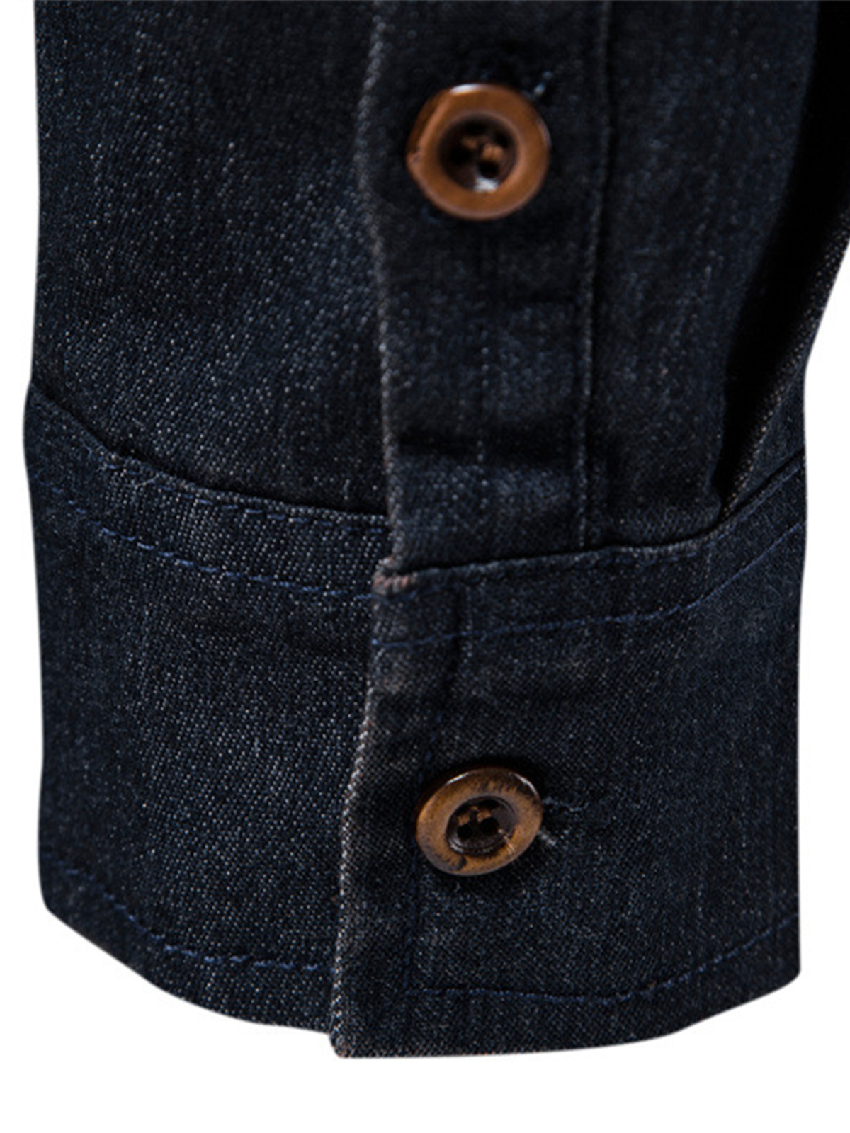 Men's Denim Pocket Solid Color Vintage Cotton Casual Long Sleeve Shirt