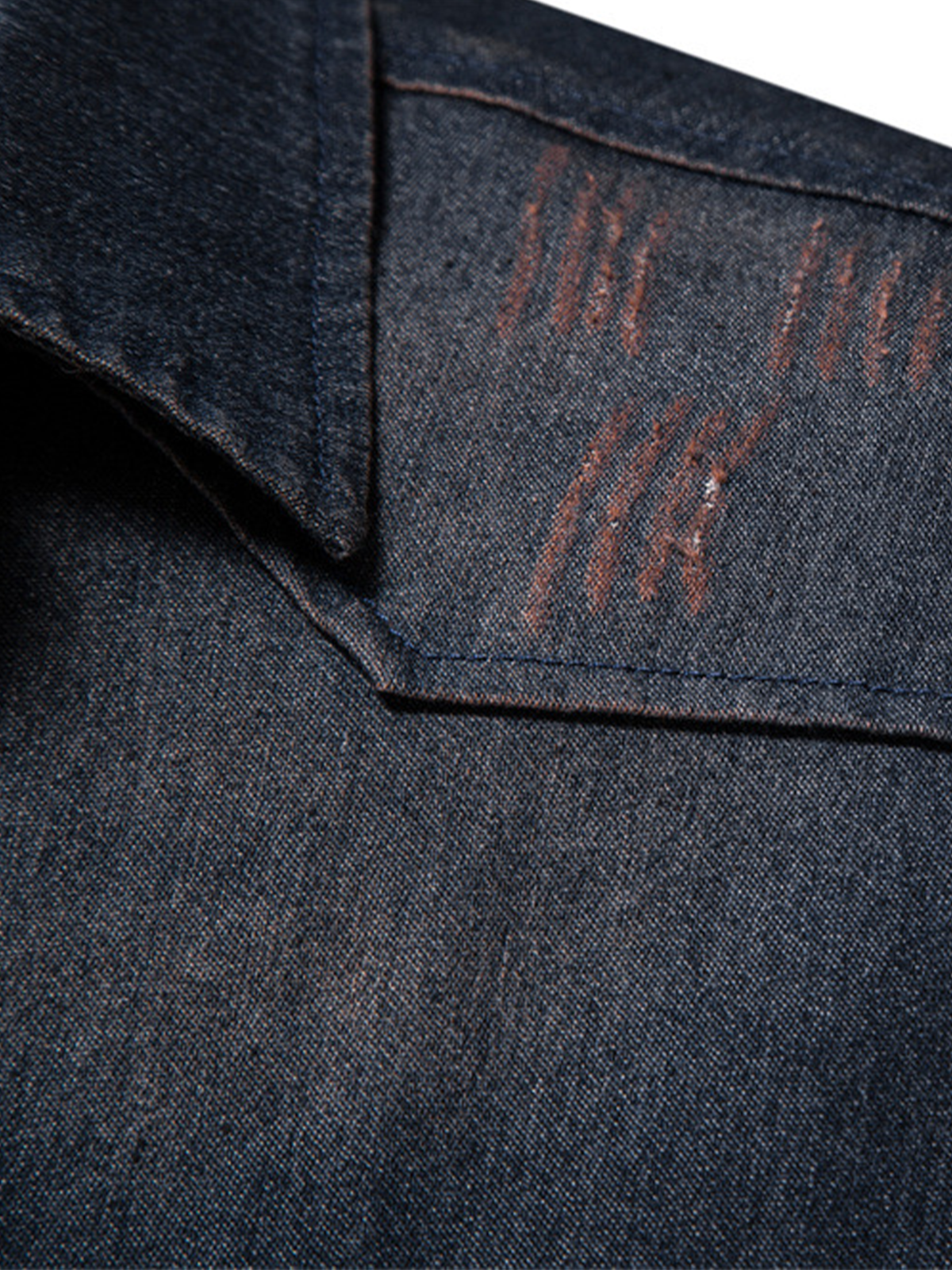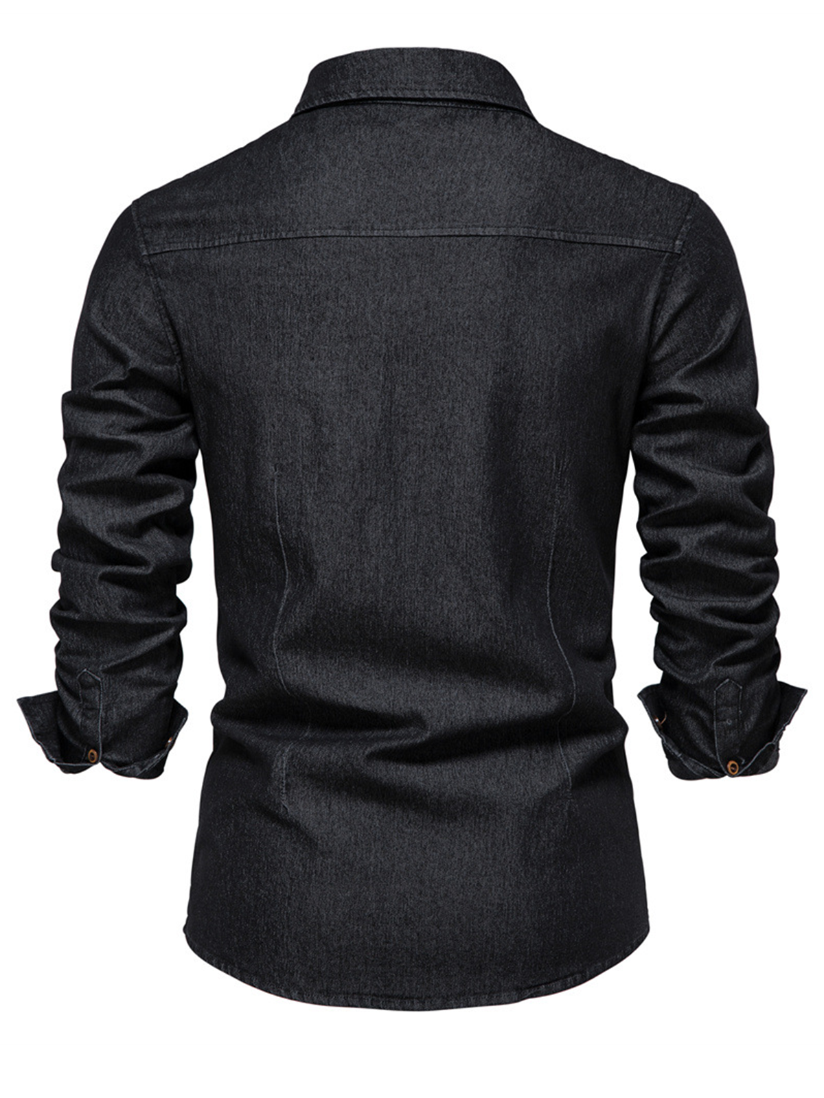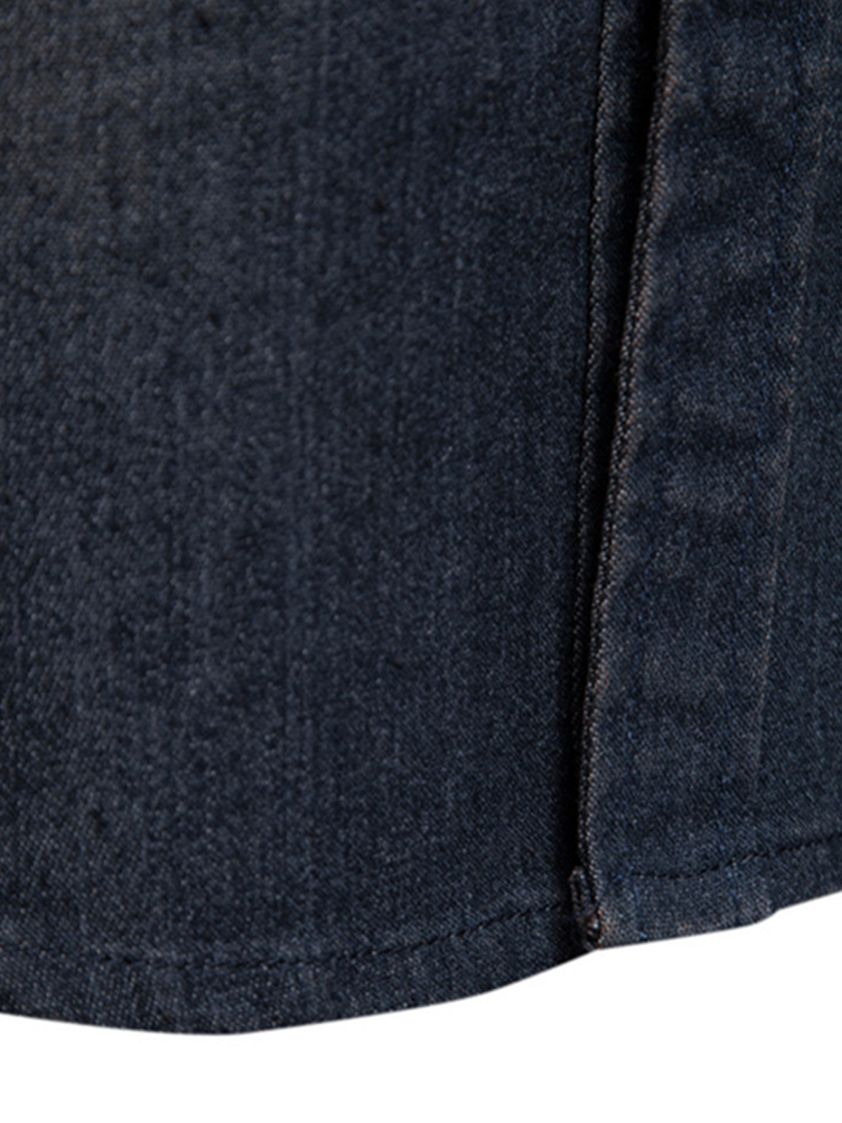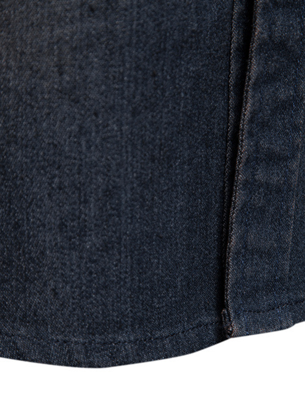 Men's Denim Pocket Solid Color Vintage Cotton Casual Long Sleeve Shirt