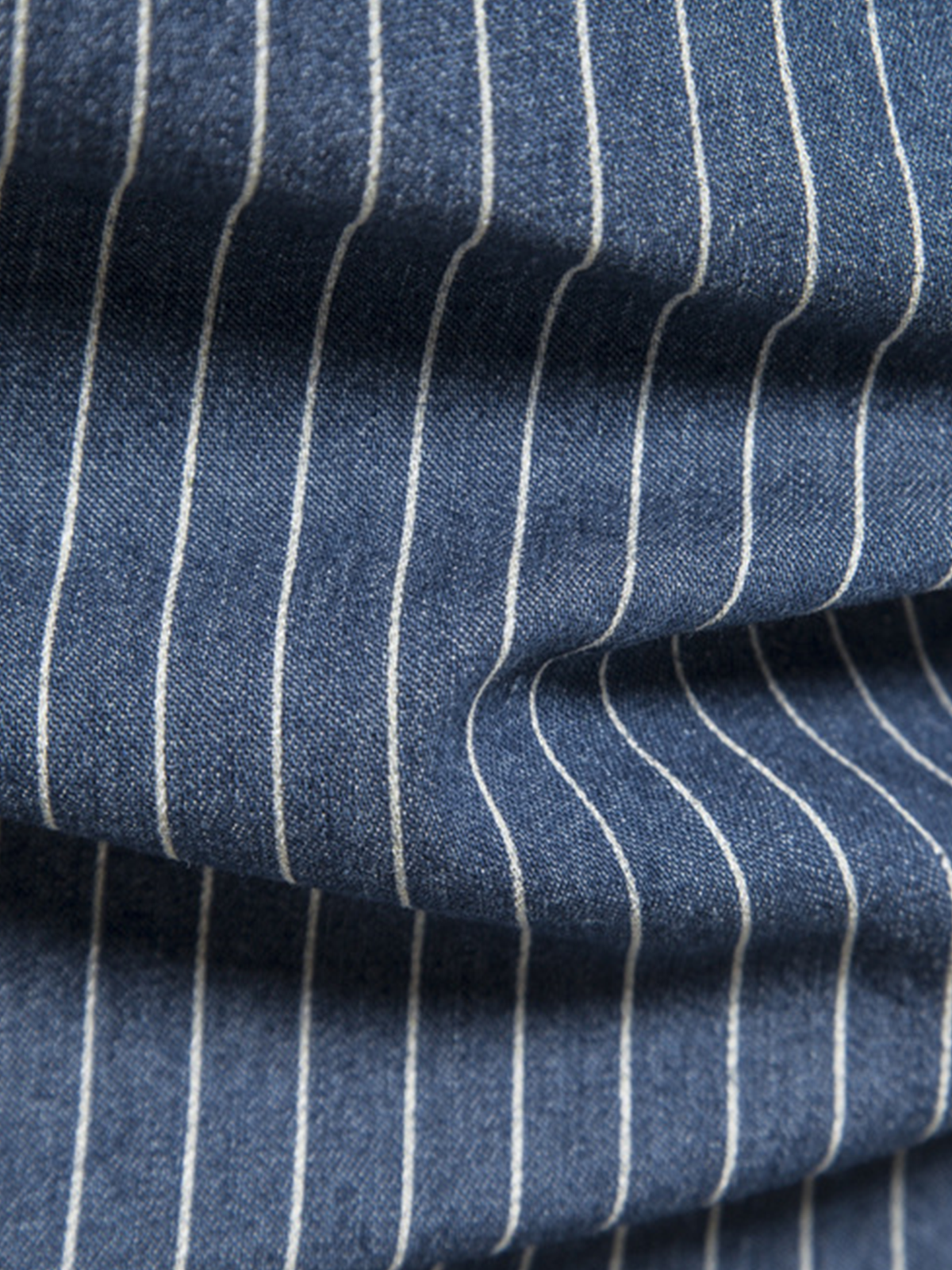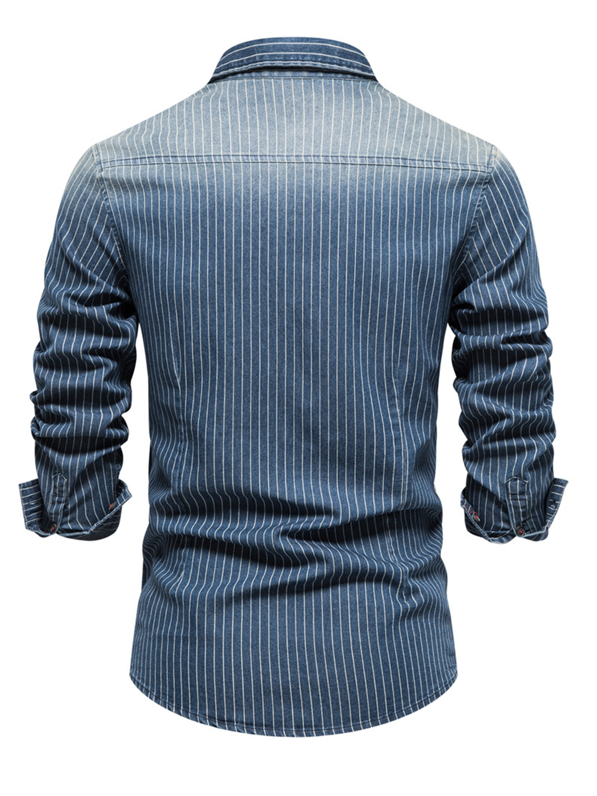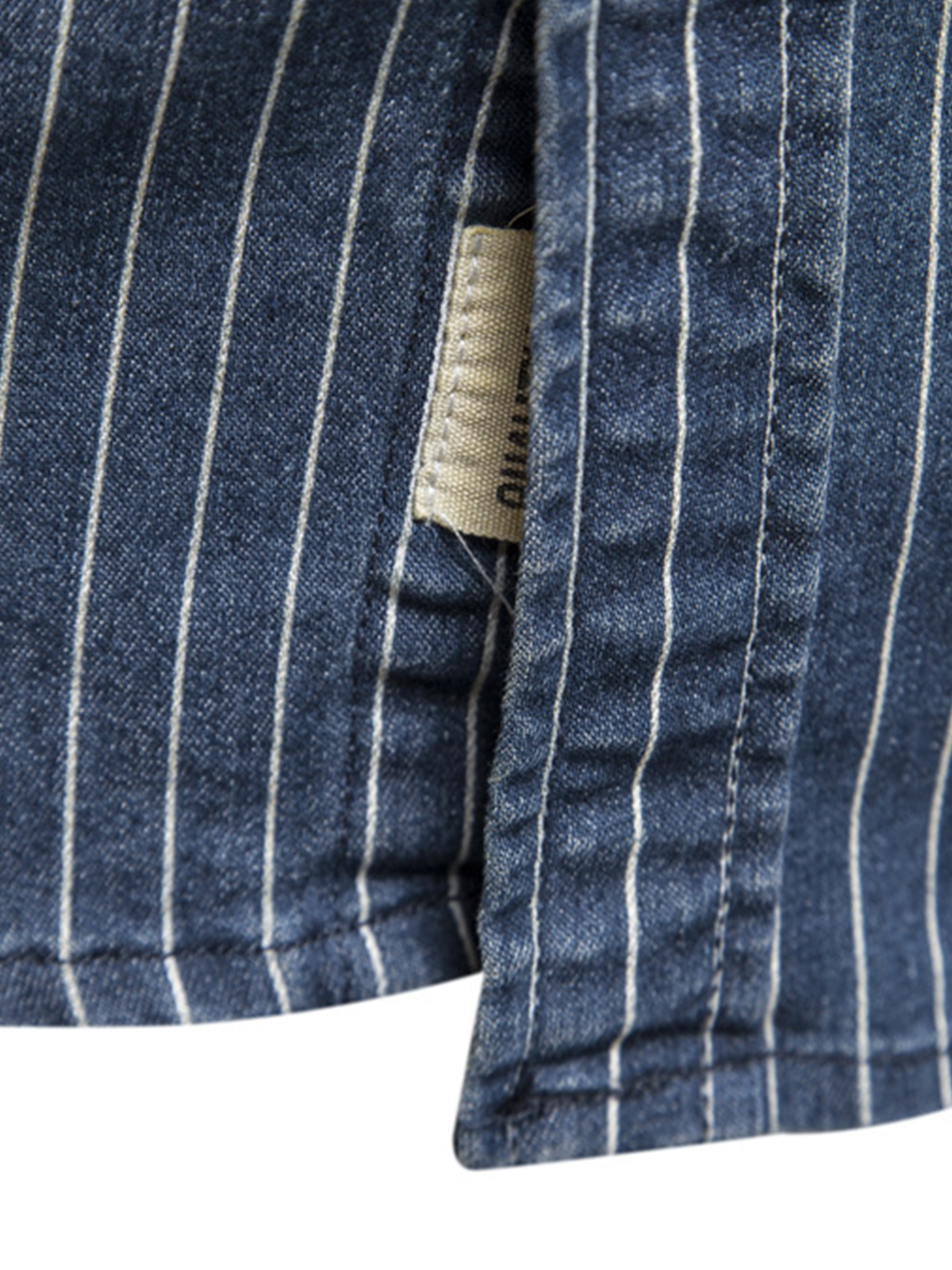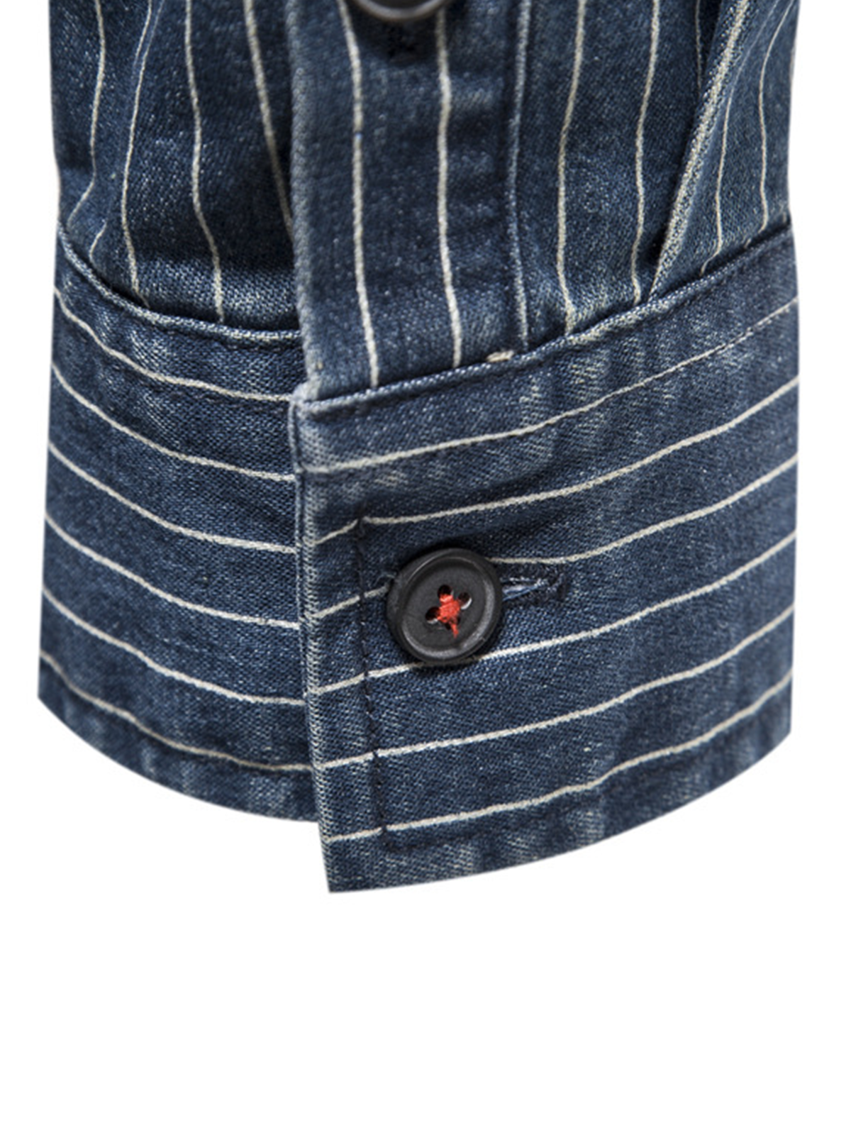 Men's Denim Striped Pocket Vintage Cotton Long Sleeve Button Shirt