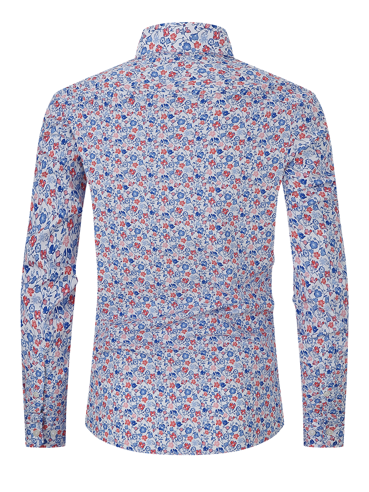 Men's Floral Cotton Flower Button Up 70s Long Sleeve Dress Shirt