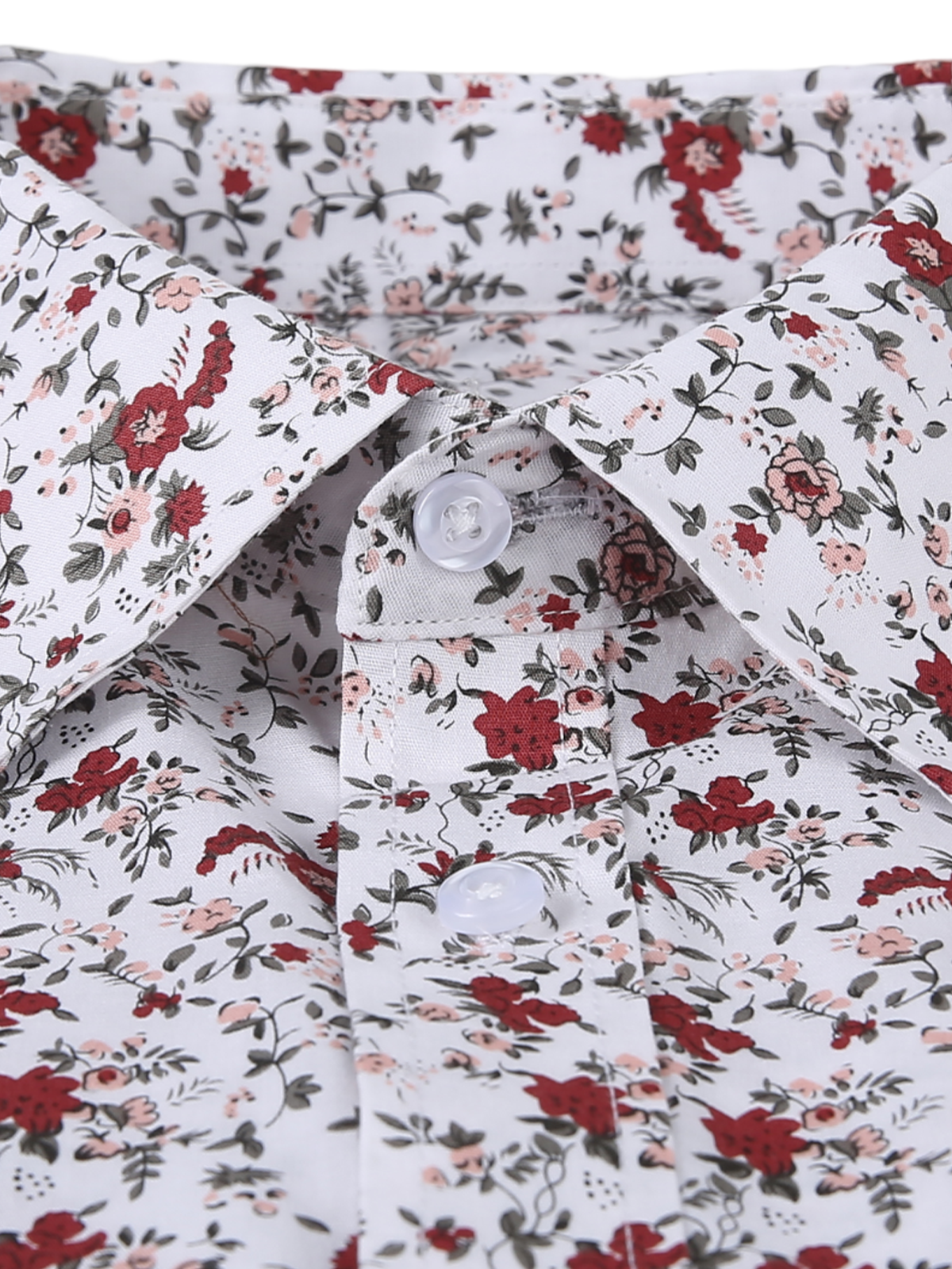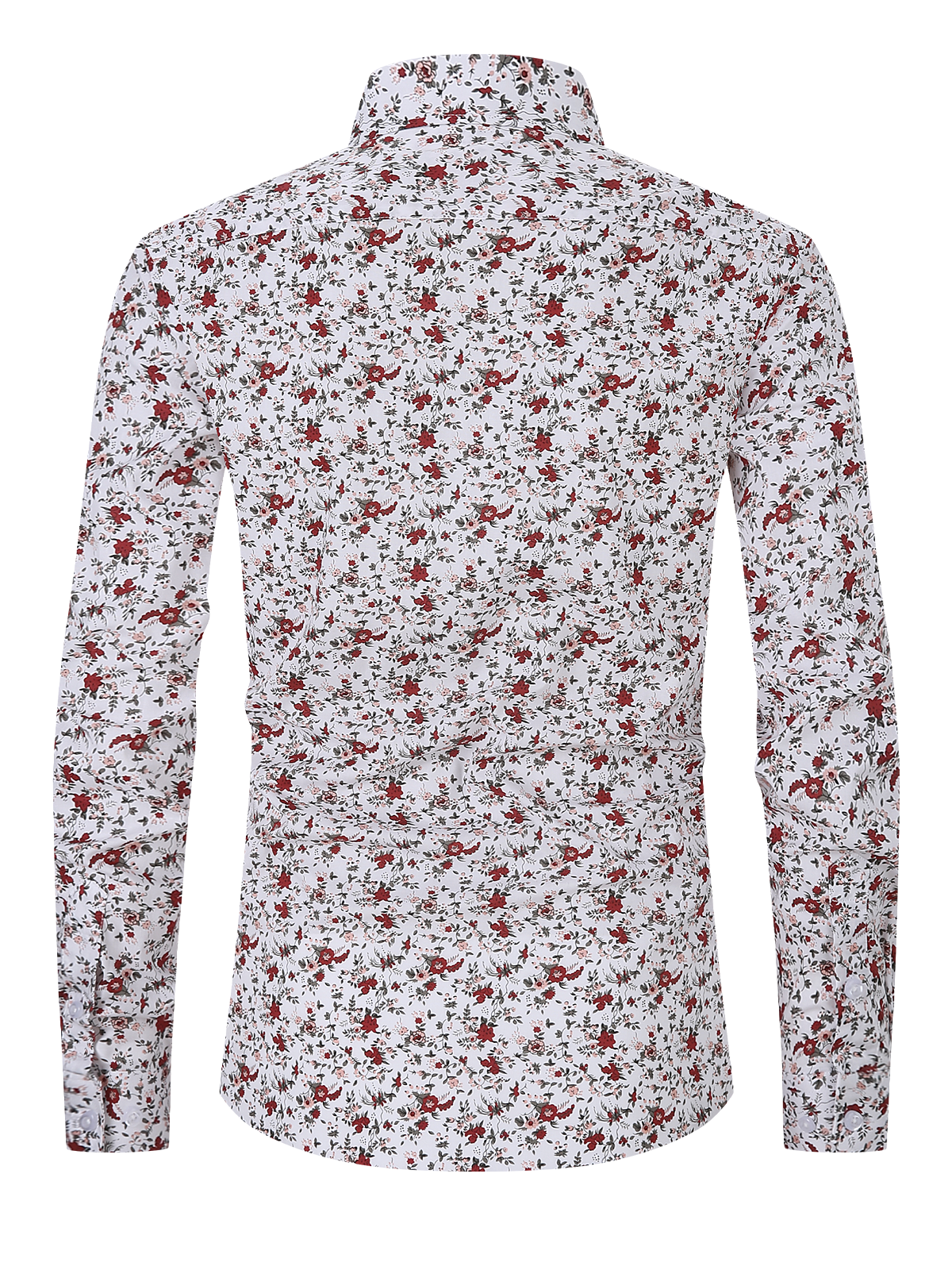 Men's Floral Cotton Breathable White Flower Button Up Long Sleeve Dress Shirt