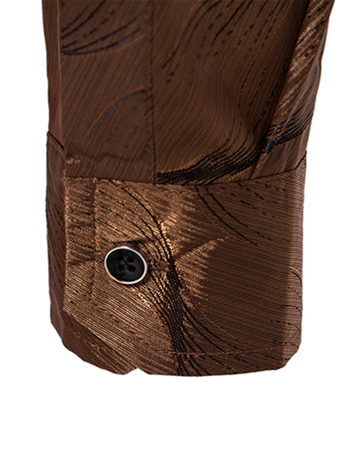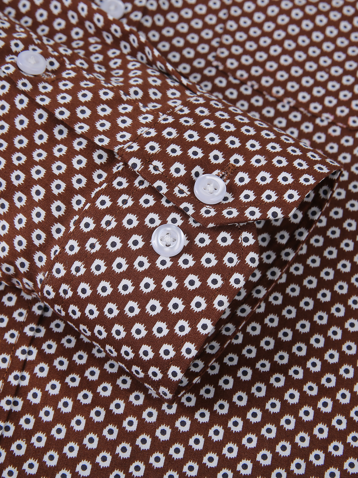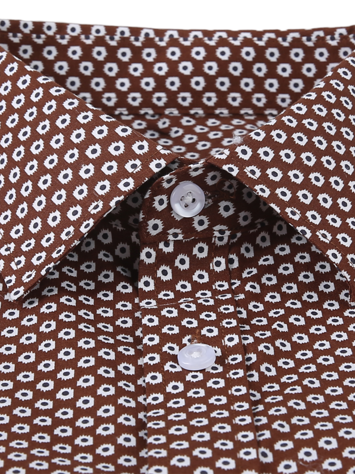 Men's Casual Print Button Up Brown Vintage Long Sleeve Dress Shirt