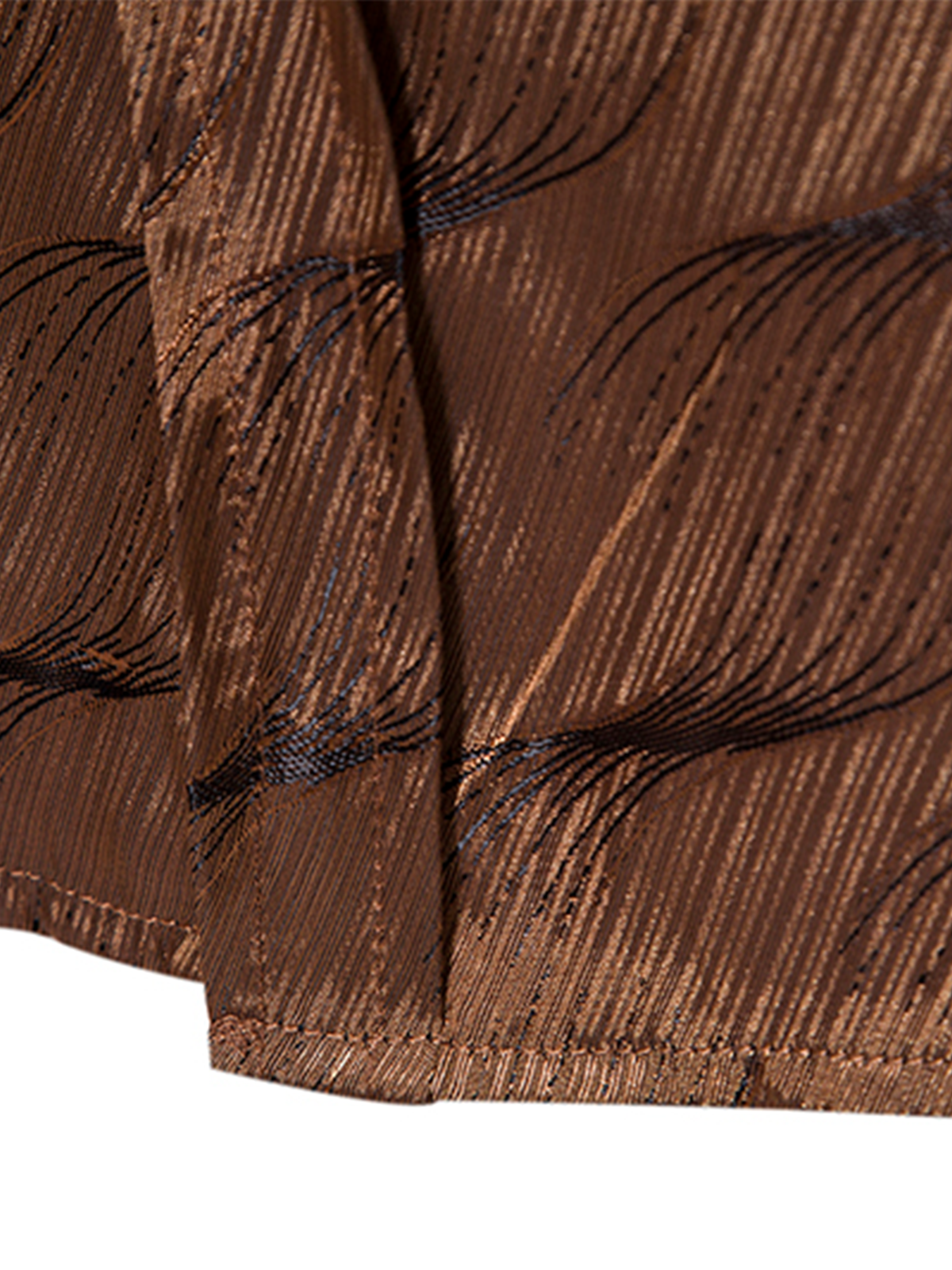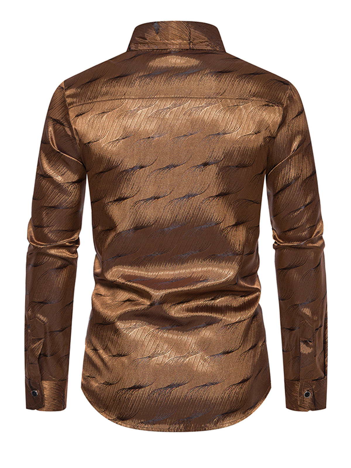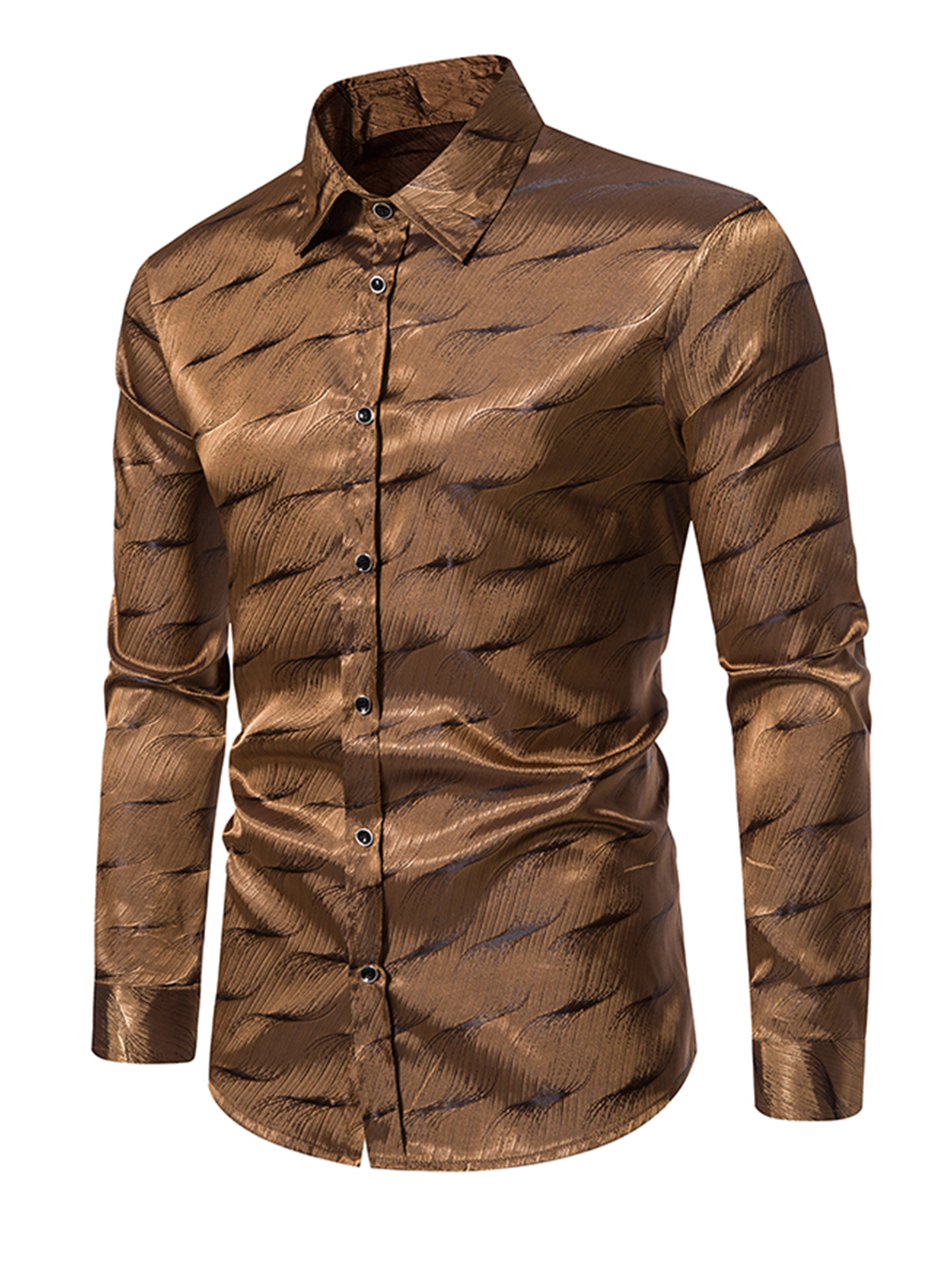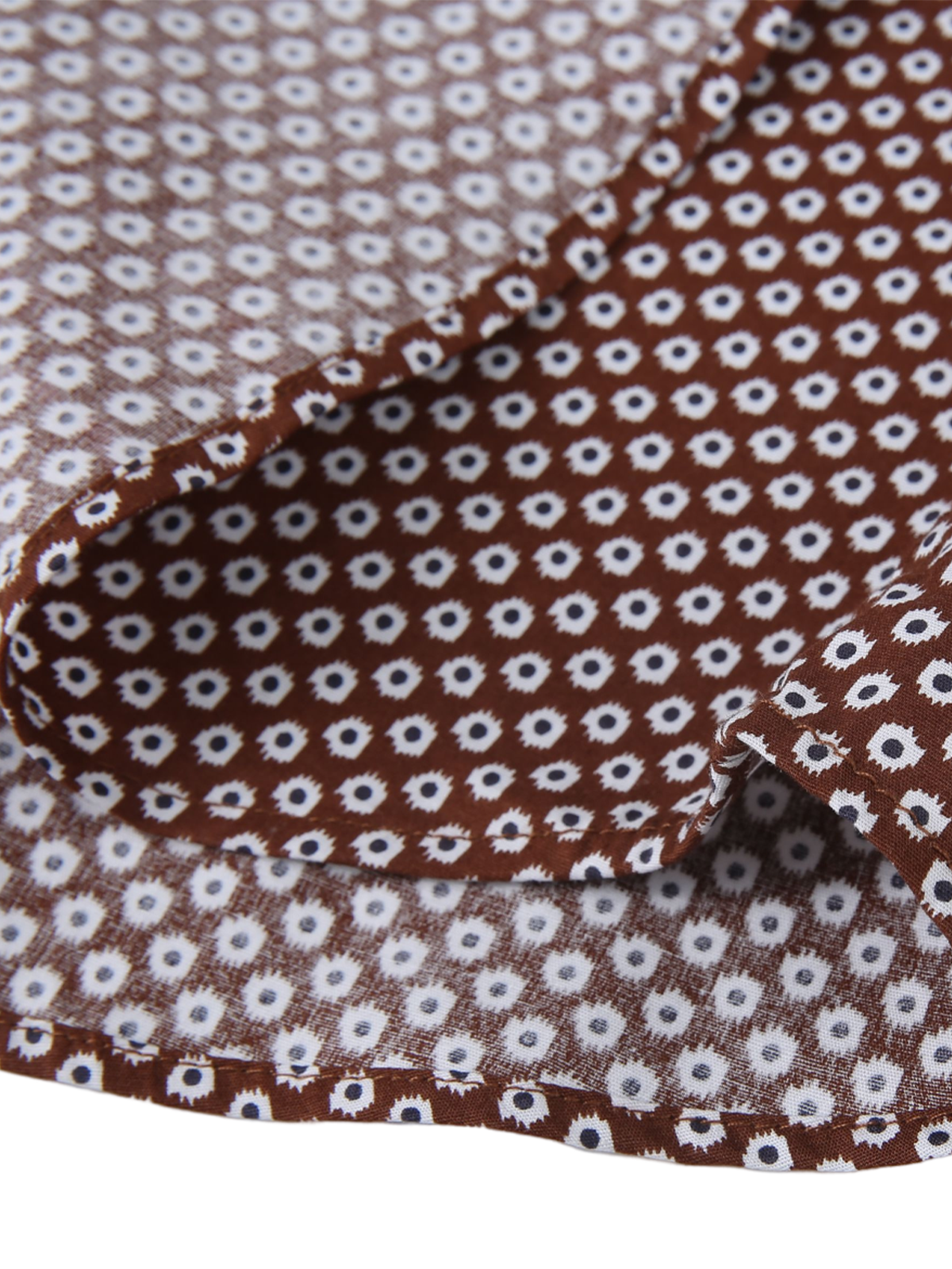 Men's Casual Print Button Up Brown Vintage Long Sleeve Dress Shirt