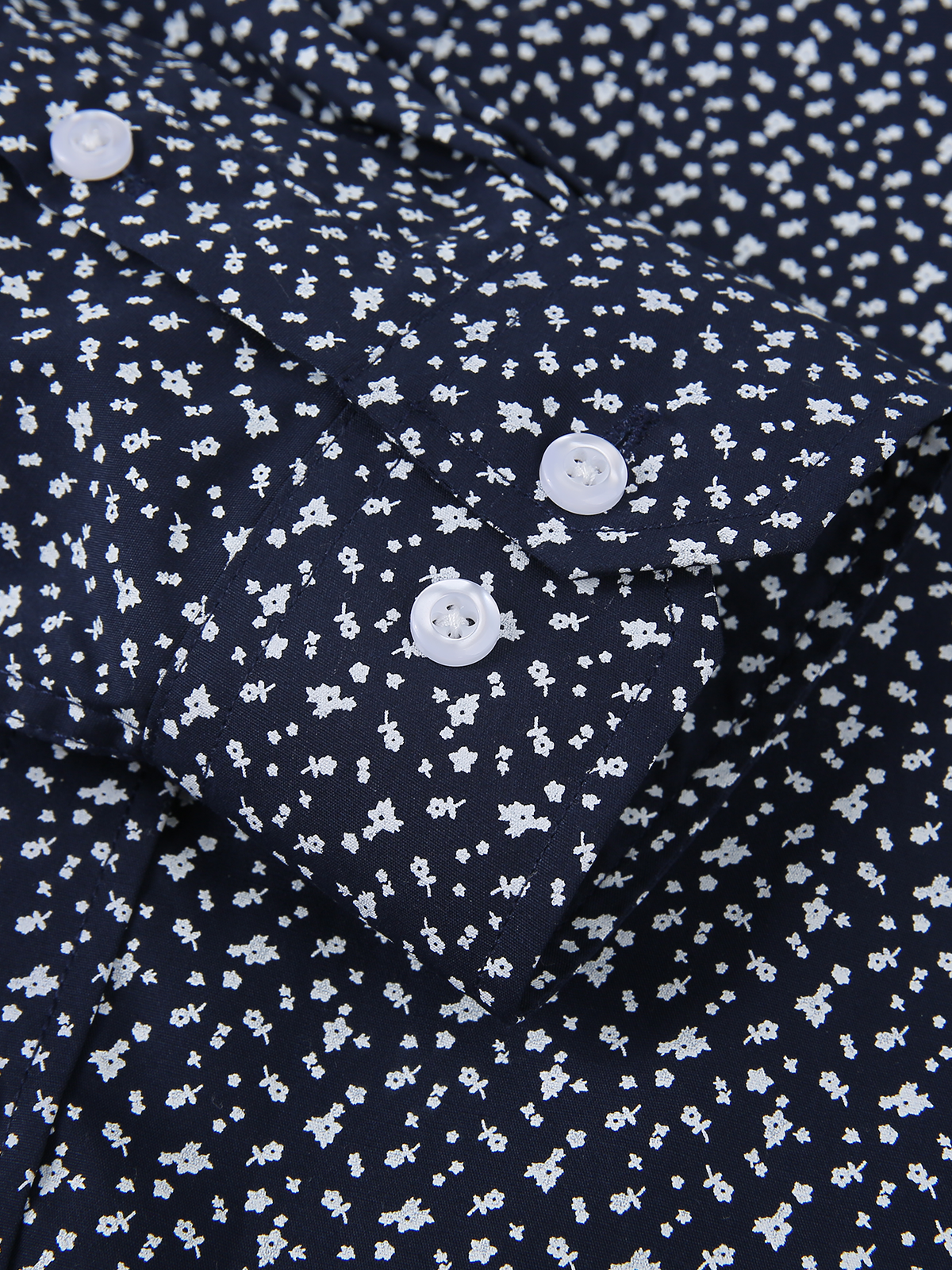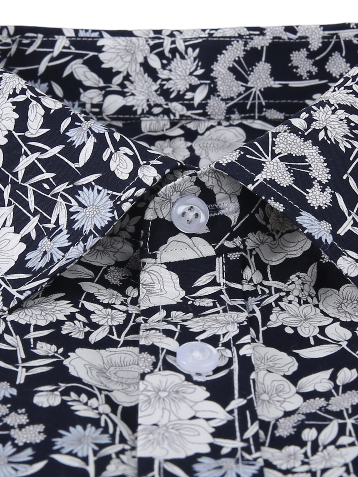 Men's Floral Print Navy Blue Button Up Long Sleeve Dress Shirt