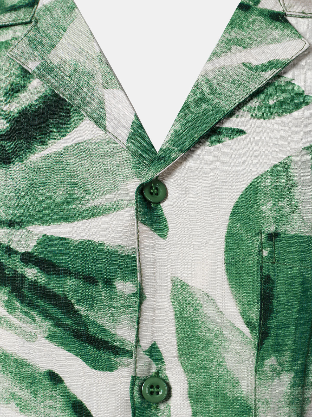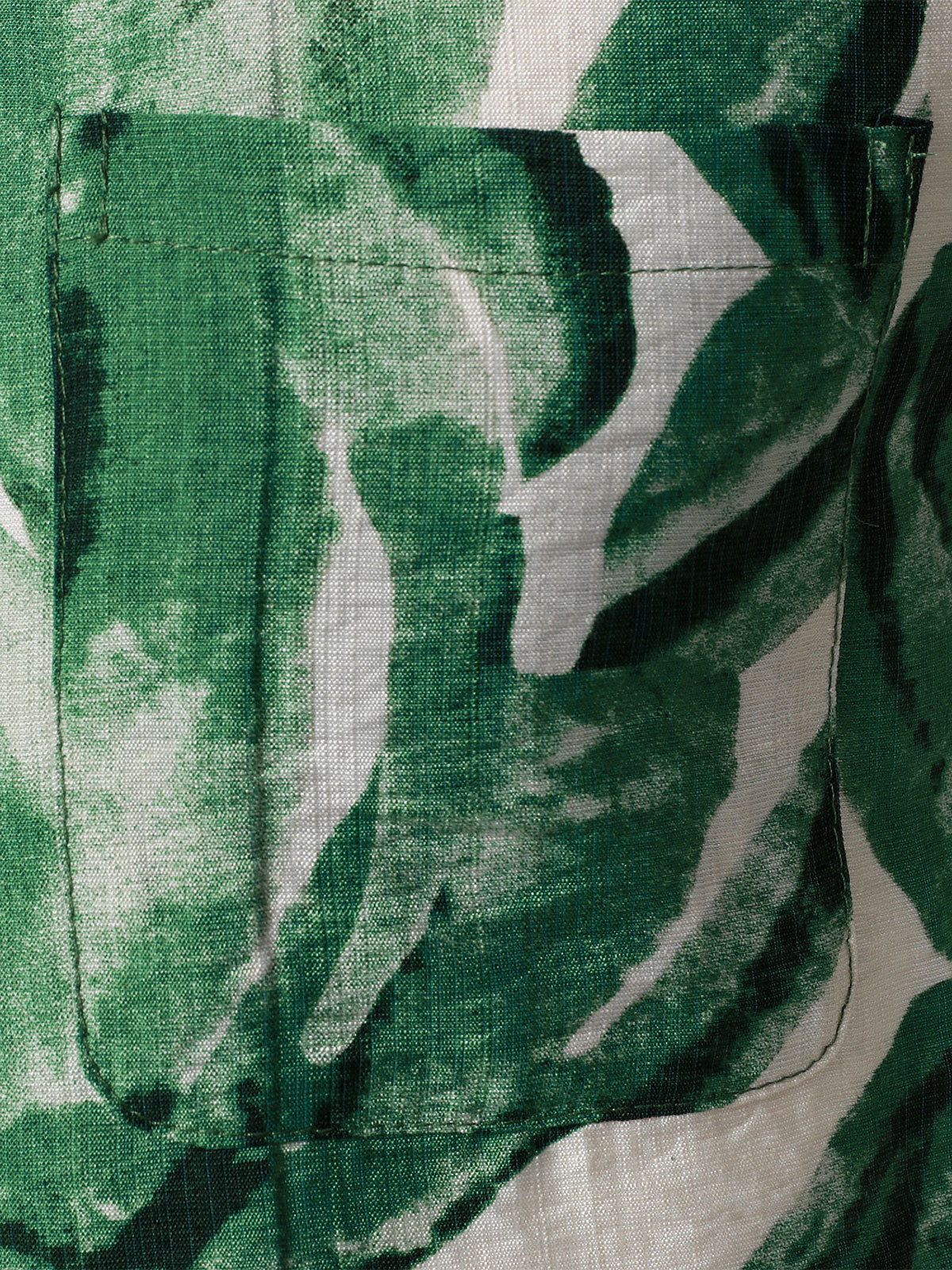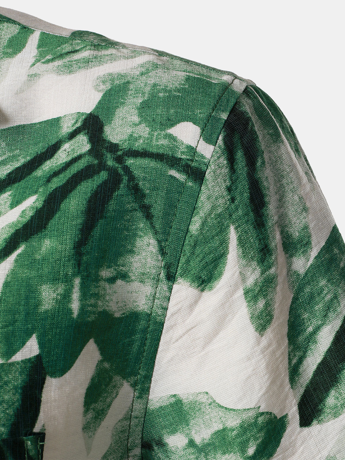 Men's Green Tropical Leaves Print Pocket Hawaiian Short Sleeve Shirt