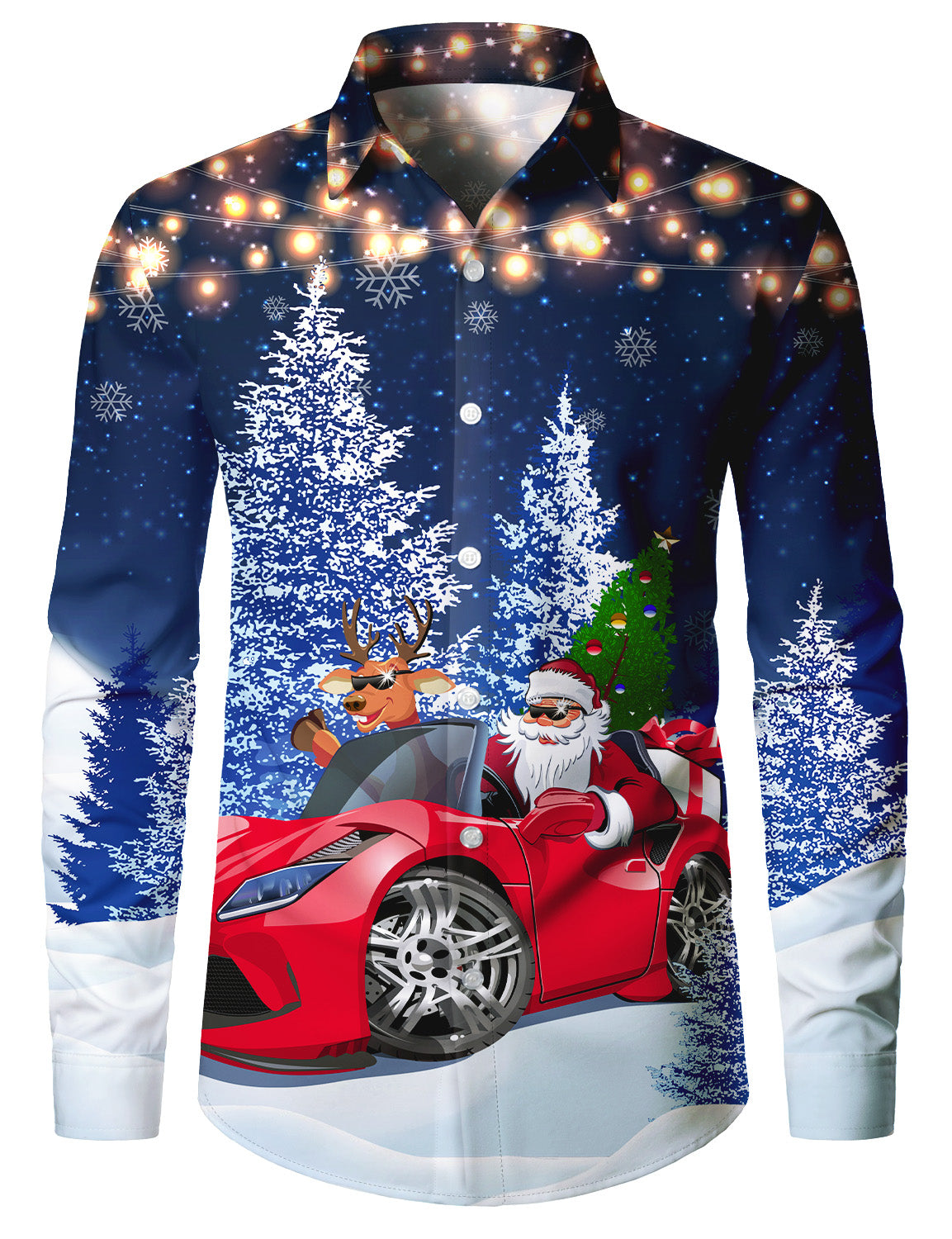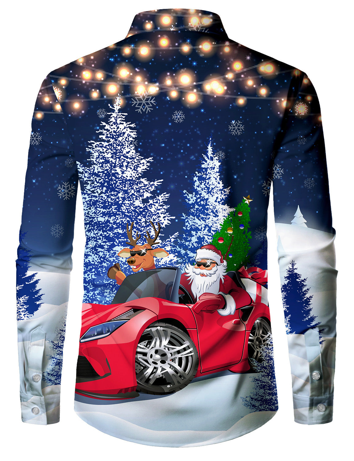 Men's Christmas Santa Elk Holiday Button Down Long Sleeve Shirt