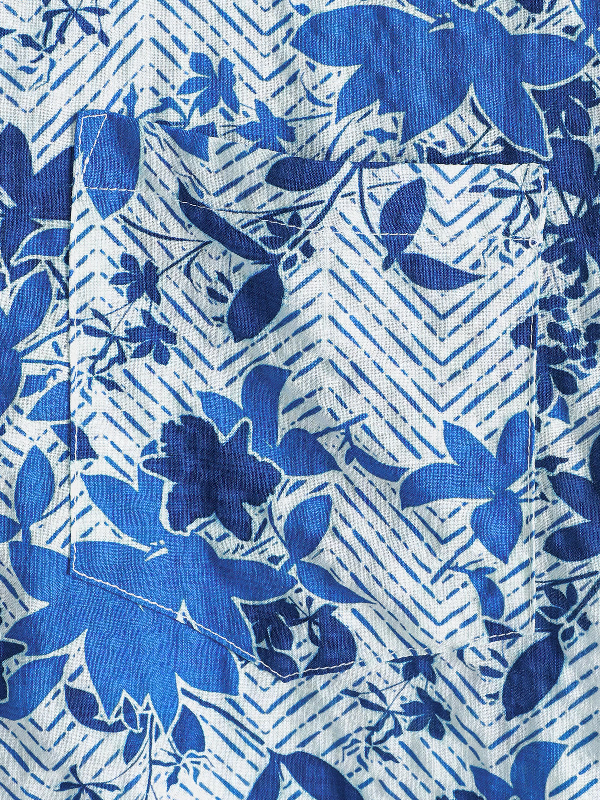 Men's Blue Floral Pocket Hawaiian Cuban Collar Short Sleeve Shirt