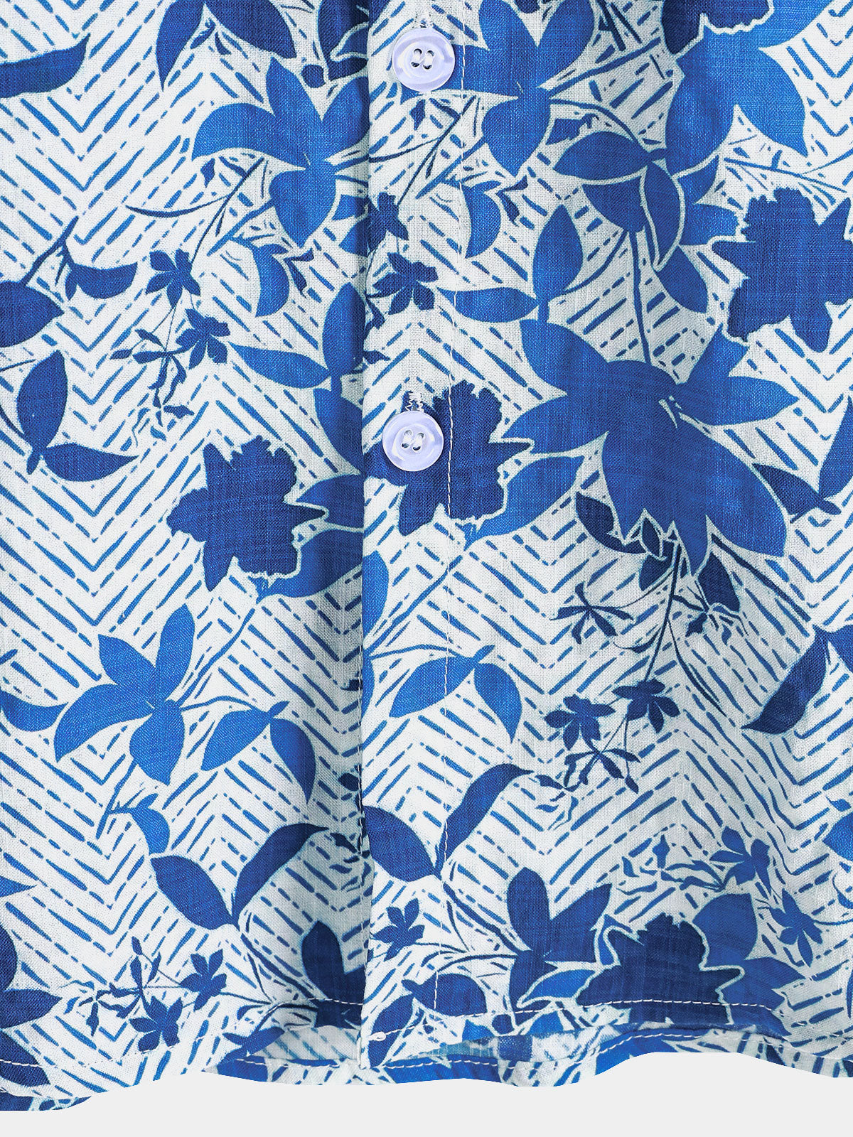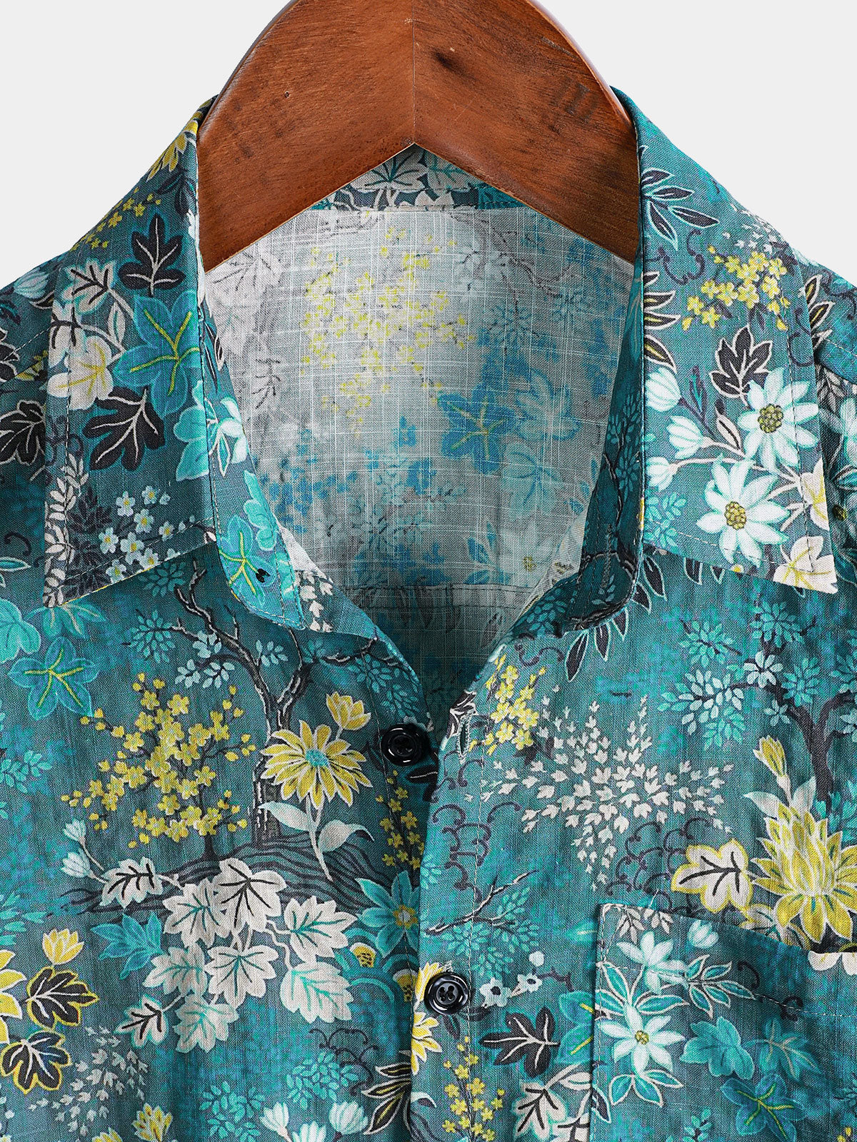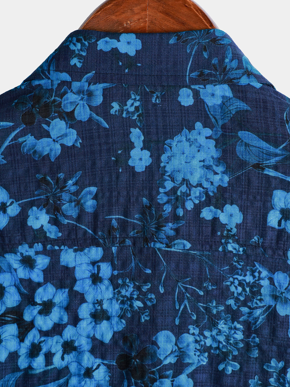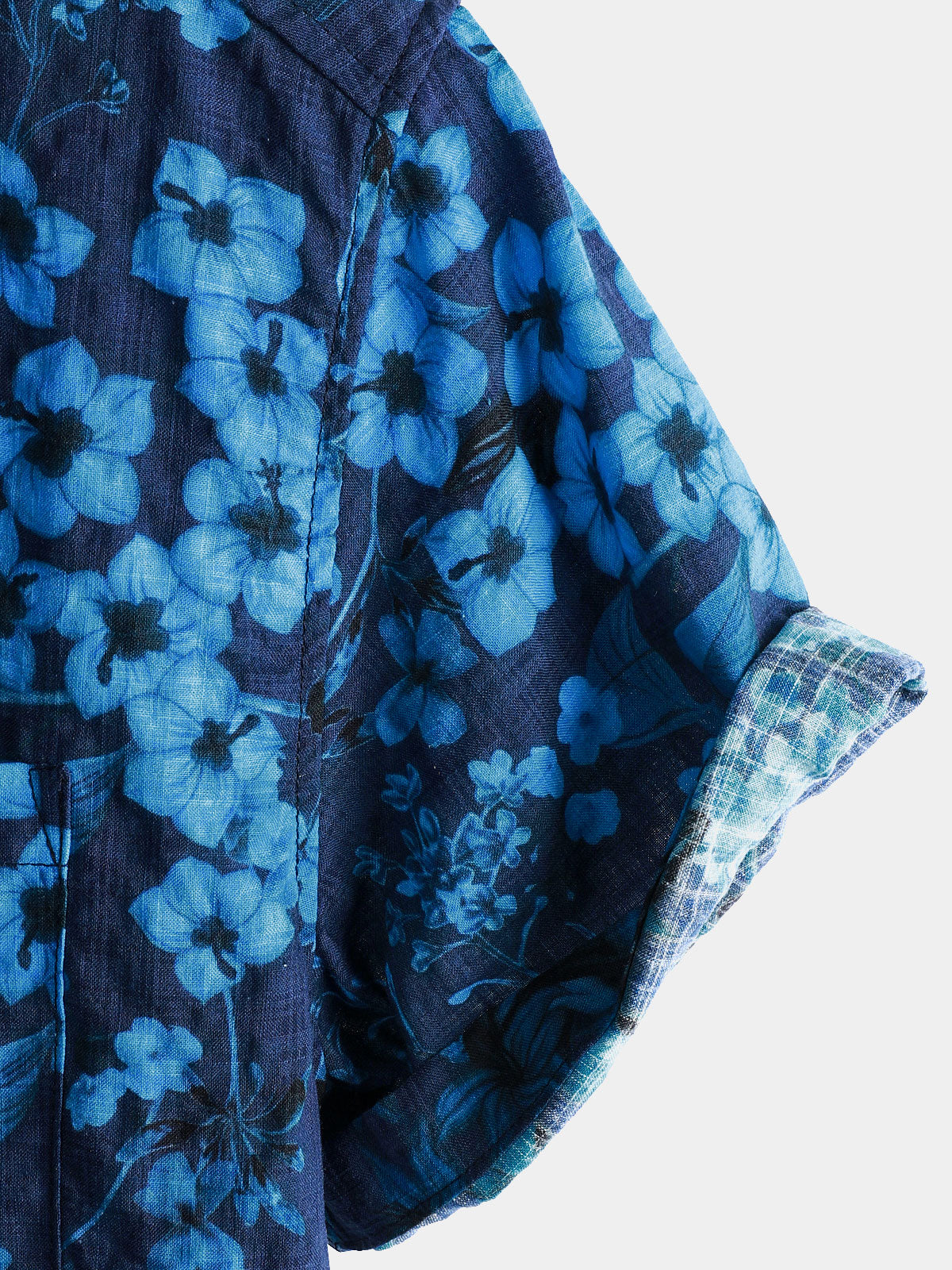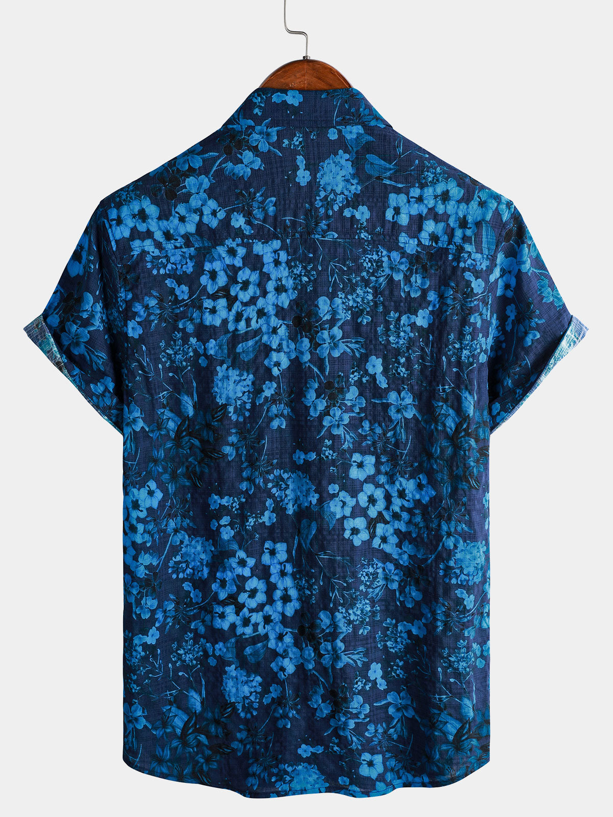Men's Hawaiian Blue Floral Print Breathable Lightweight Cotton Chest Pocket Short Sleeve Shirt