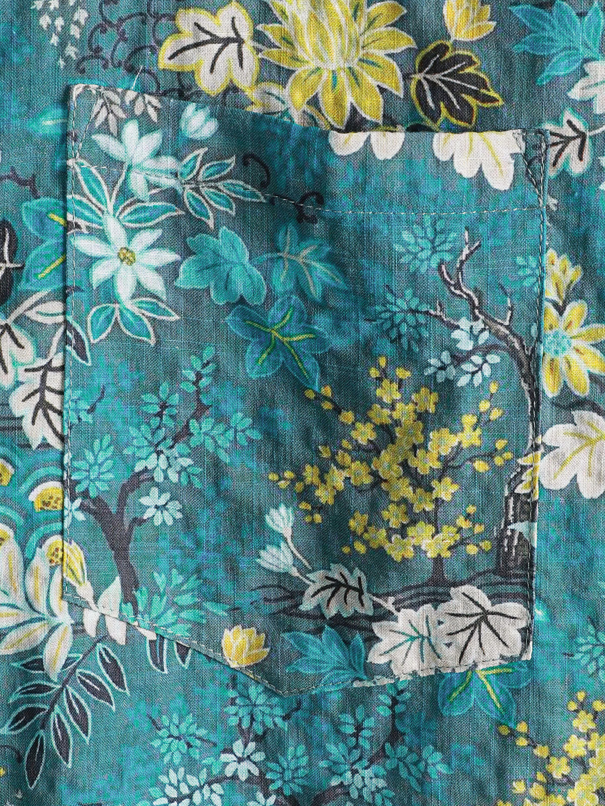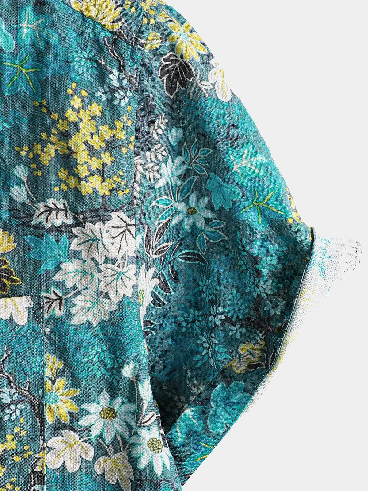 Men's Yellow Floral Pocket Resort Short Sleeve Shirt