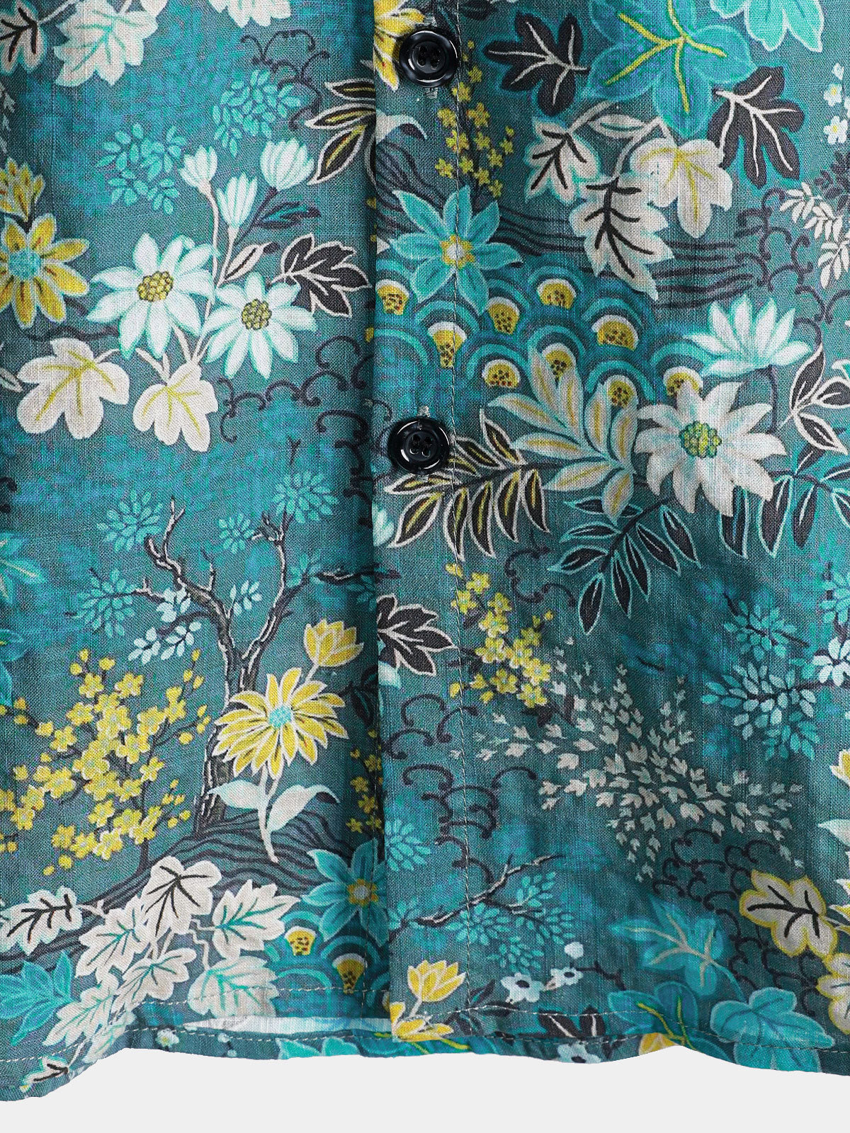 Men's Retro Abstract Botanical Button Up Short Sleeve Shirt