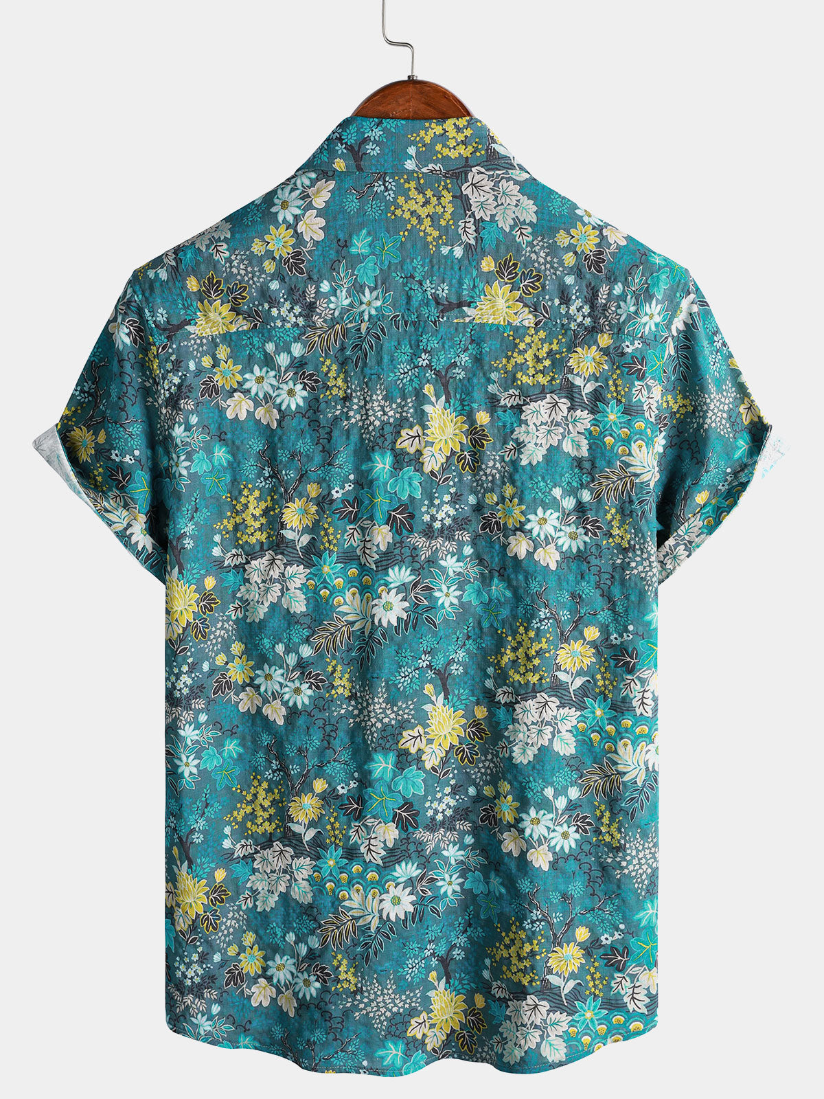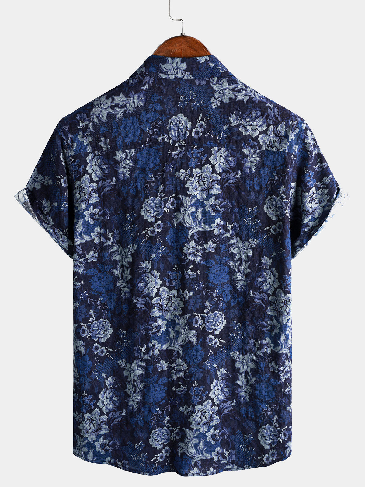 Men's Vintage Blue Floral Print Short Sleeve Shirt