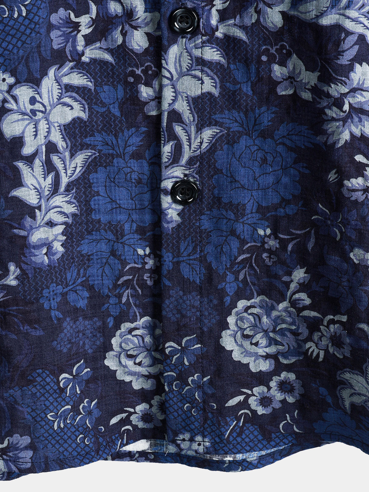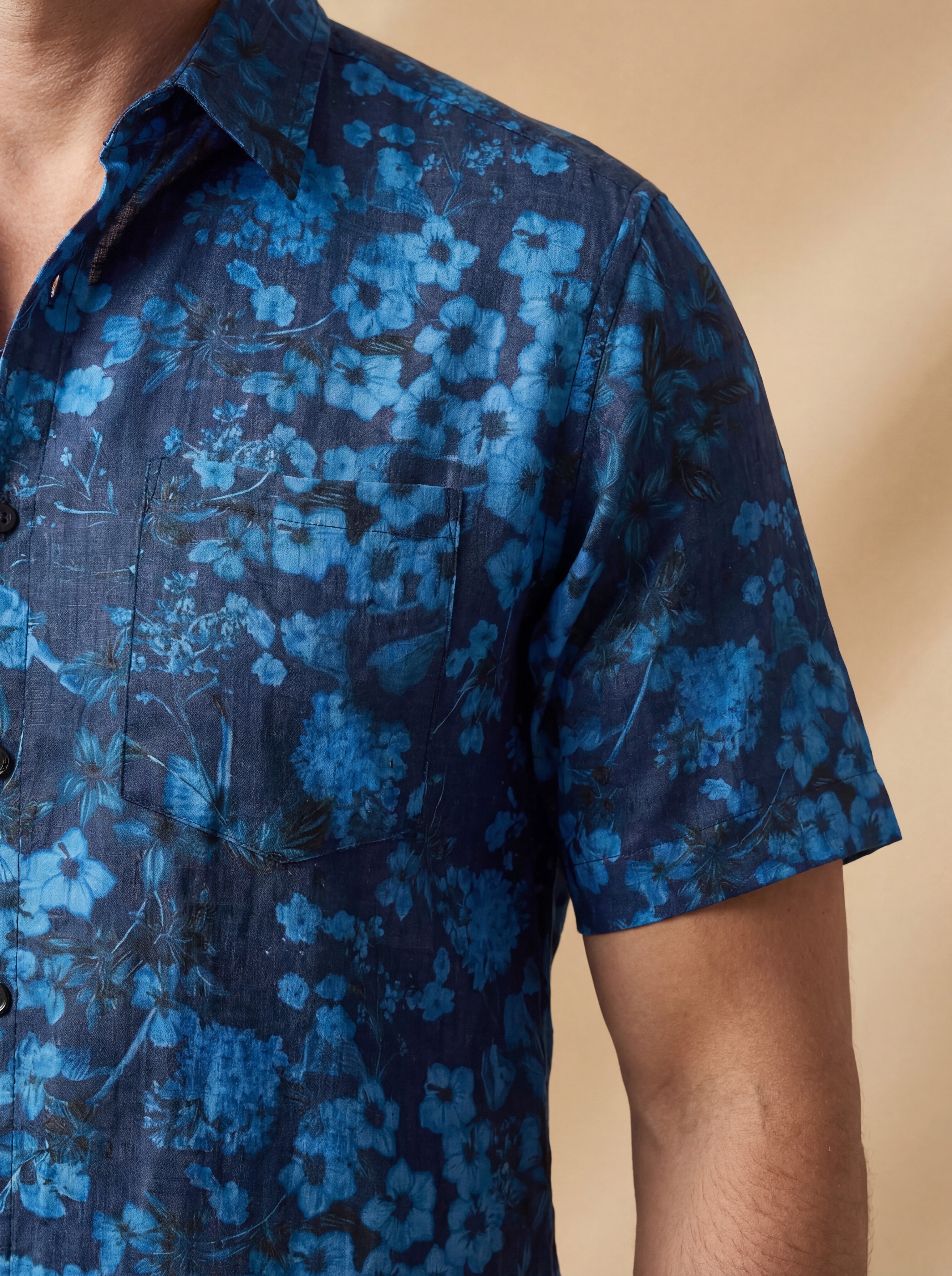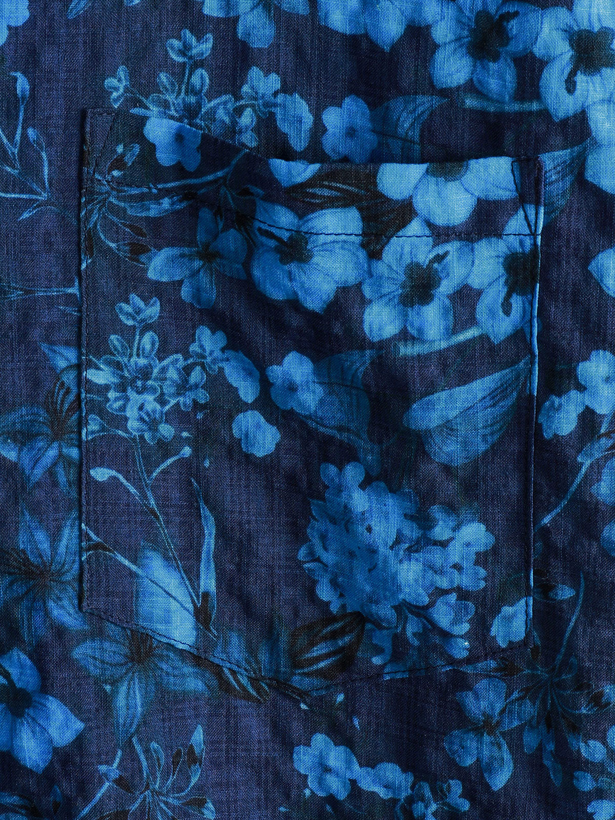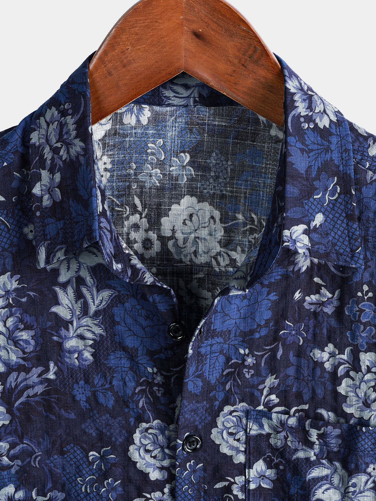 Men's Hawaiian Vintage Dark Blue Floral Print Chest Pocket Short Sleeve Shirt