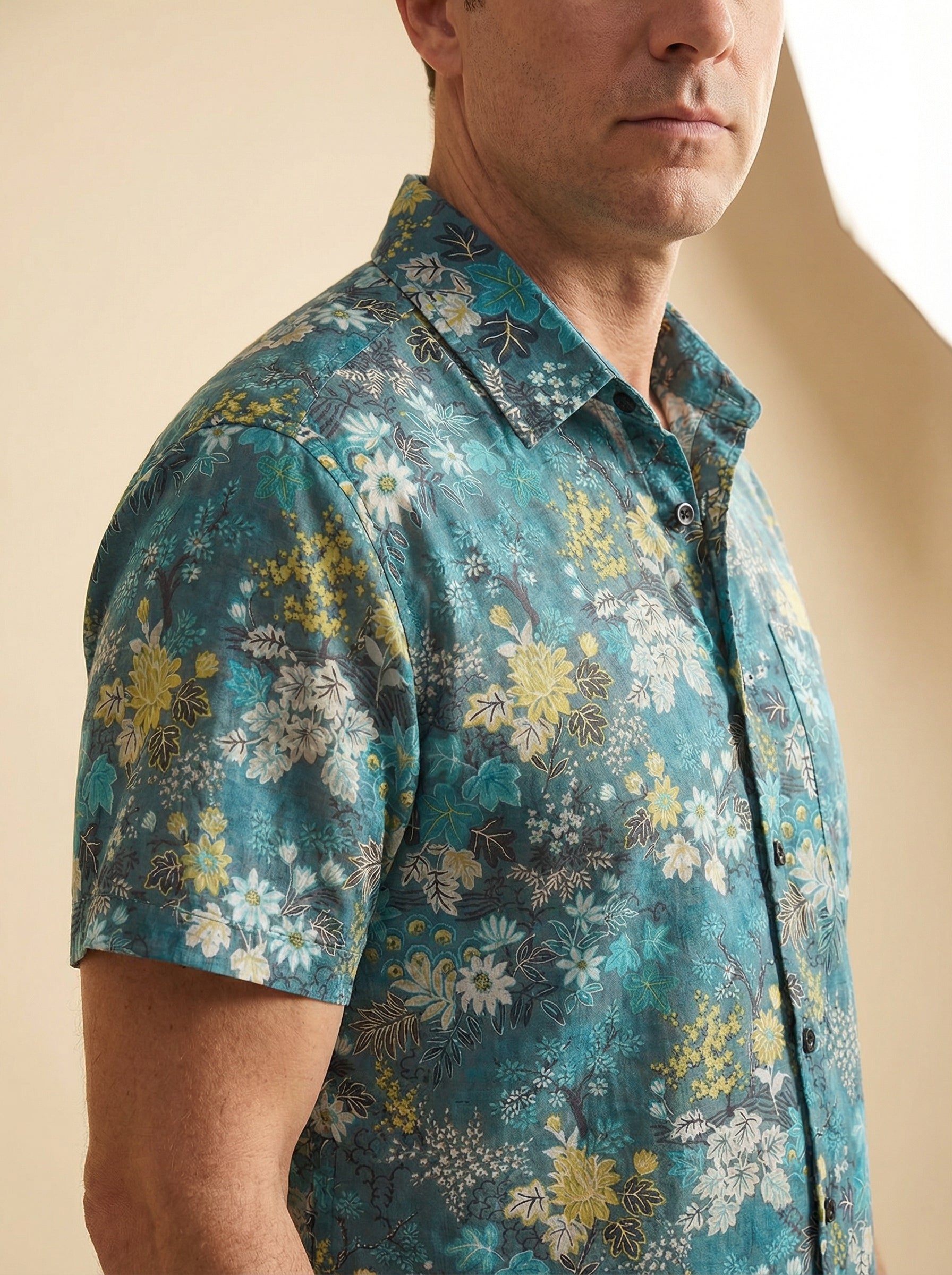 Men's Floral Print Casual Short Sleeve Shirt