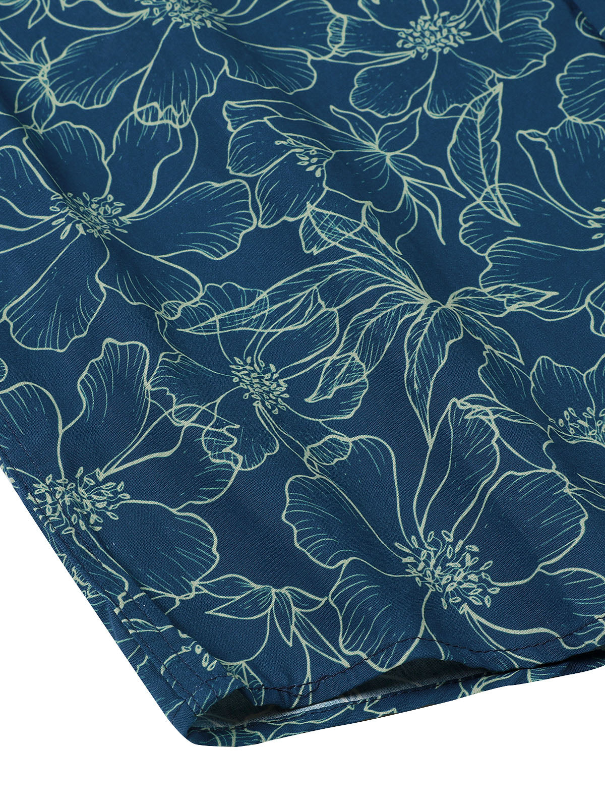 Men's Cotton Floral Blue Long Sleeve Shirt