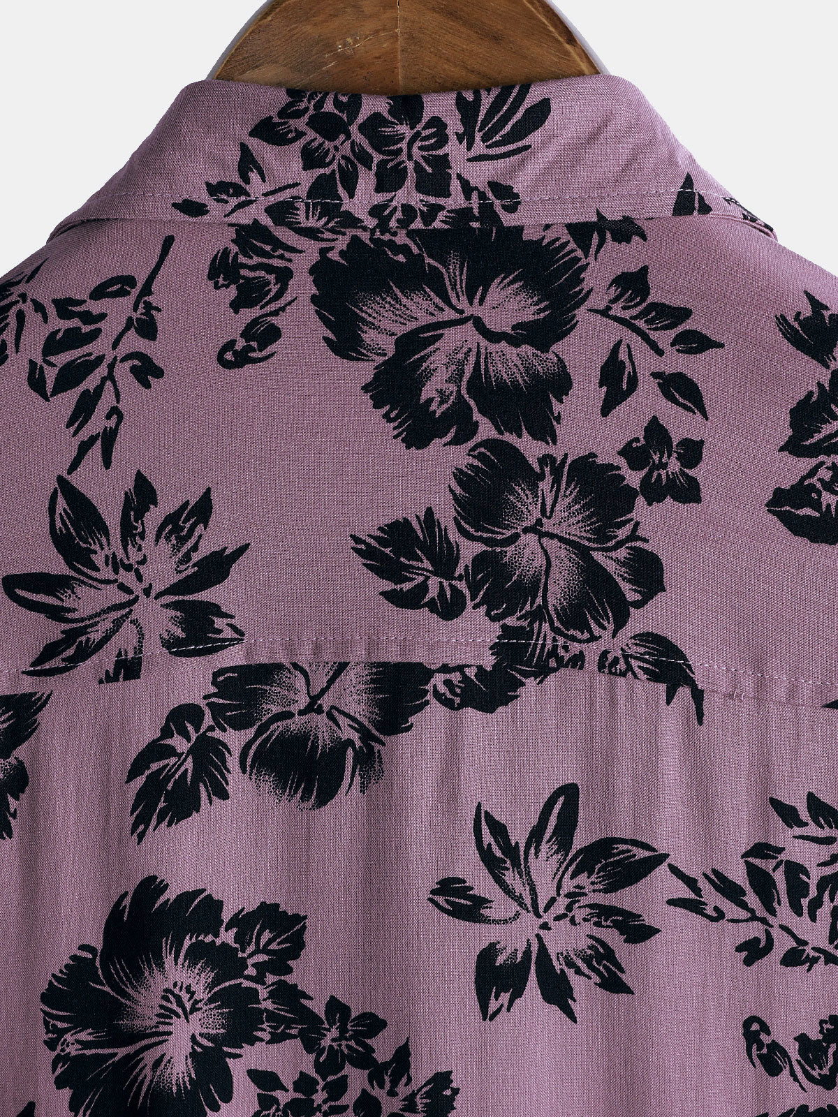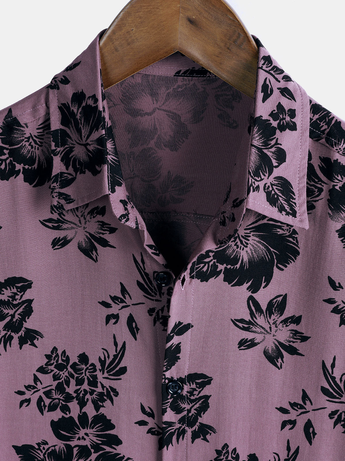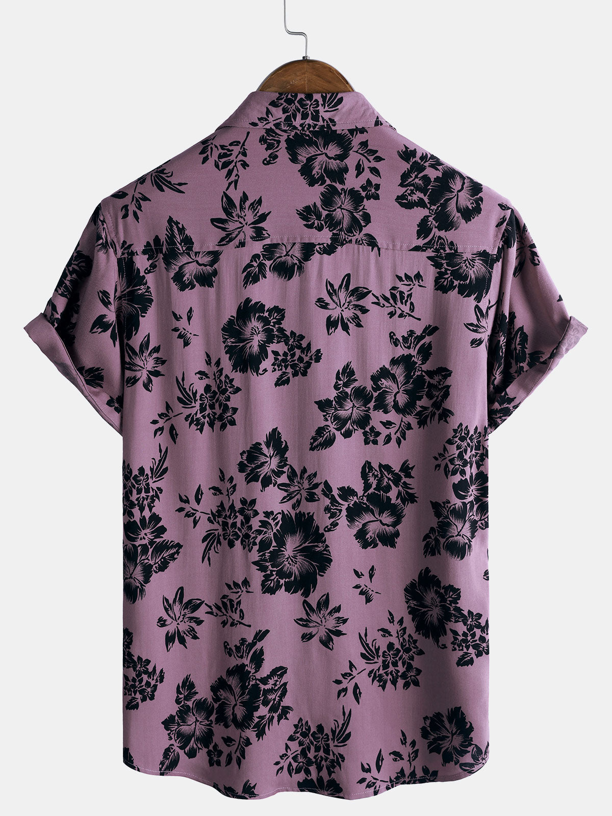 Men's Rayon Tropical Floral Print Vacation Short Sleeve Shirt