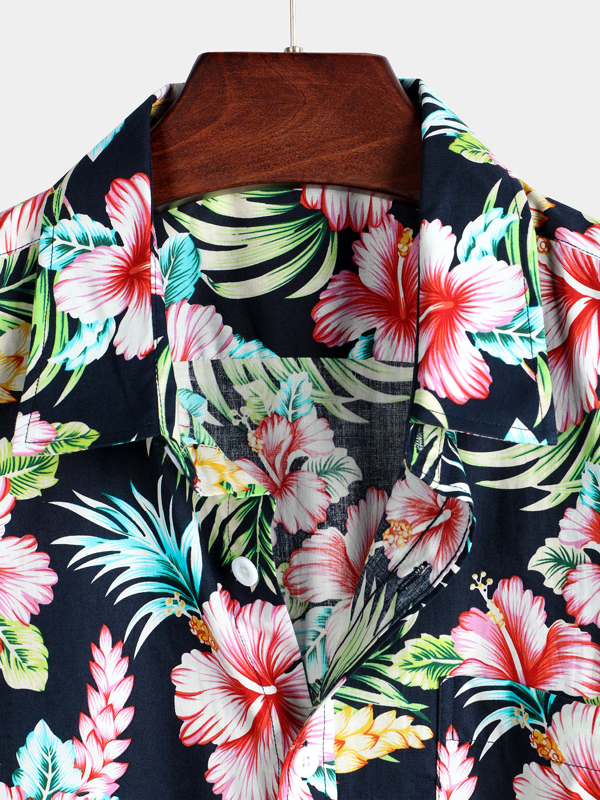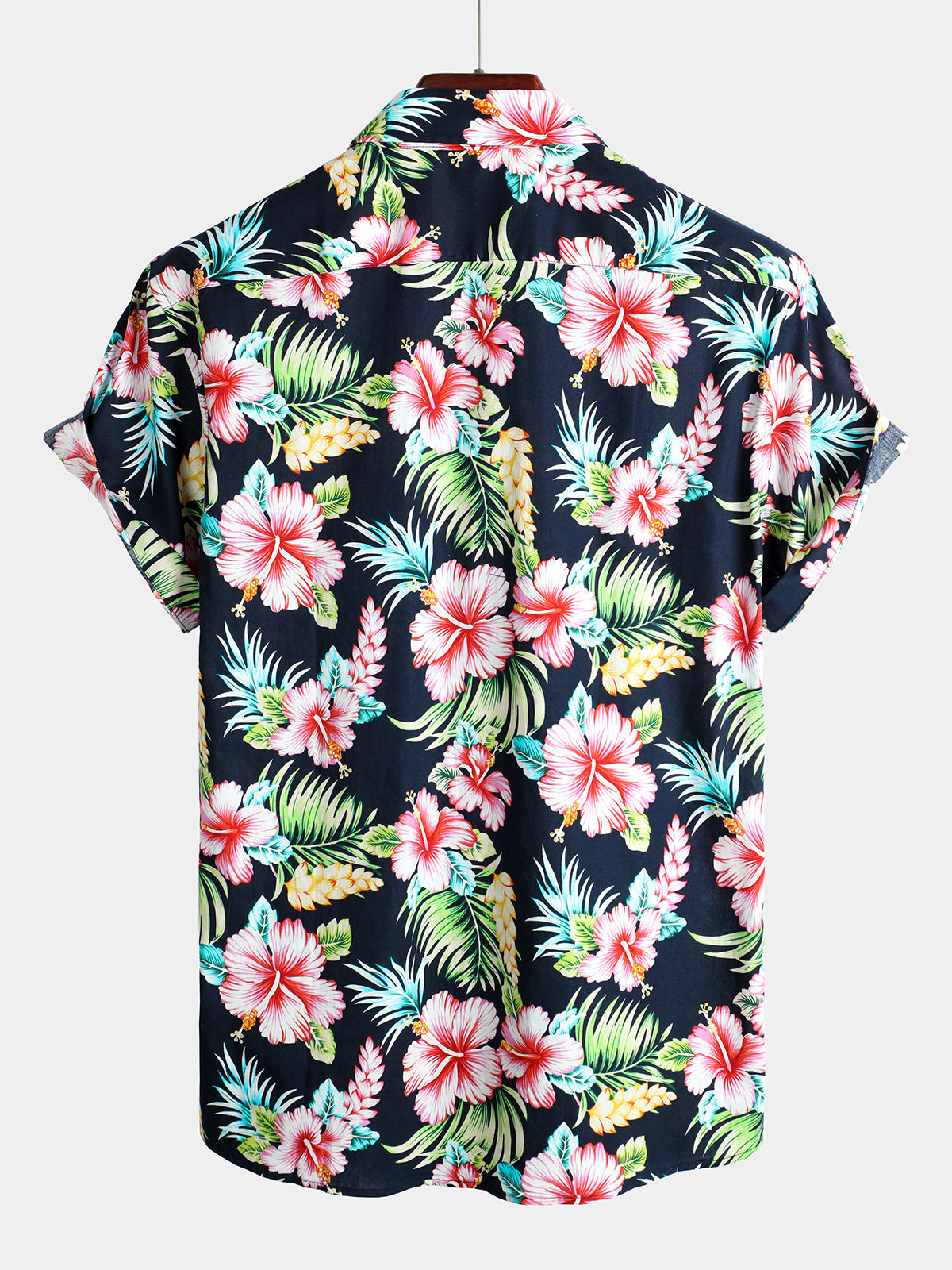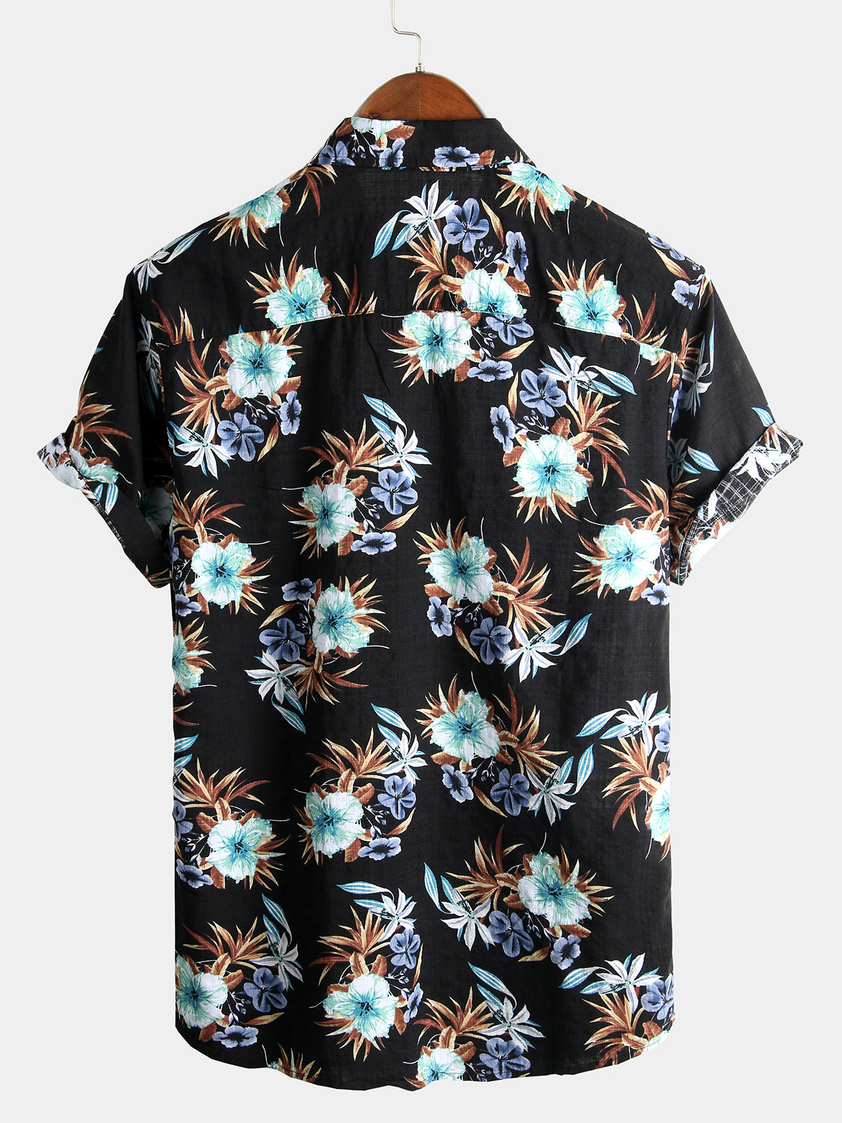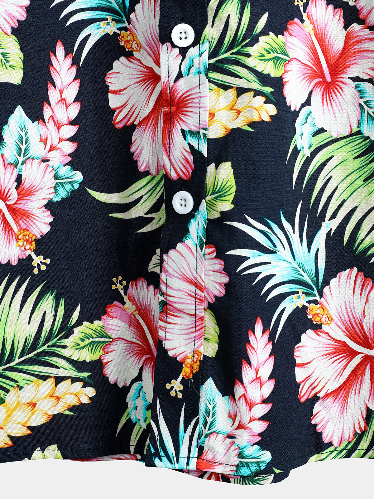 Men's Flower Print Cotton Hawaiian Short Sleeve Shirt