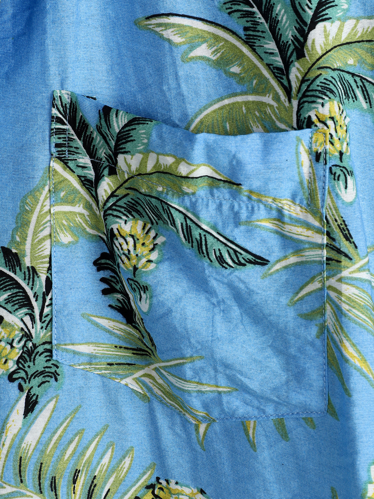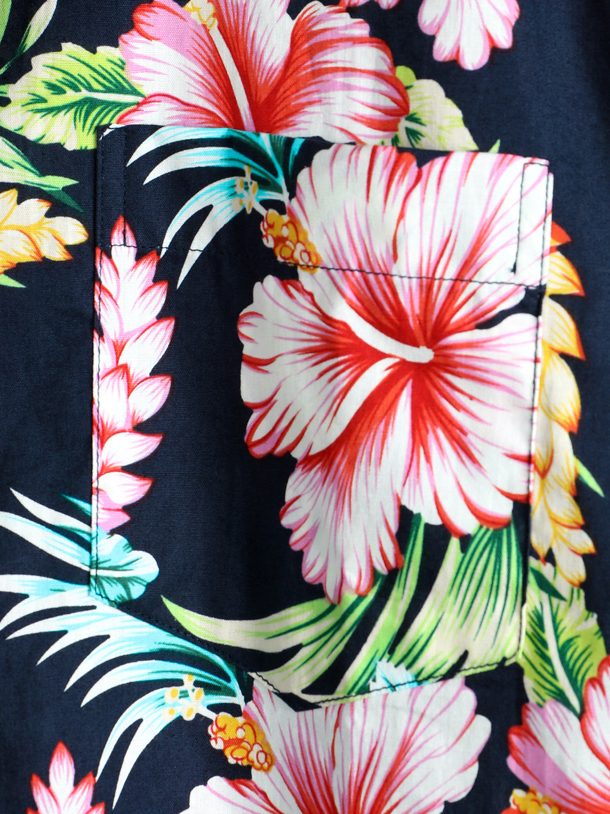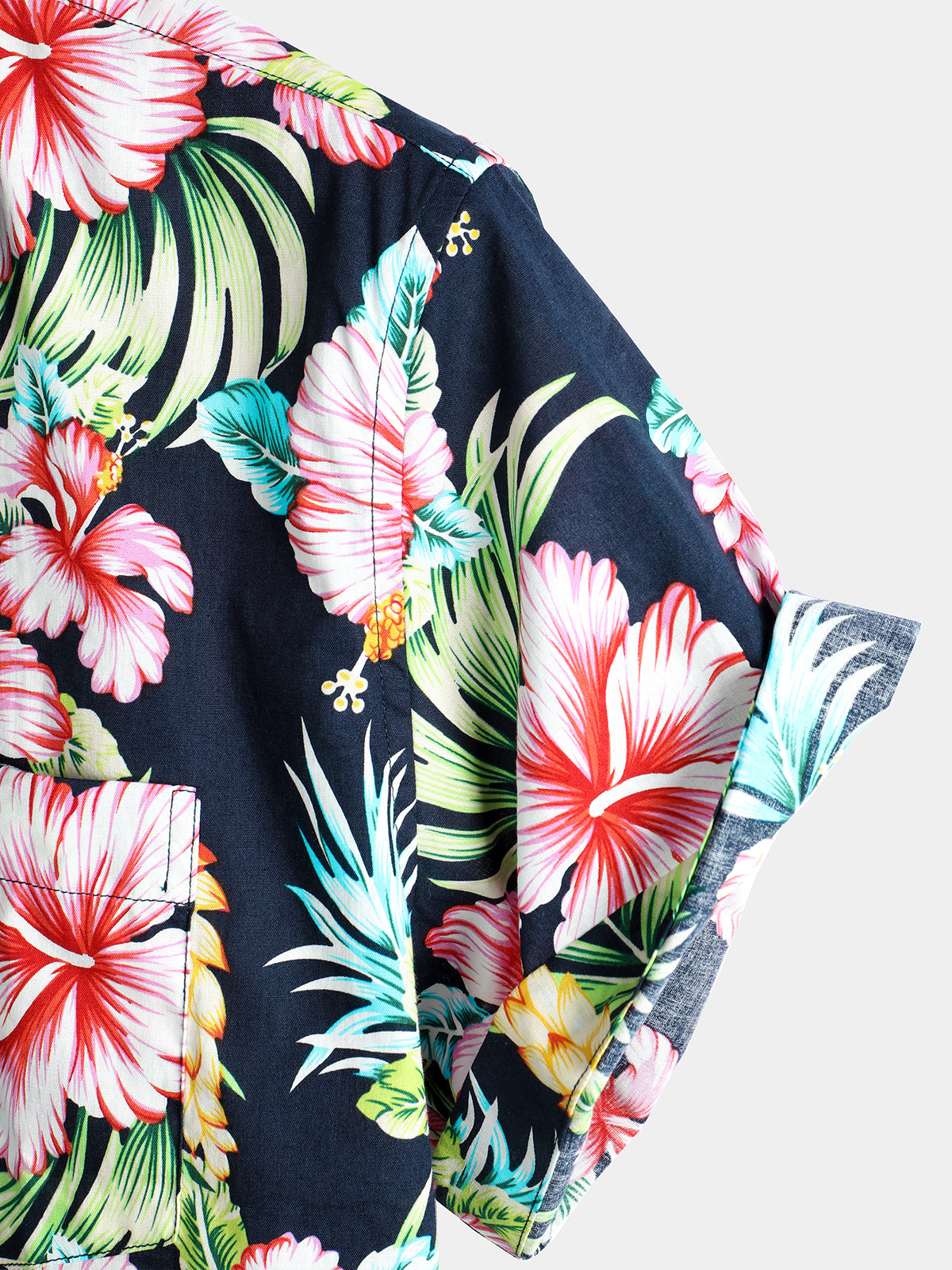 Men's Dark Blue Floral Holiday Short Sleeve Cotton Pocket Shirt