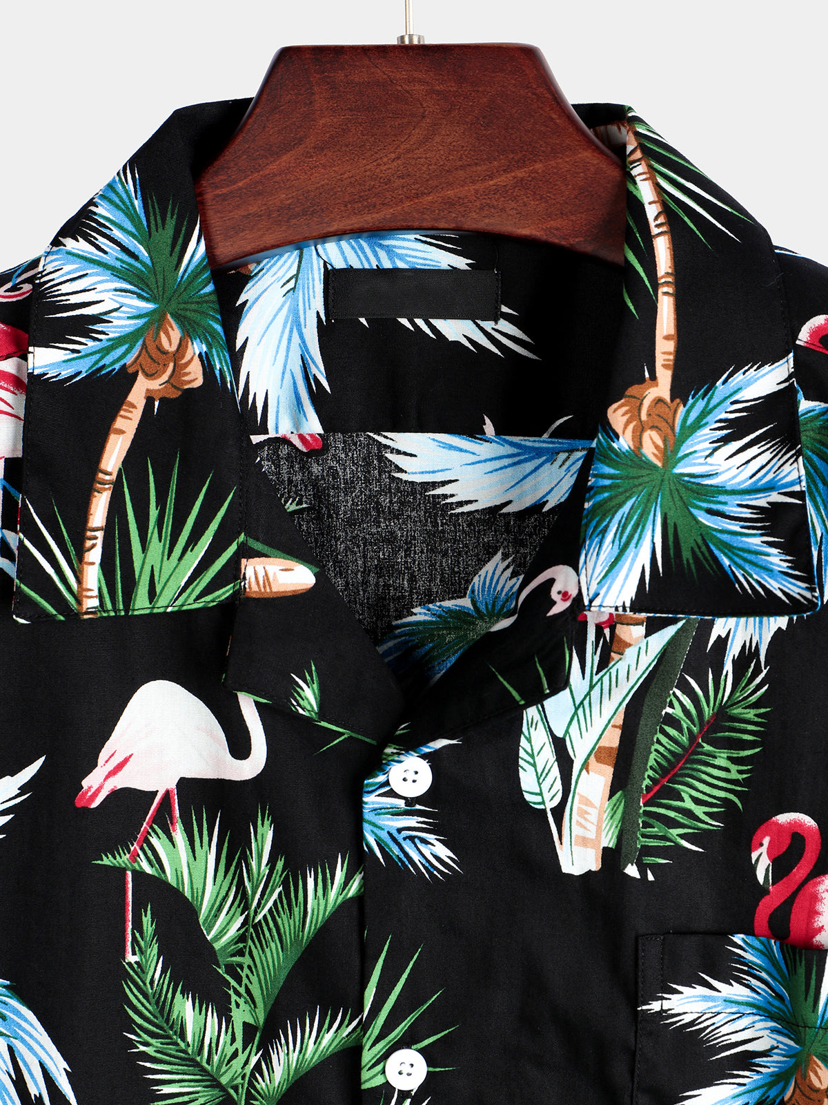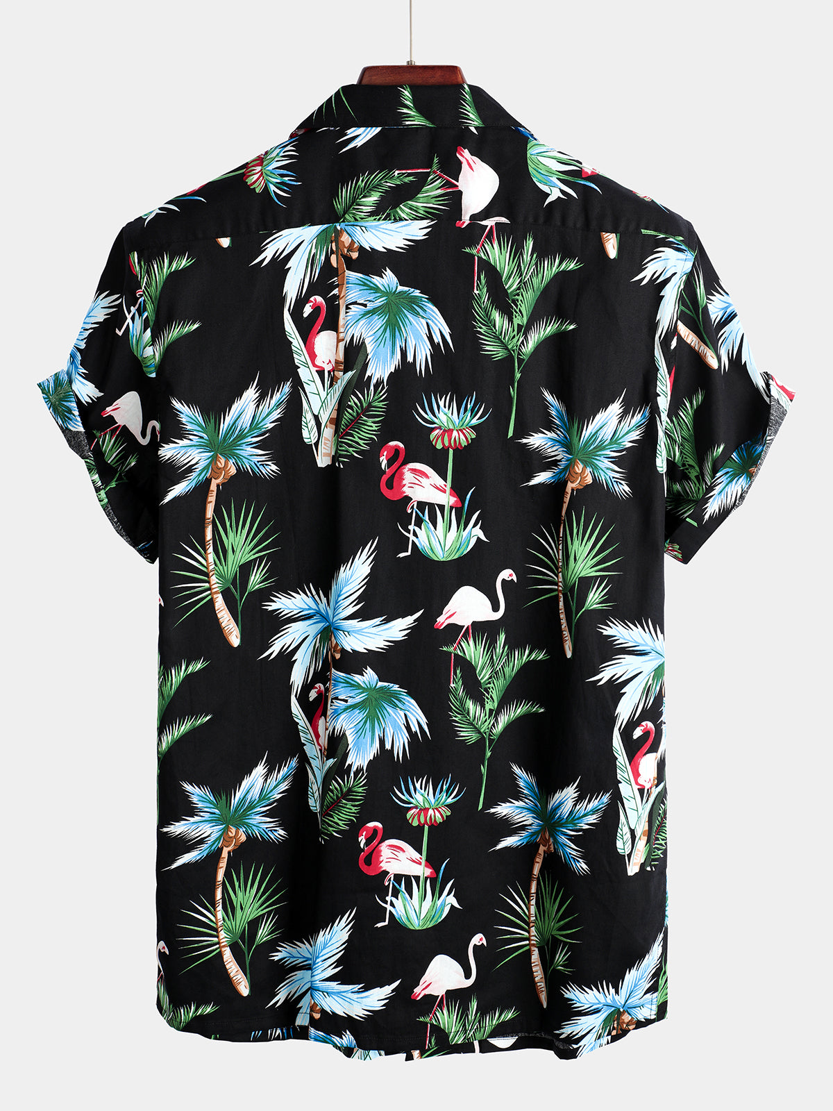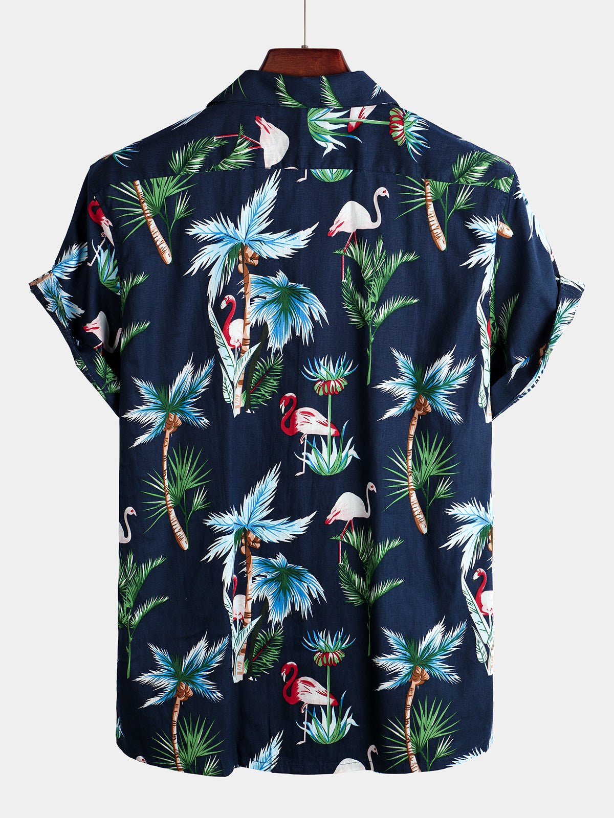 Men's Flamingo Print Cotton Hawaiian Short Sleeve Shirt