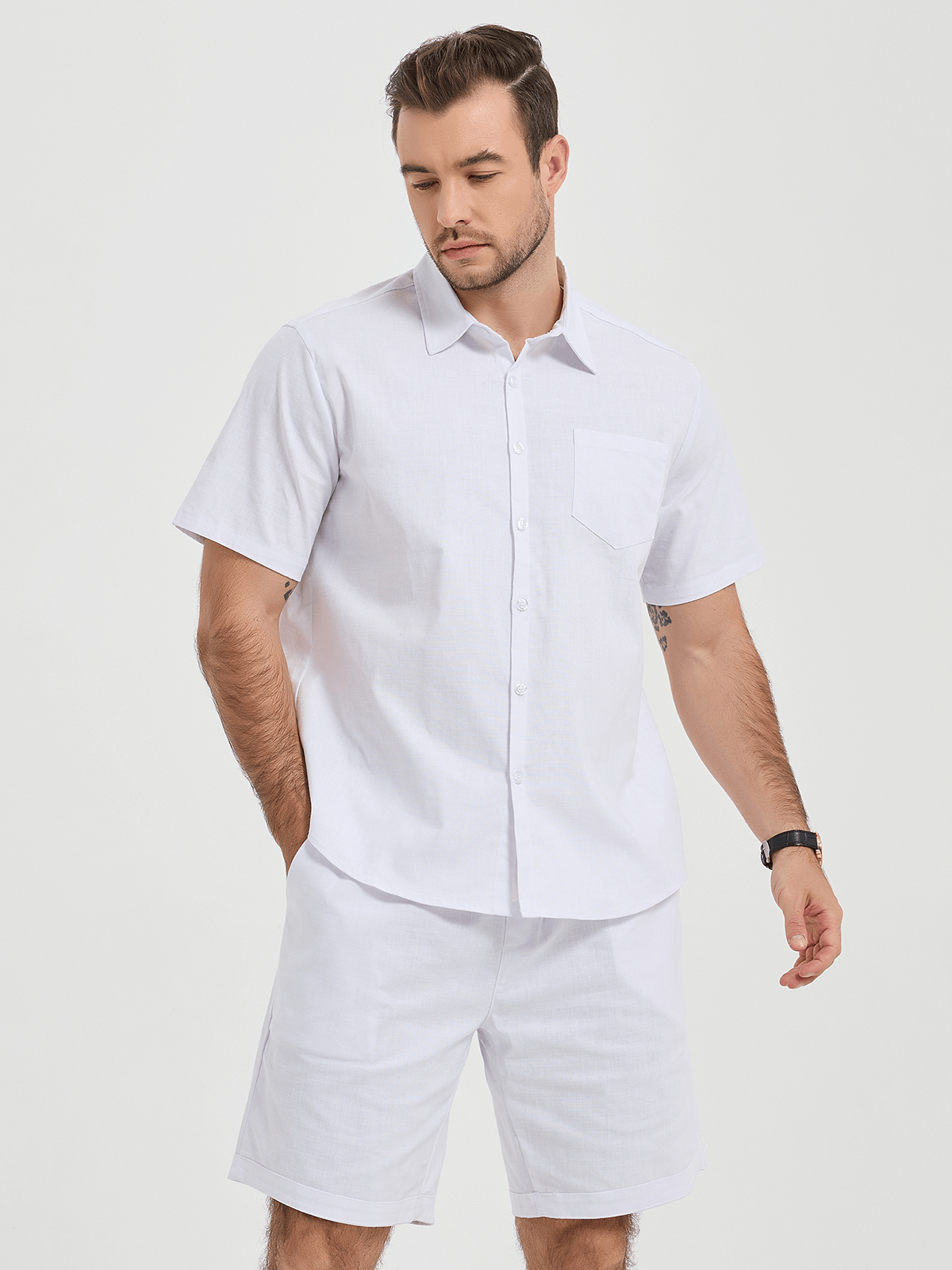 Men's Cotton Matching Pocket Shirt & Shorts Set