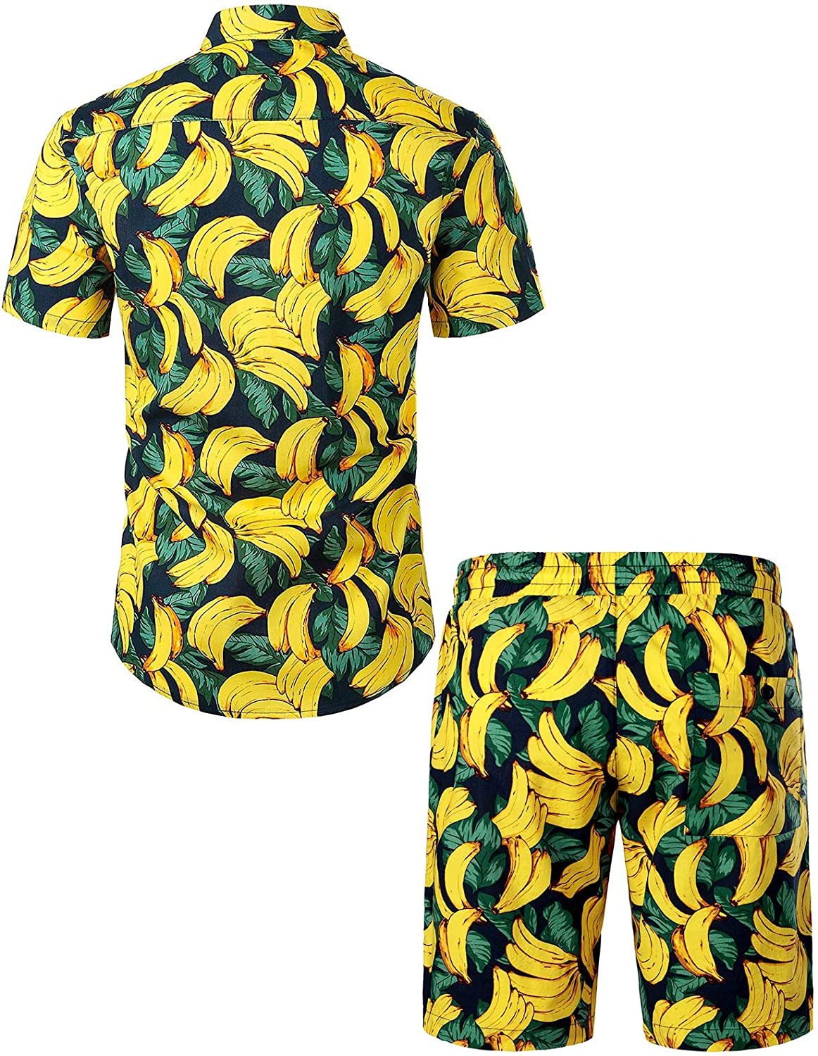 Men's Banana Print Cotton Hawaiian Shirt & Shorts Set