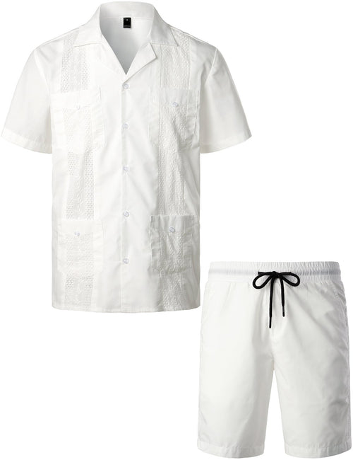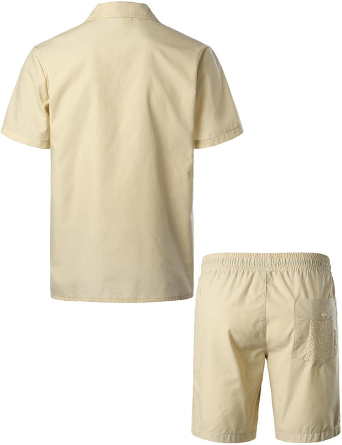 Men's Vintage Boho Short Sleeve Matching Shirt and Shorts Set