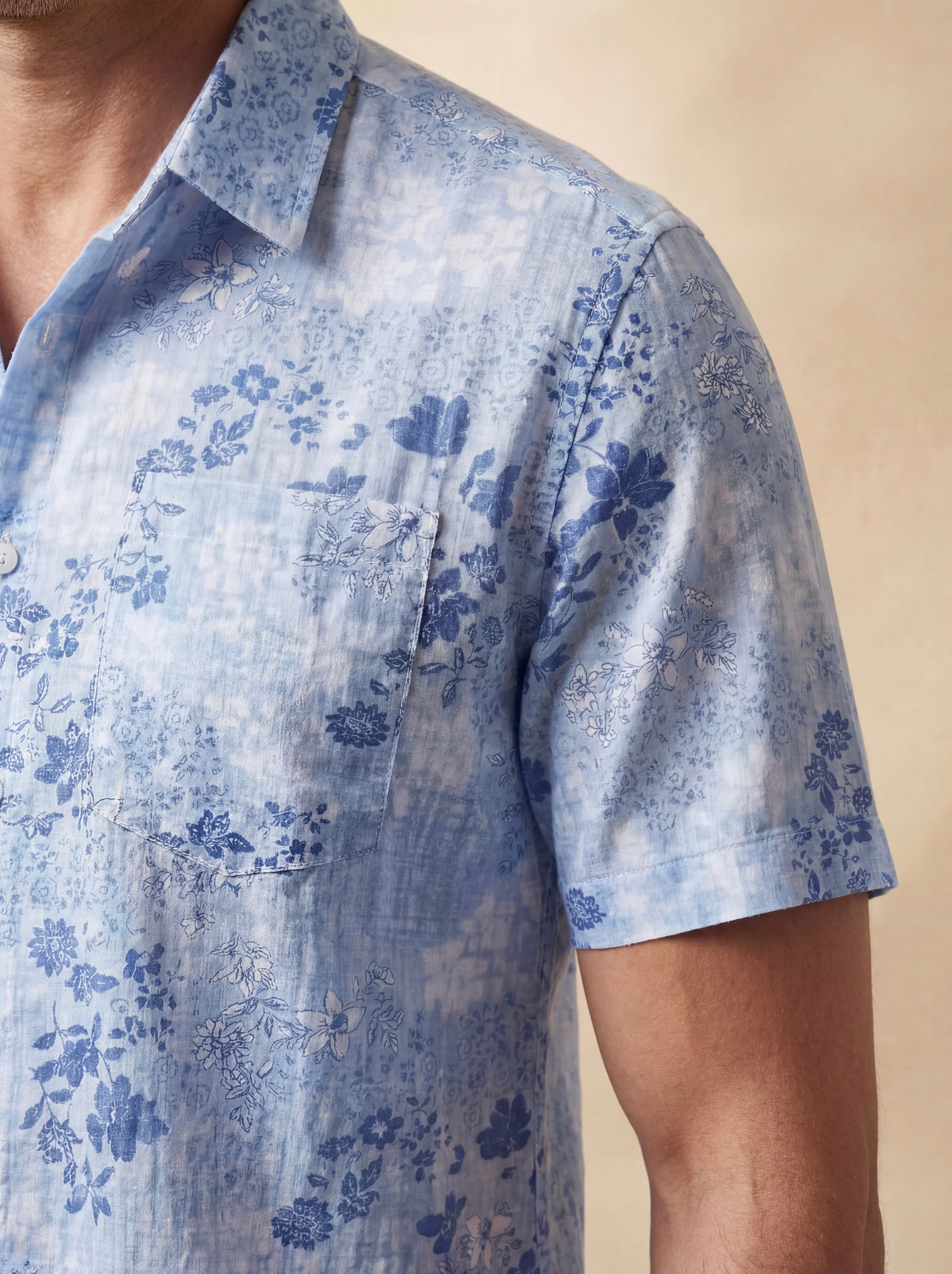 Men's Blue Floral Print Retro Short Sleeve Shirt