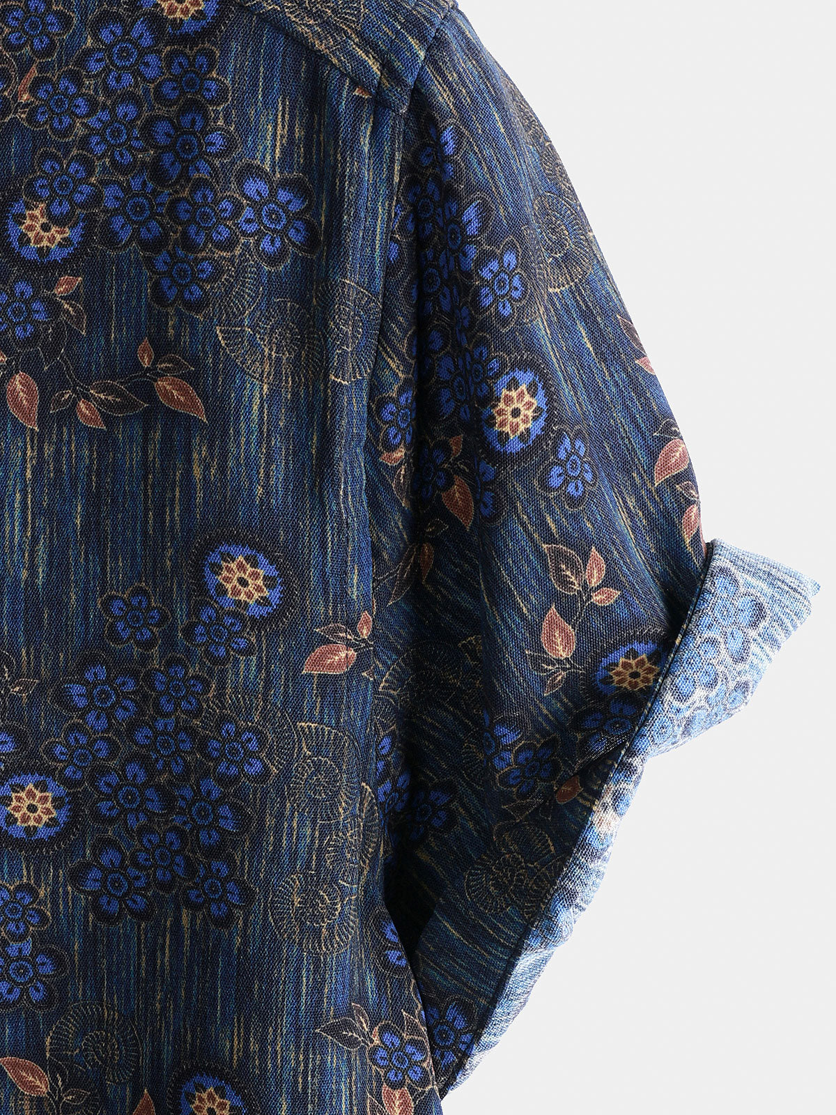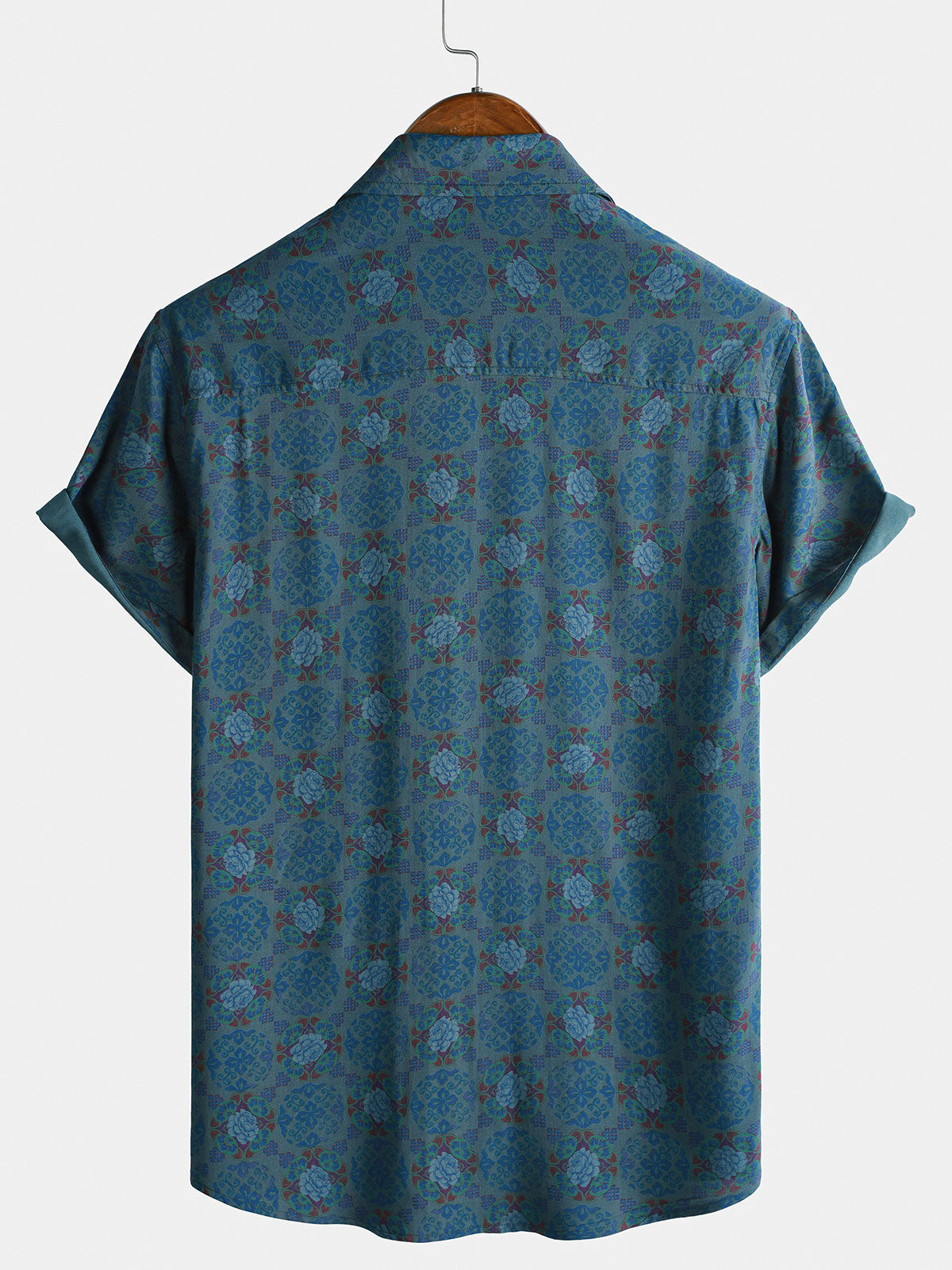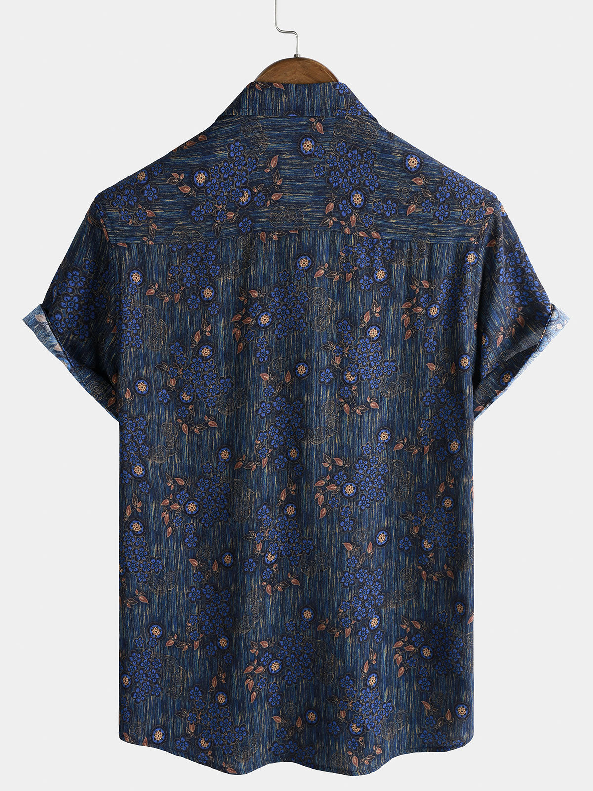 Men's Vintage Blue Floral Print Short Sleeve Shirt