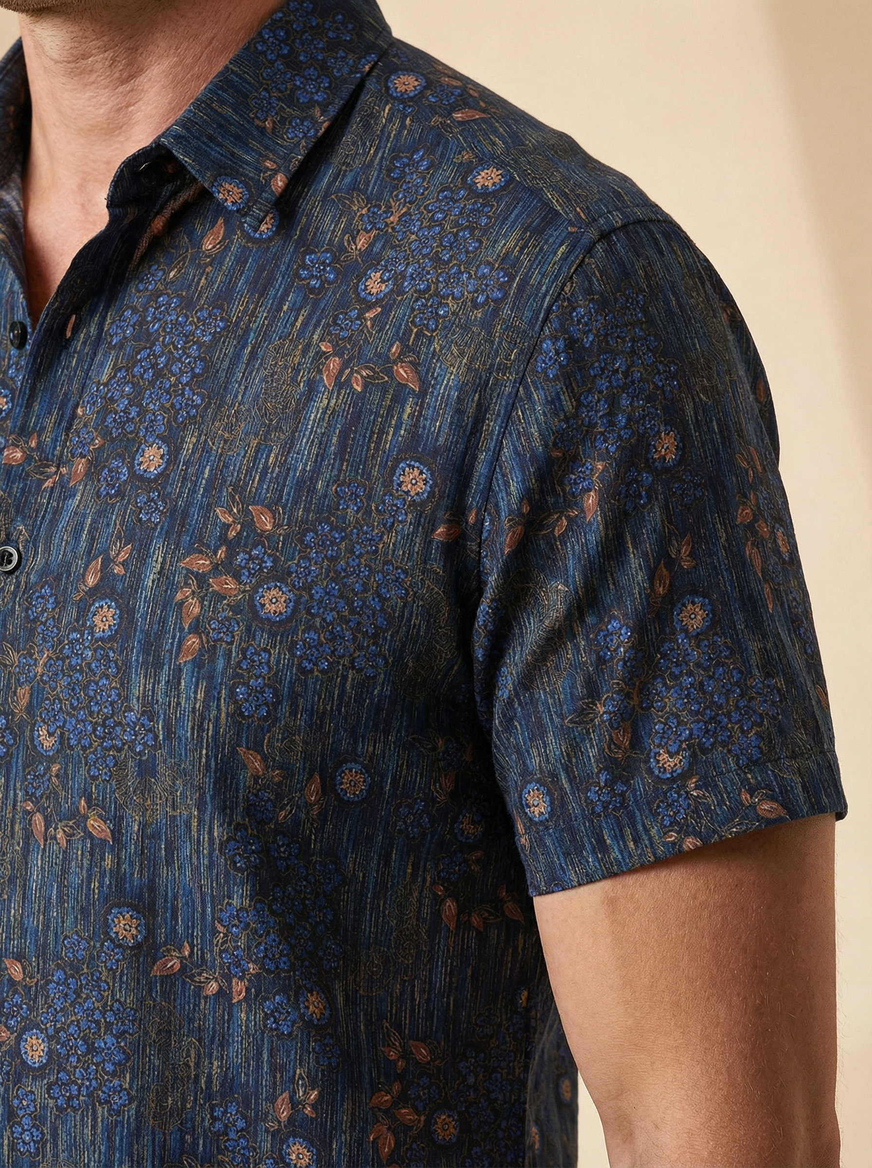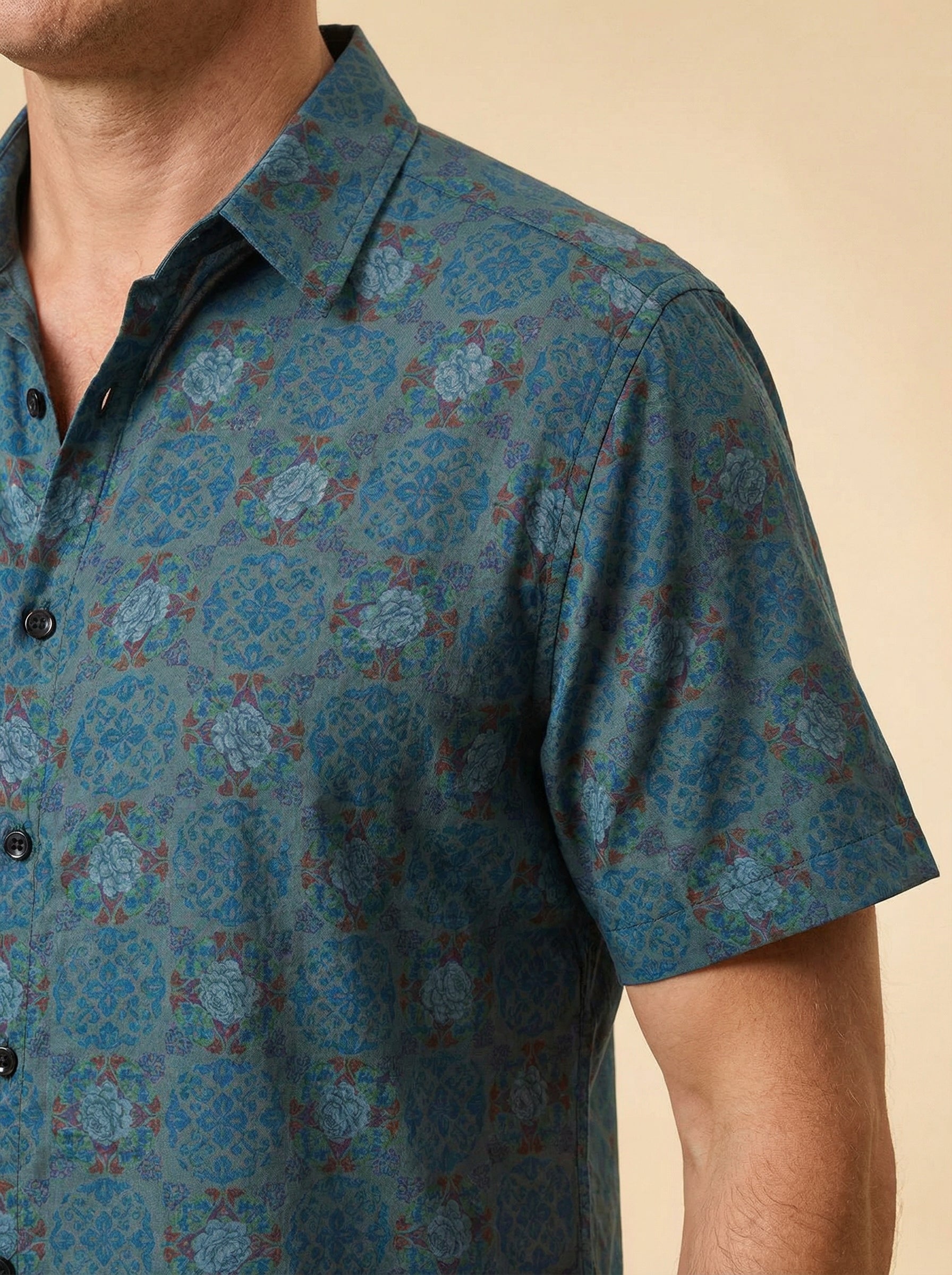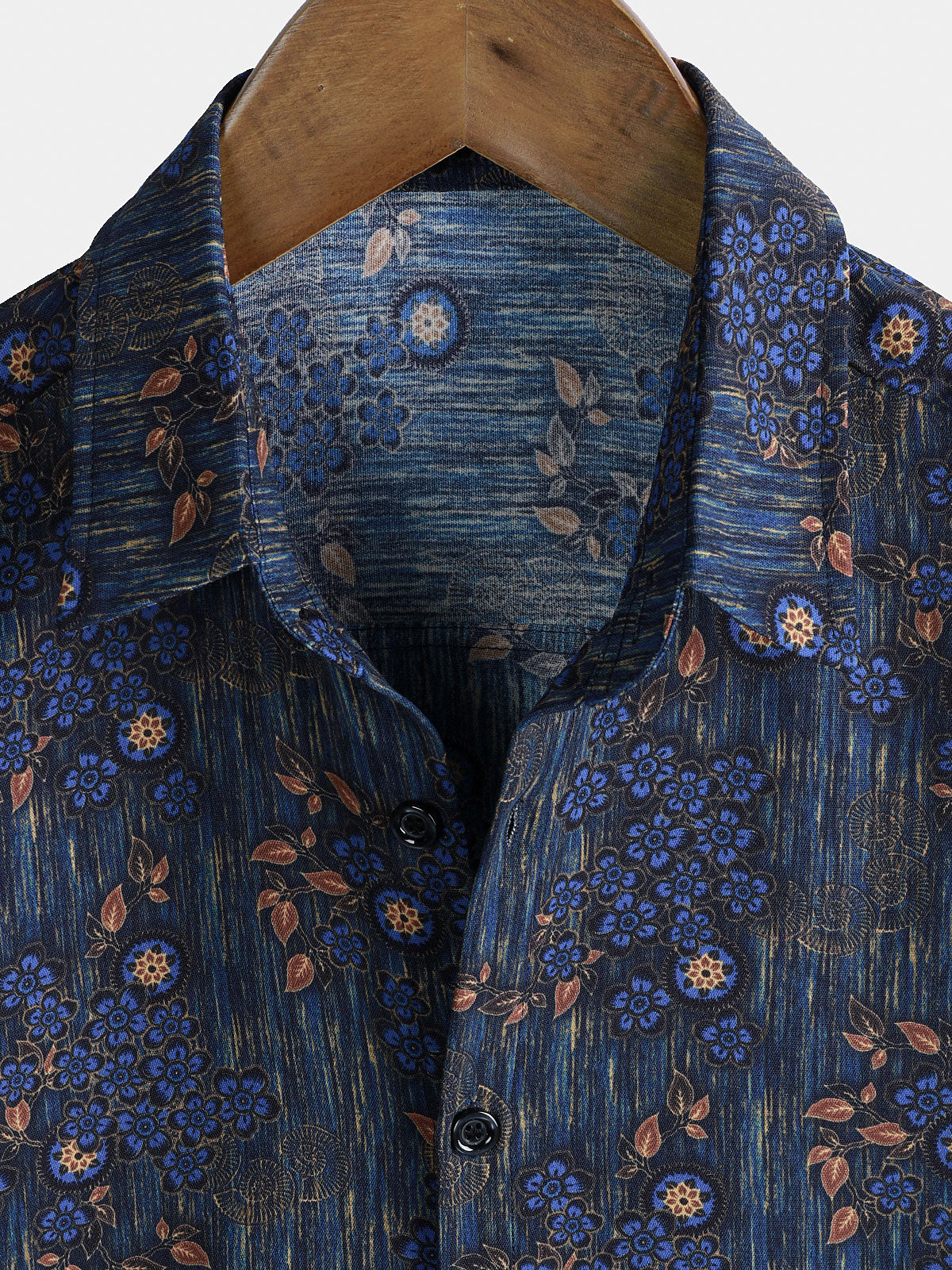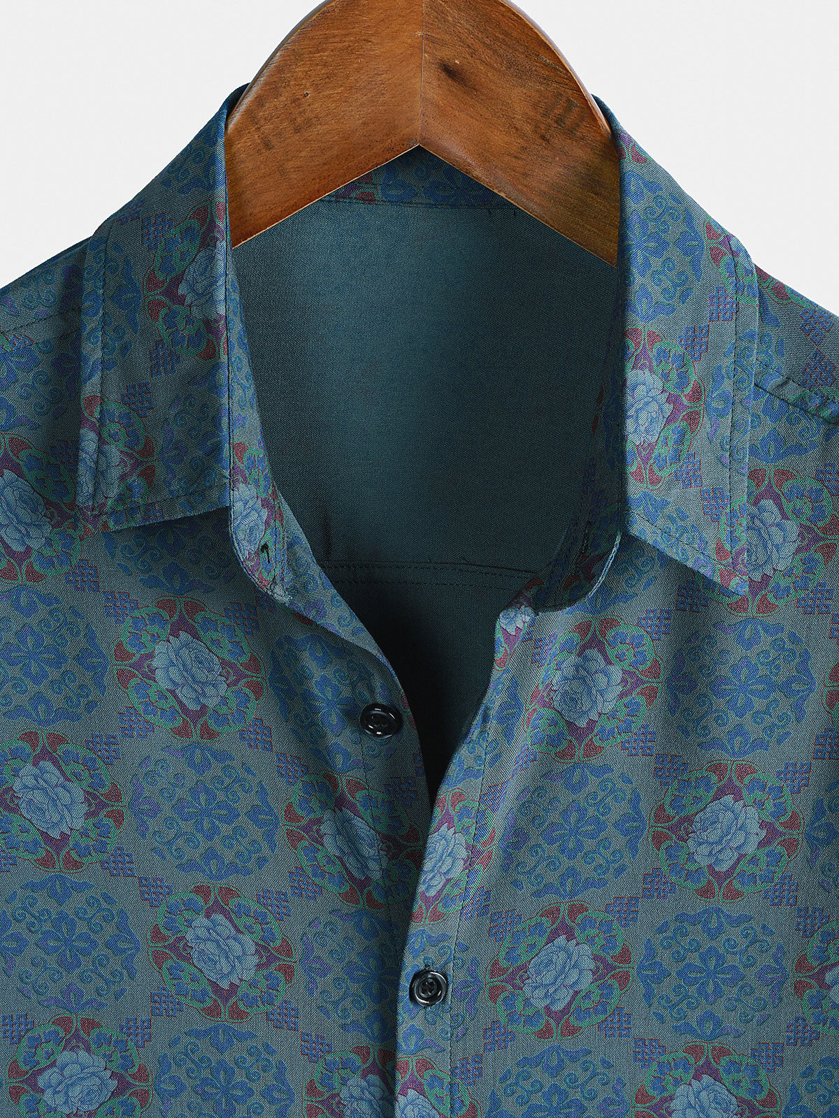 Men's Vintage Blue Floral Print Short Sleeve Shirt